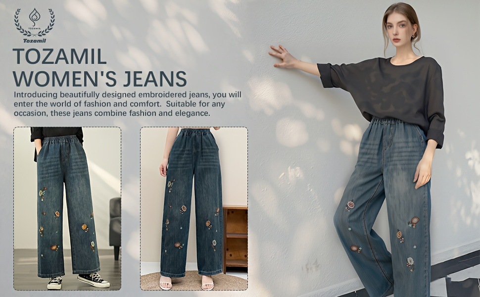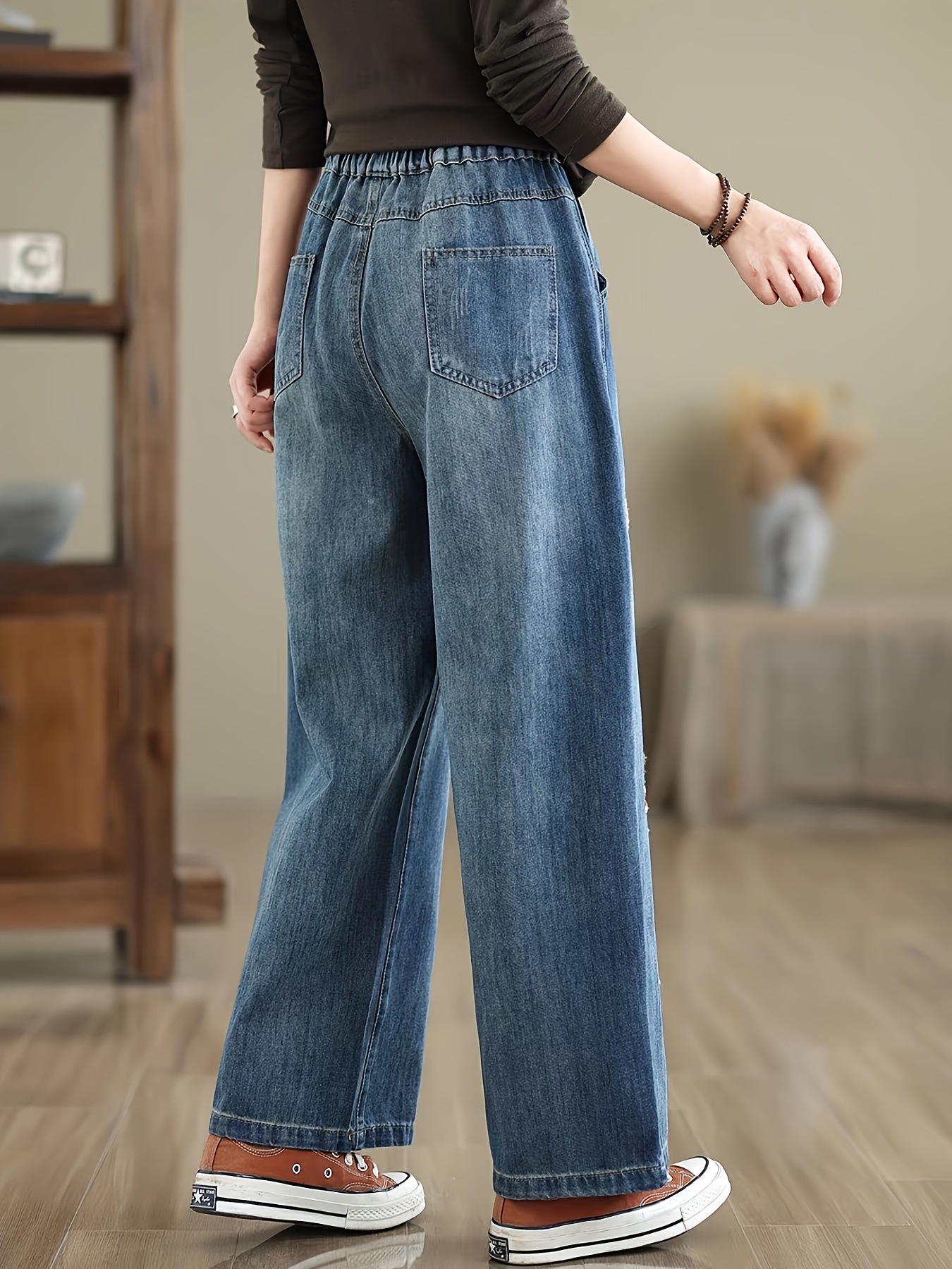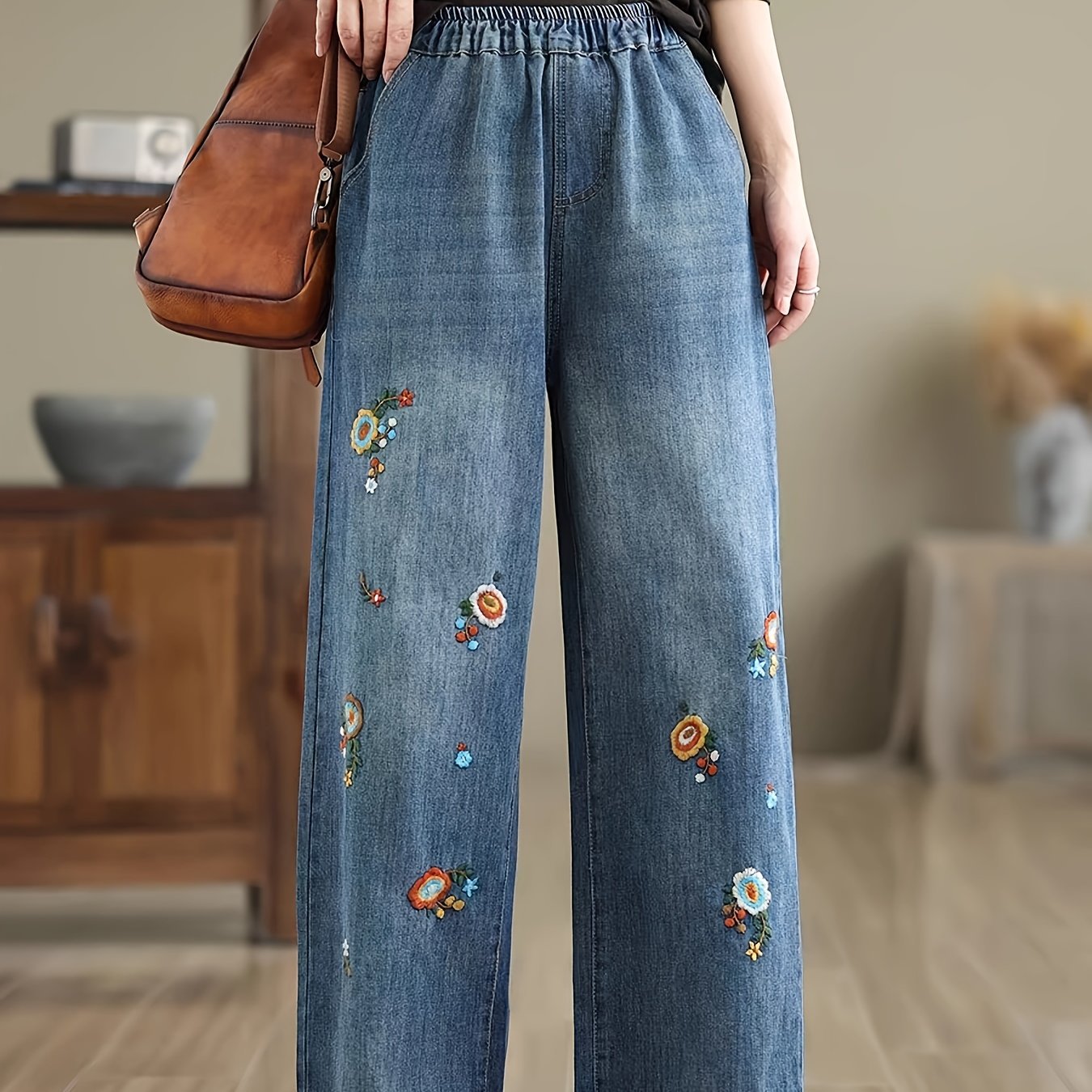 Свободные джинсы с цветочной вышивкой для женщин, удобные и практичные