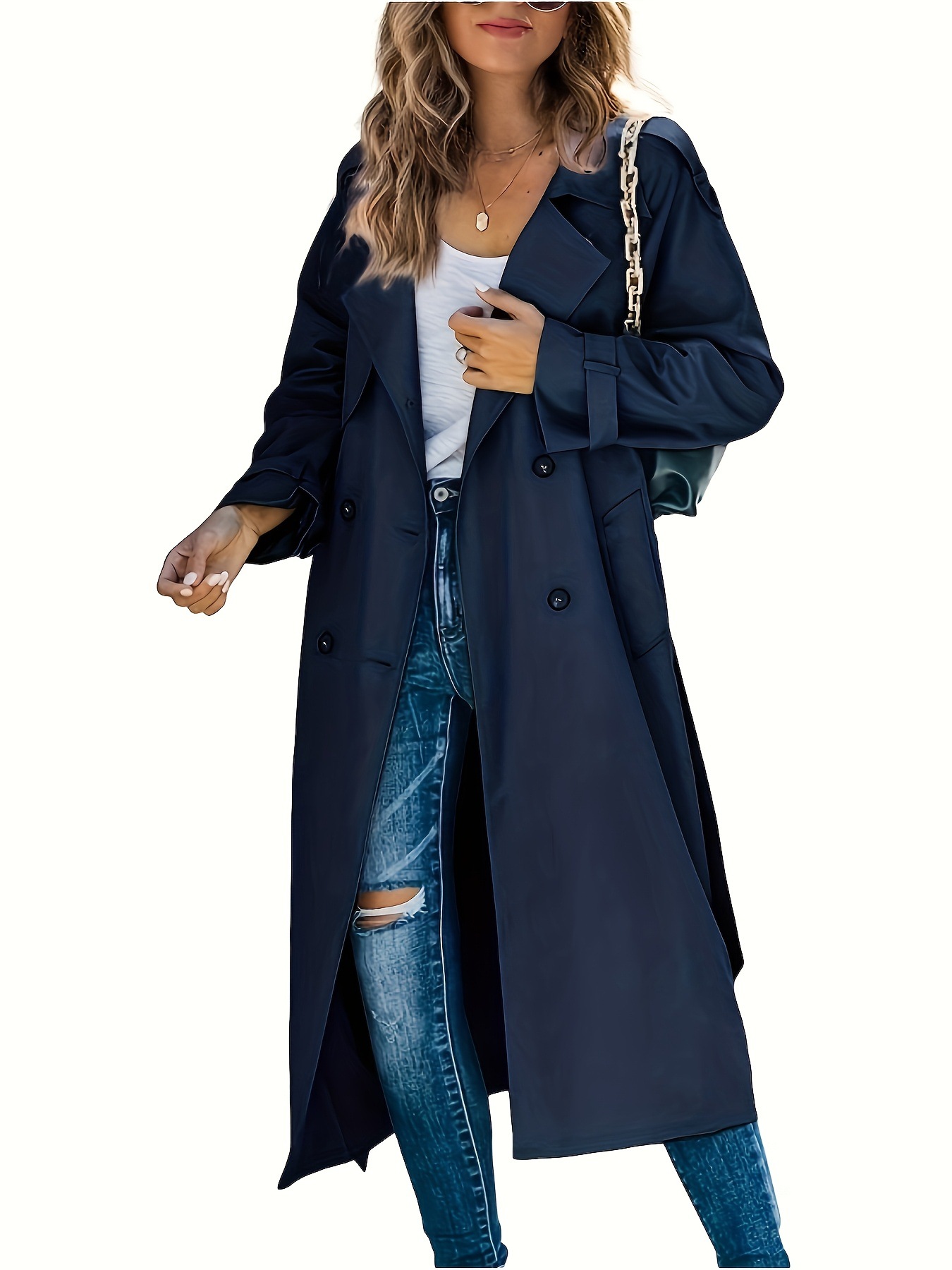 Женская осенне-зимняя повседневная длинная однотонная ветровка