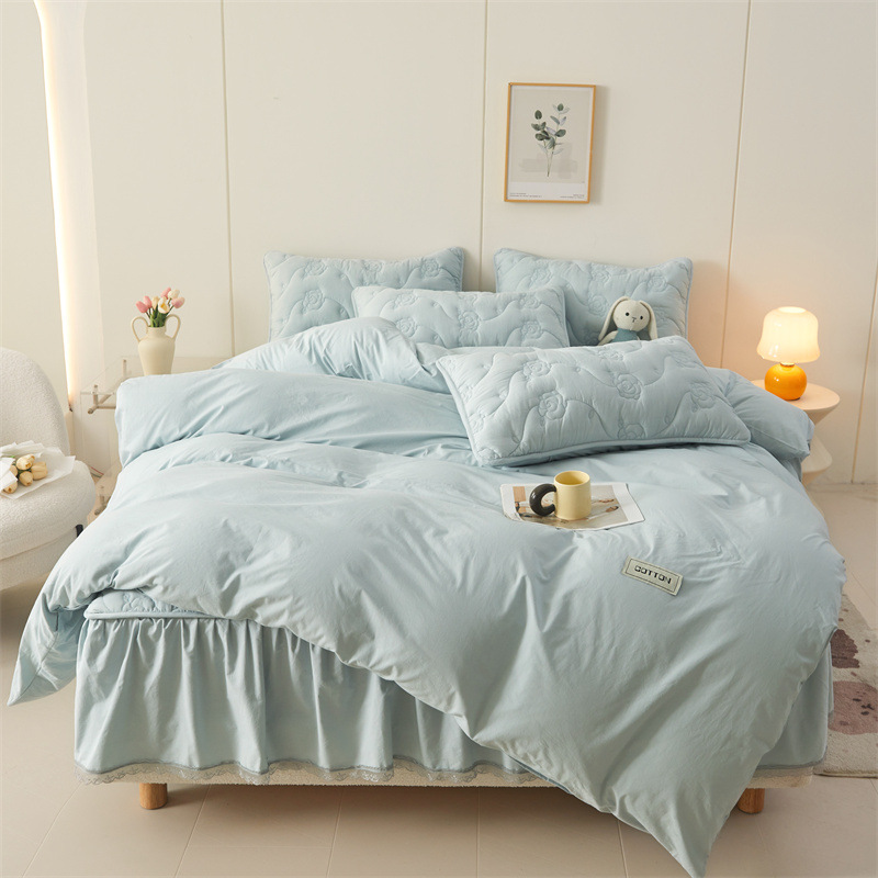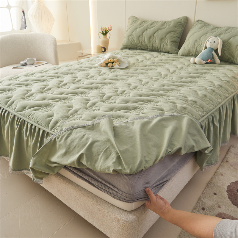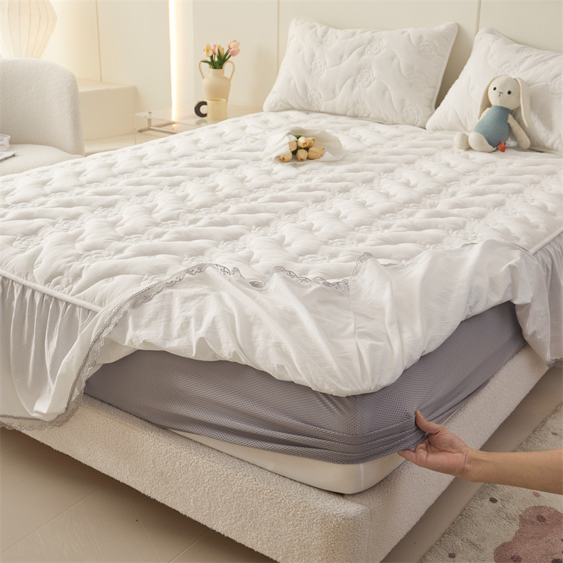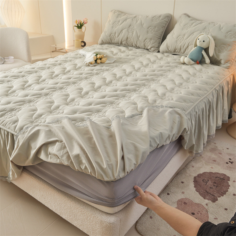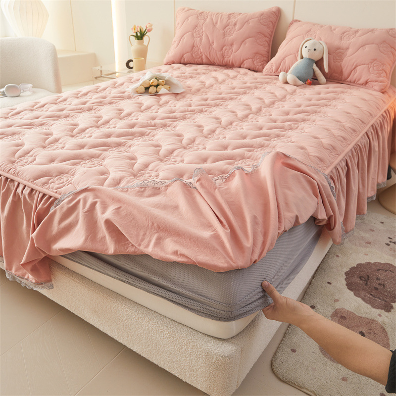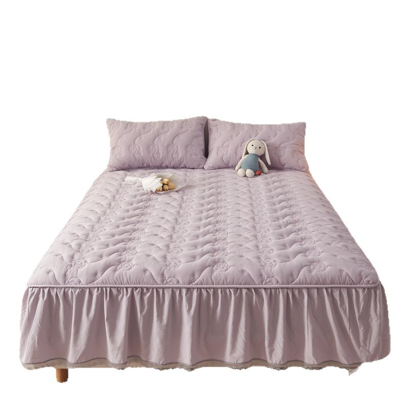 Хлопковое простыня класса А с юбкой, универсальное стеганое стеганое утолщенное наматрасное покрывало розового цвета на все времена года 1,8 фиолетового цвета