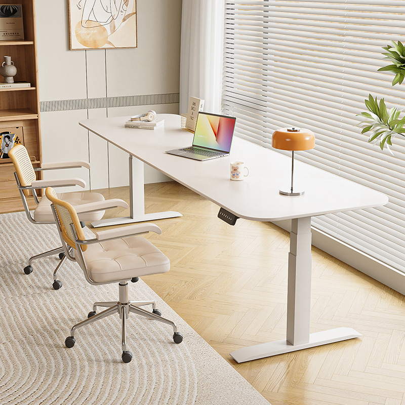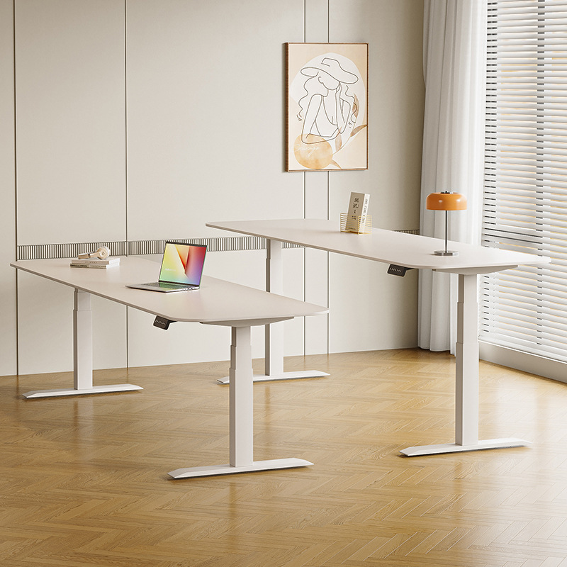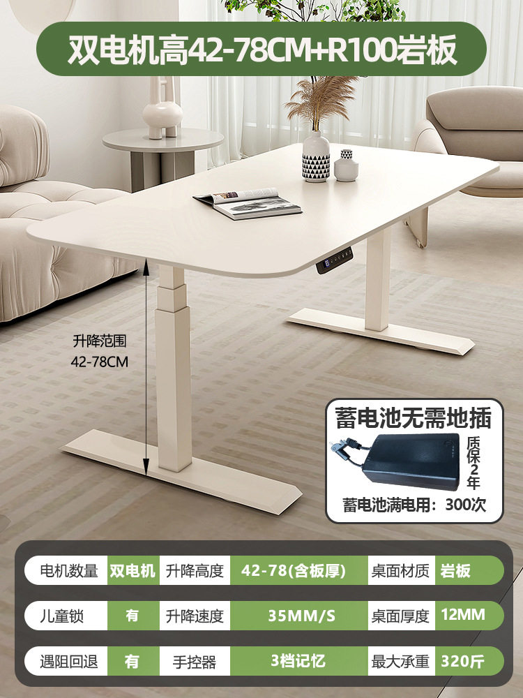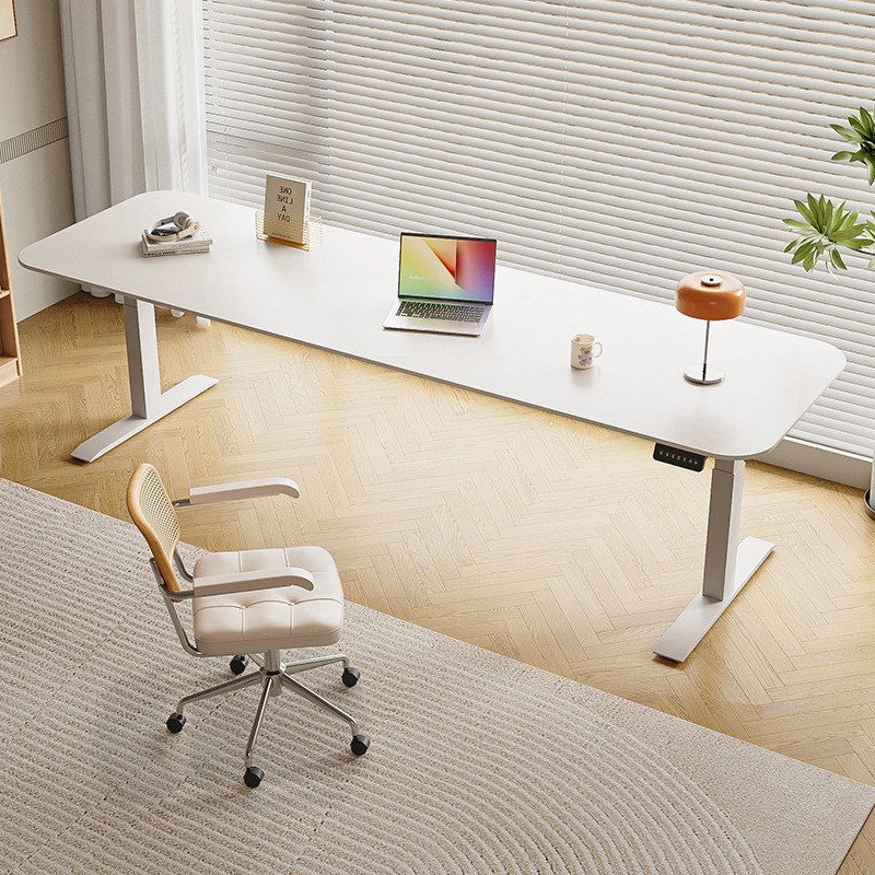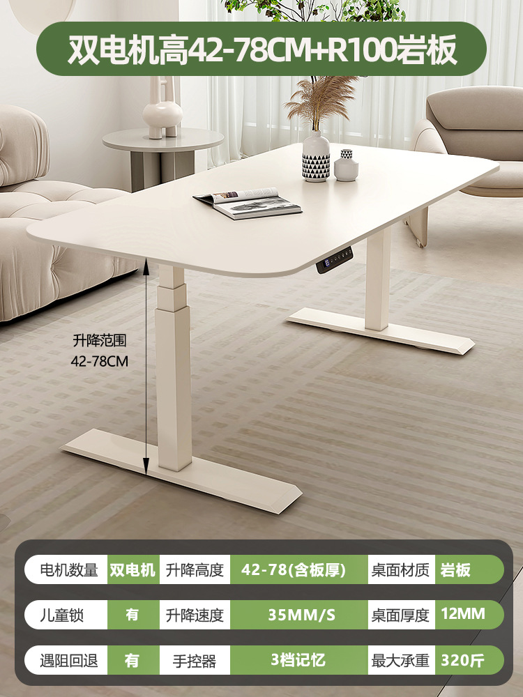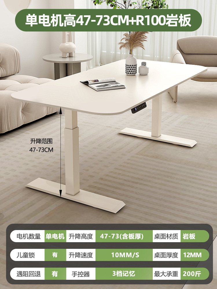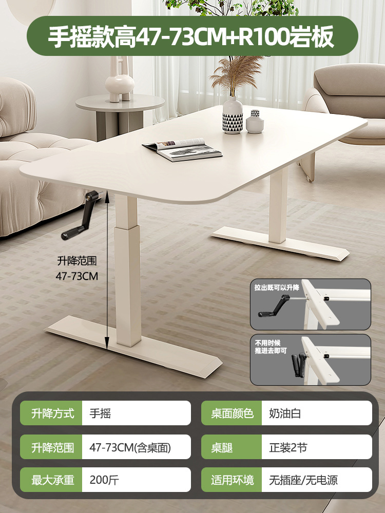 Белый подъемный стол из сланца, электрический стол без формальдегида, кремовый стиль, рабочий стол, компьютерный стол, ручной подъемный стол