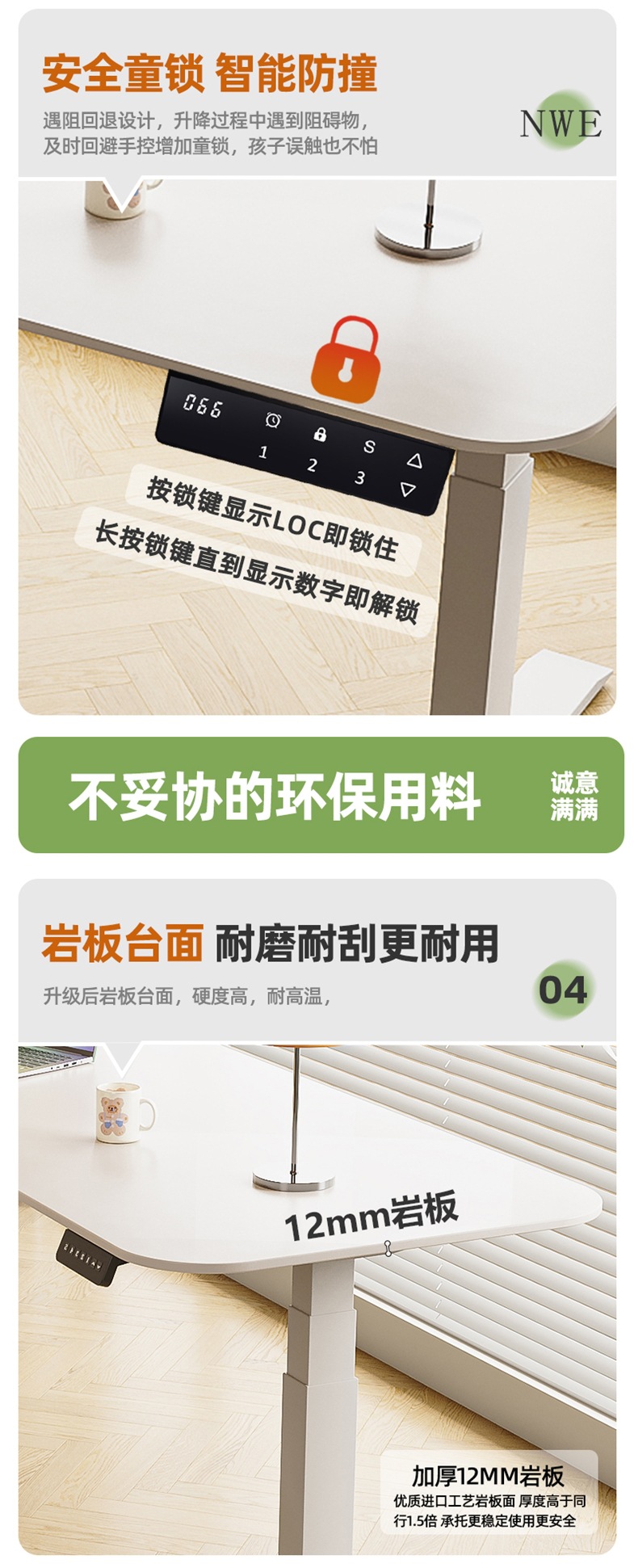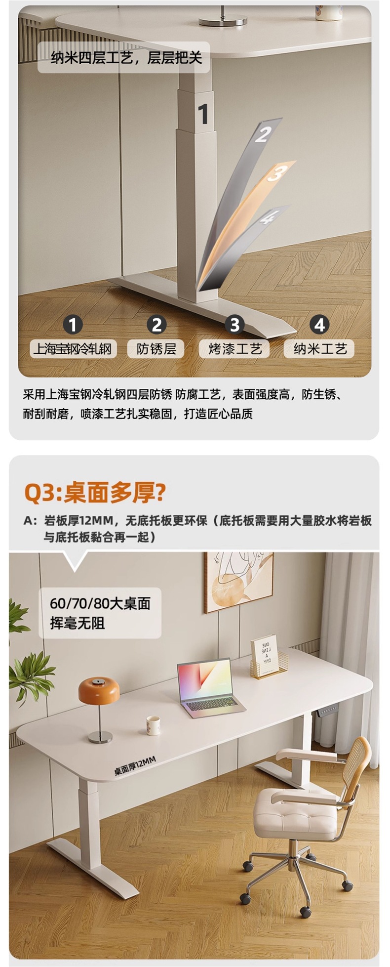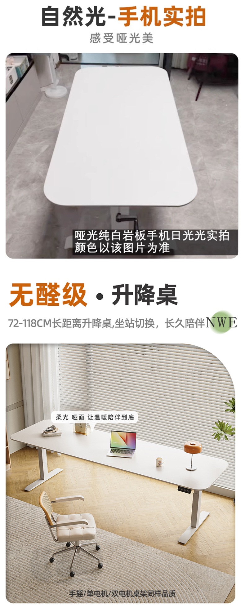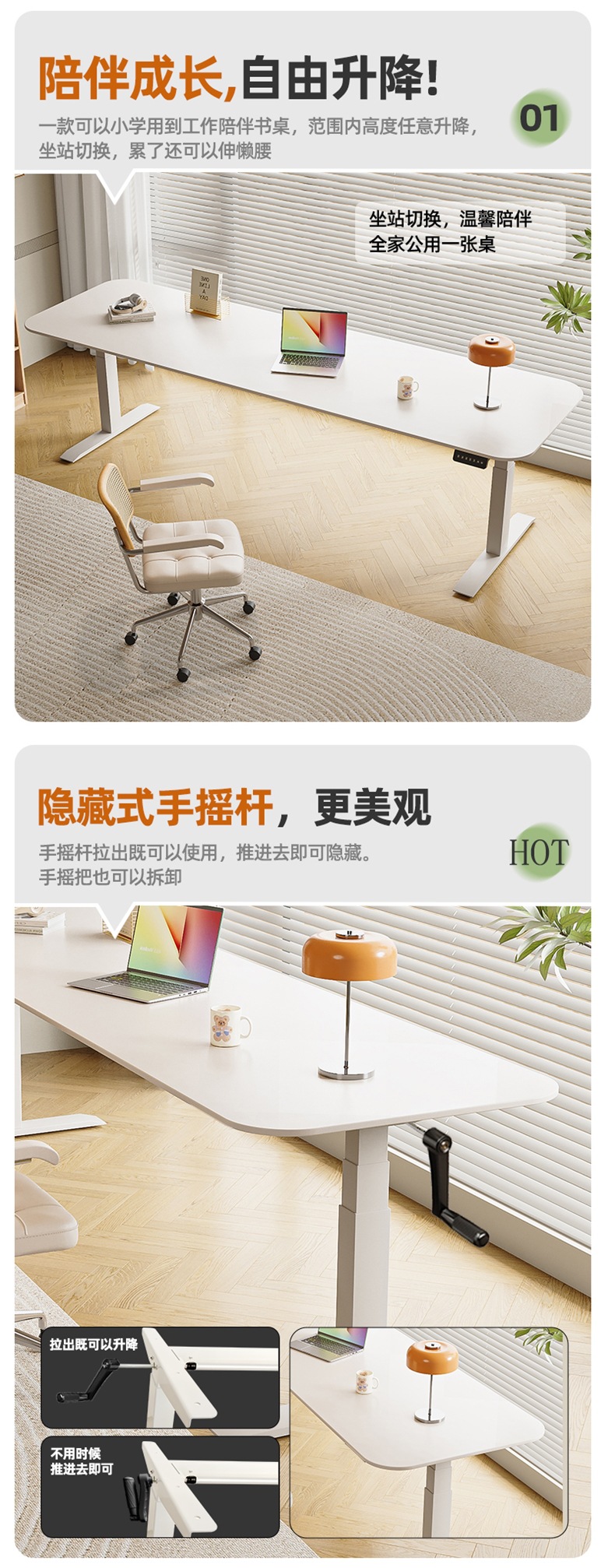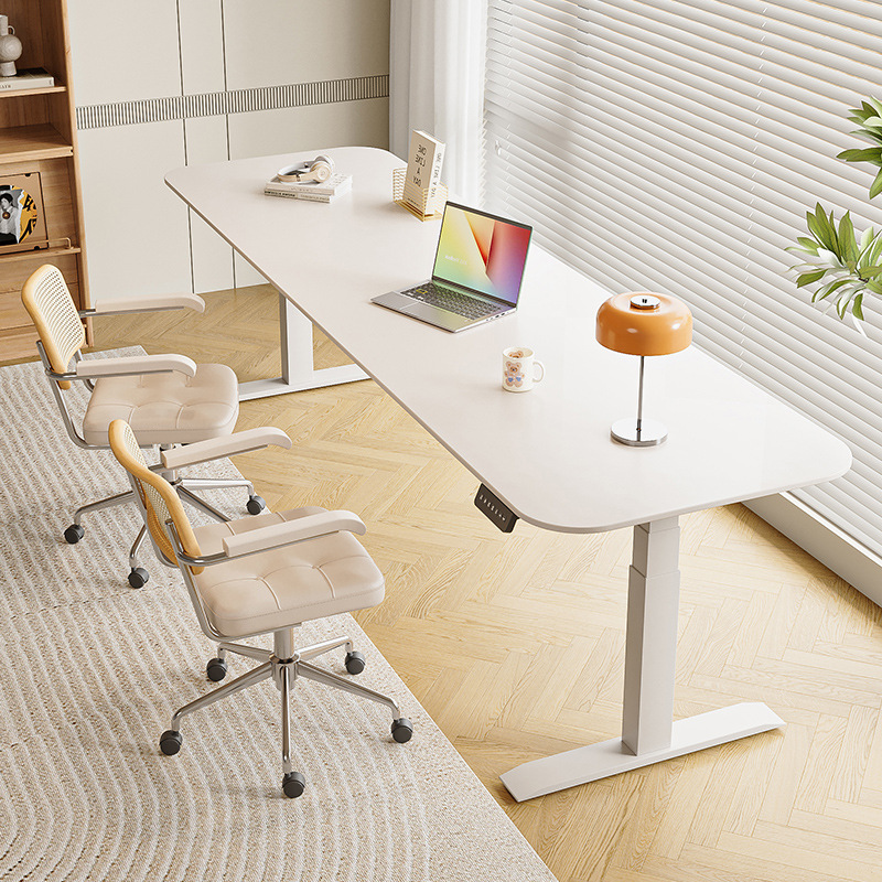 Белый подъемный стол из сланца, электрический стол без формальдегида, кремовый стиль, рабочий стол, компьютерный стол, ручной подъемный стол