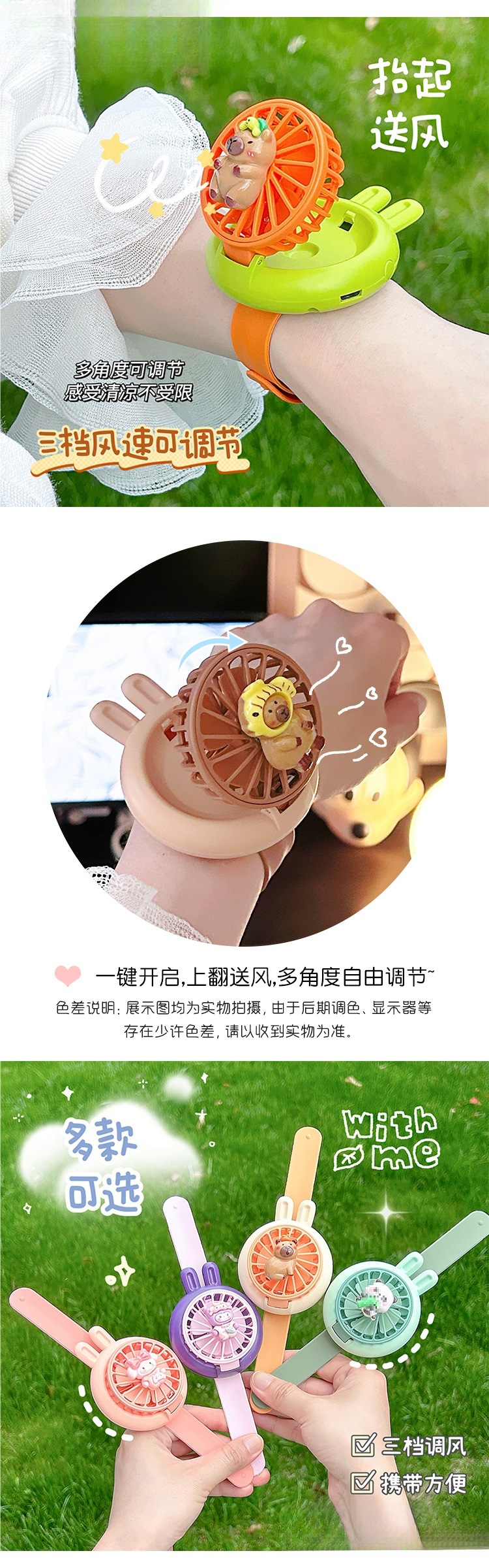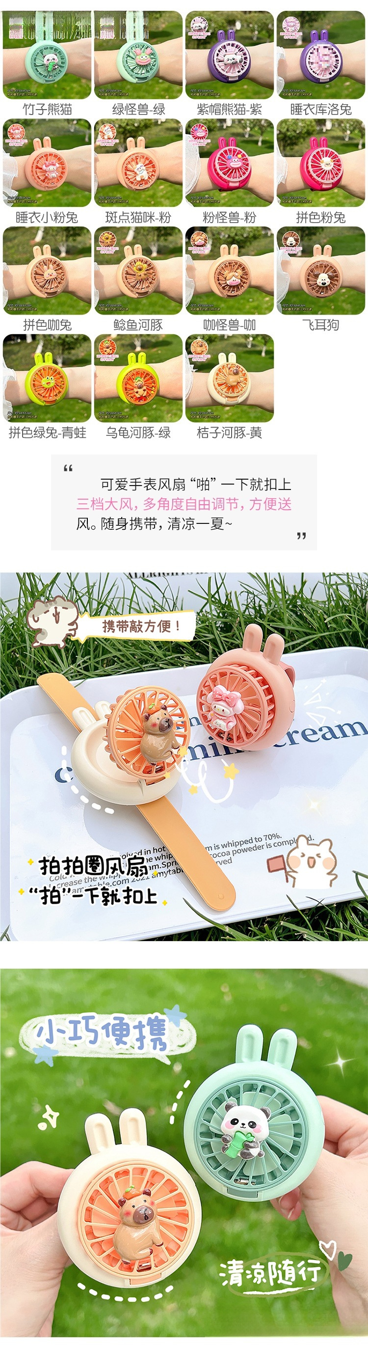 Милые детские часы, небольшой вентилятор, новый студенческий уличный портативный мини-наручный вентилятор