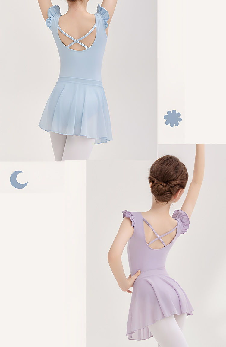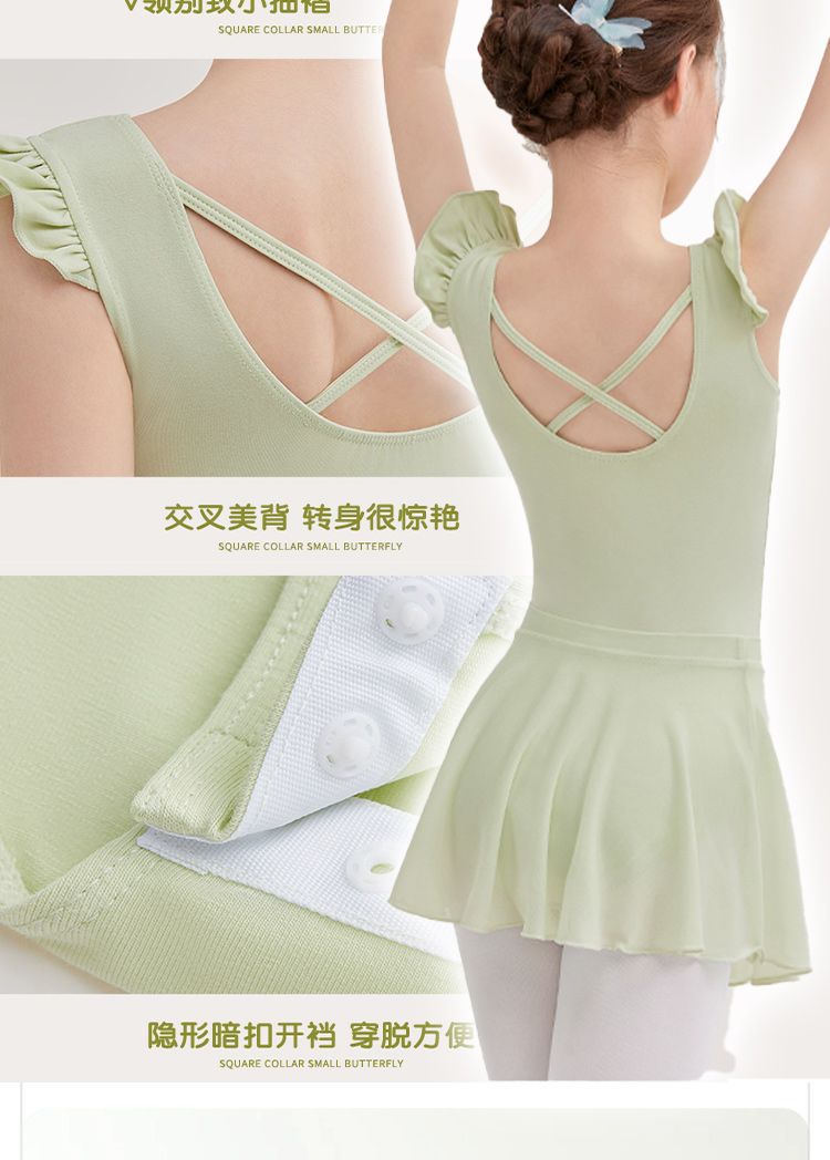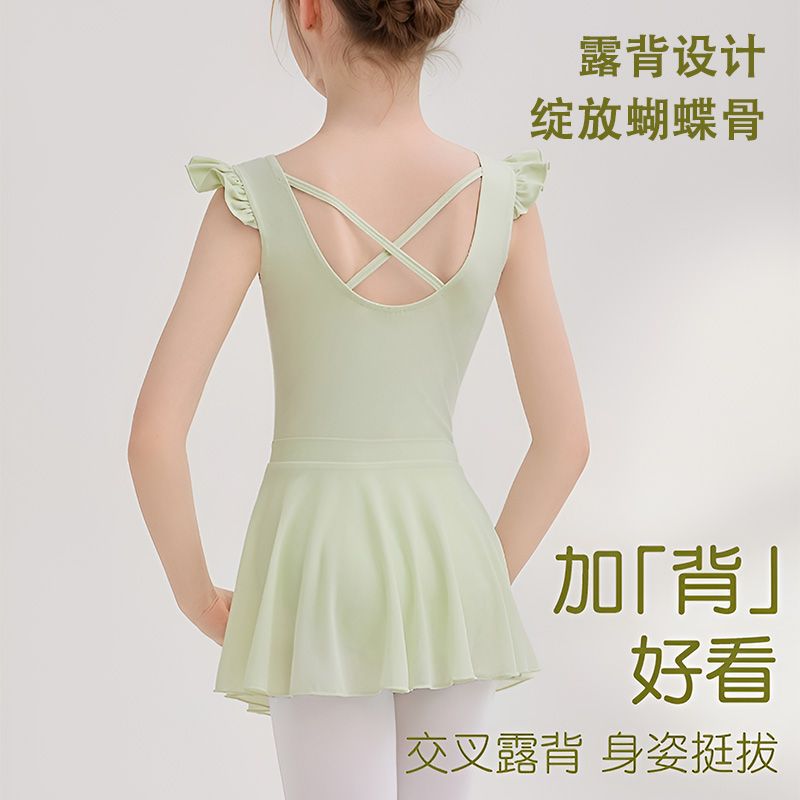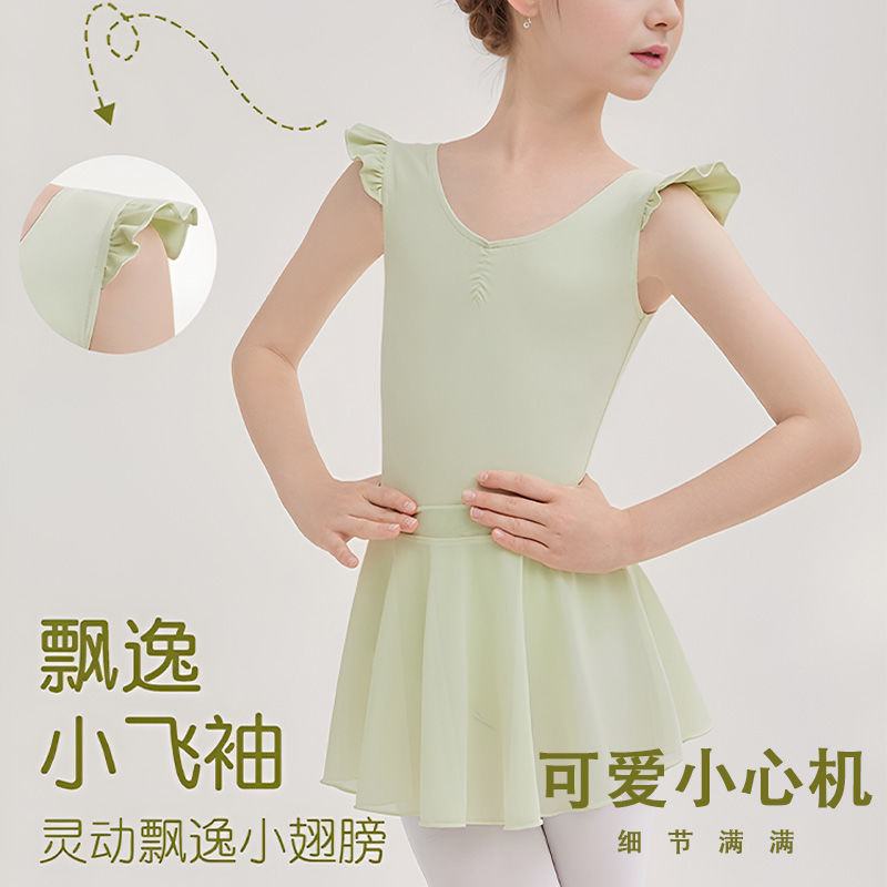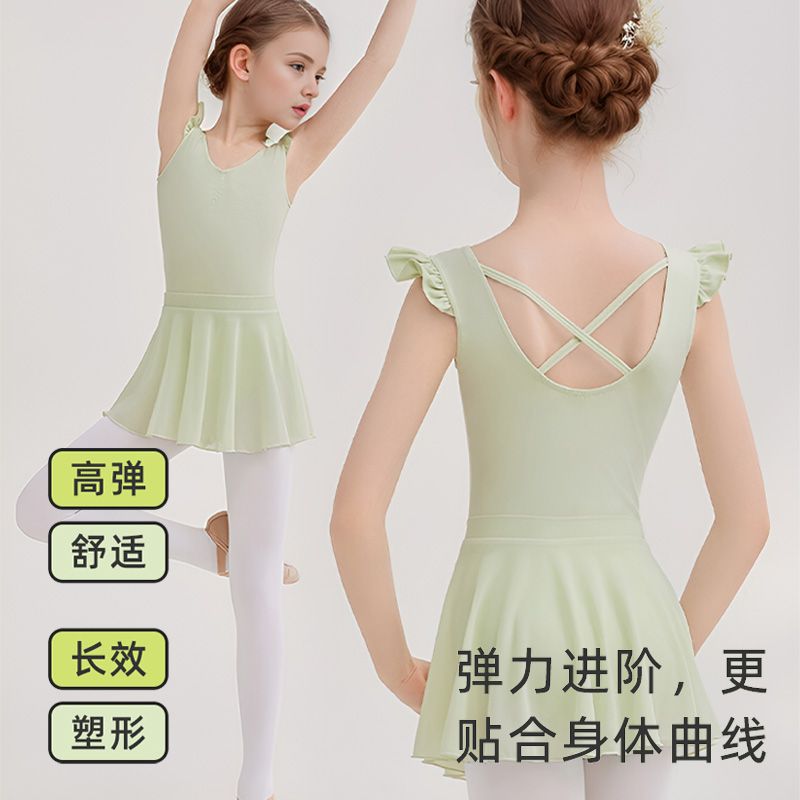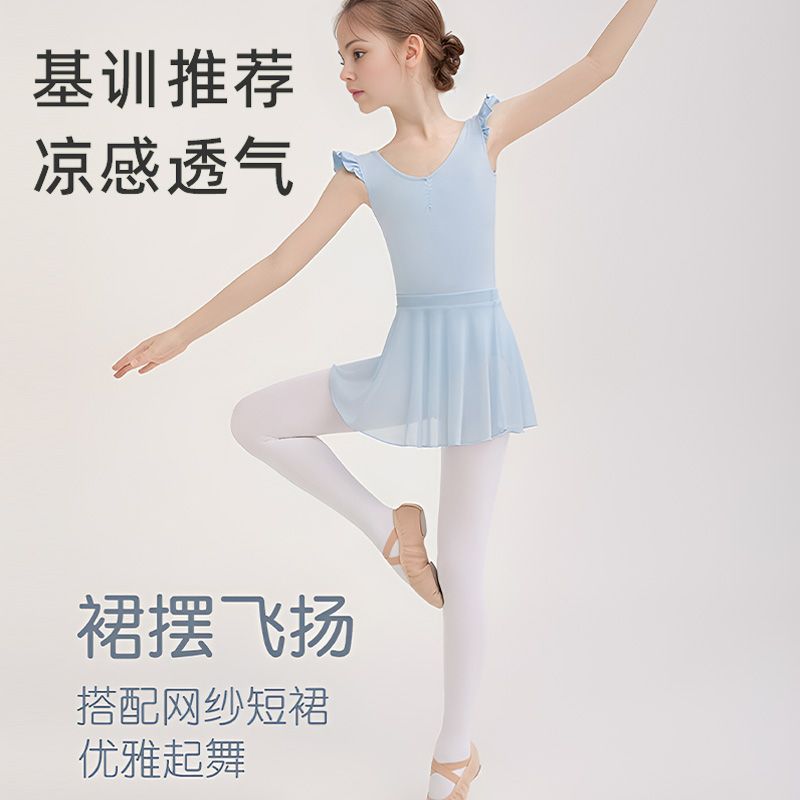 Детская танцевальная новая летняя балетная гимнастика цельная тренировочная юбка для девочек с короткими рукавами для китайского экзамена