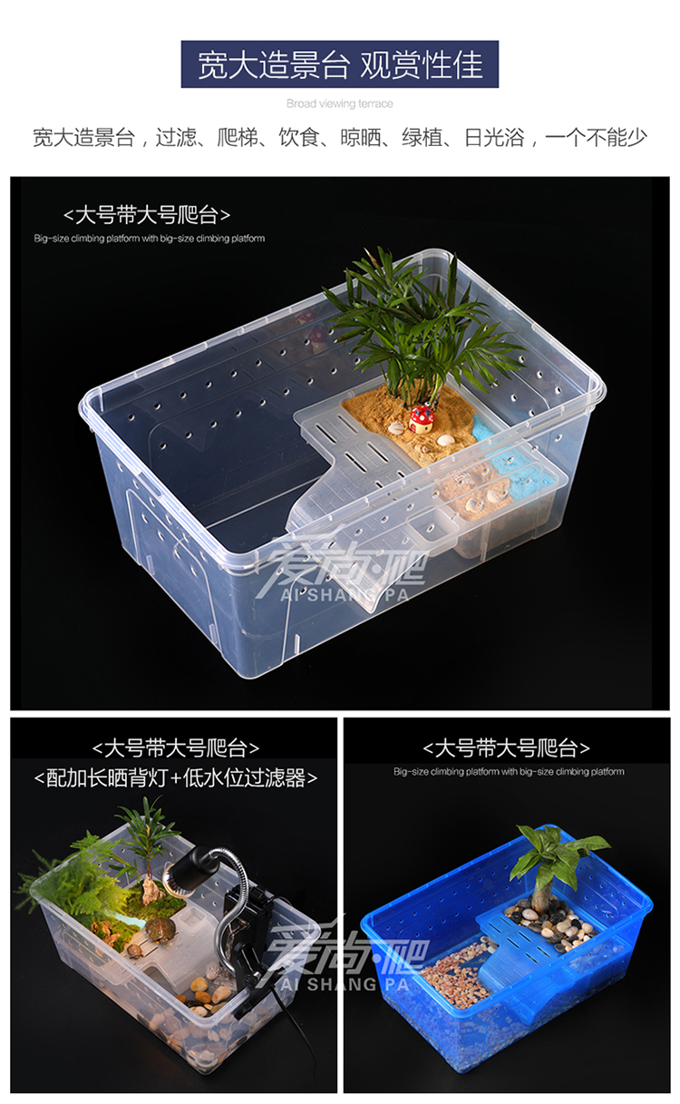 Аквариум для черепах с ландшафтным дизайном террасы, небольшой аквариум для черепах, ящик для разведения черепах, амфибийный ящик, аквариум с крышкой
