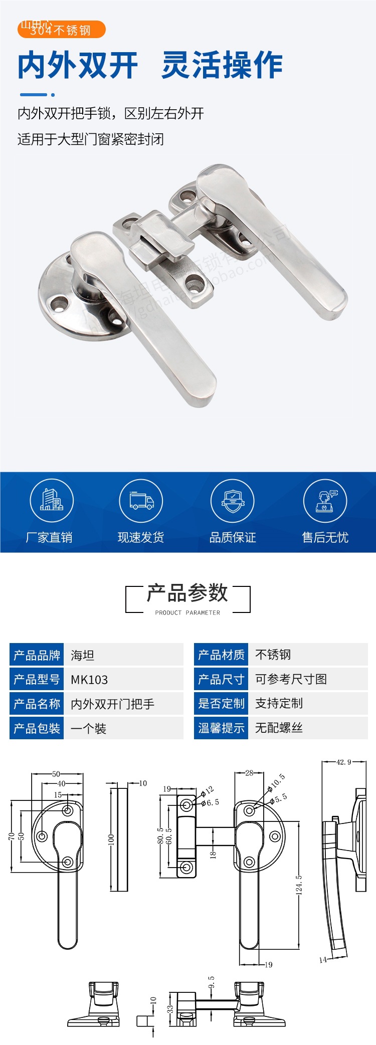 Дверная ручка из нержавеющей стали 304 с двойным уплотнительным замком DMK103, усиленная утолщенная ручка для дверцы духовки и парового шкафа.