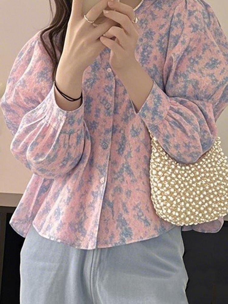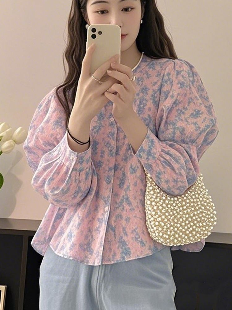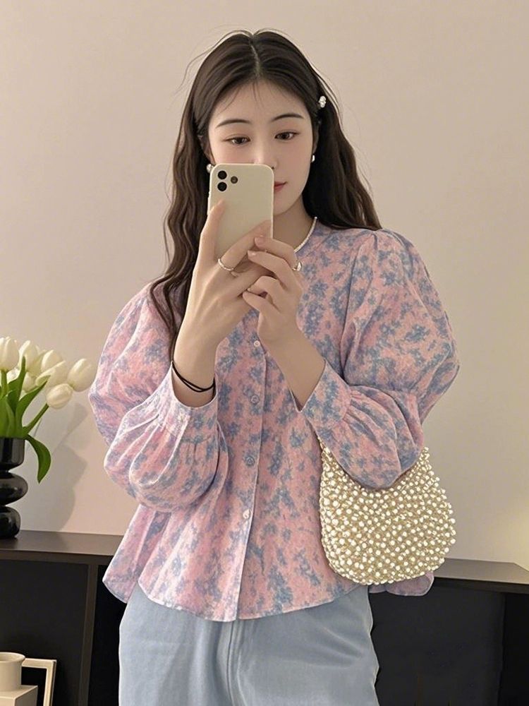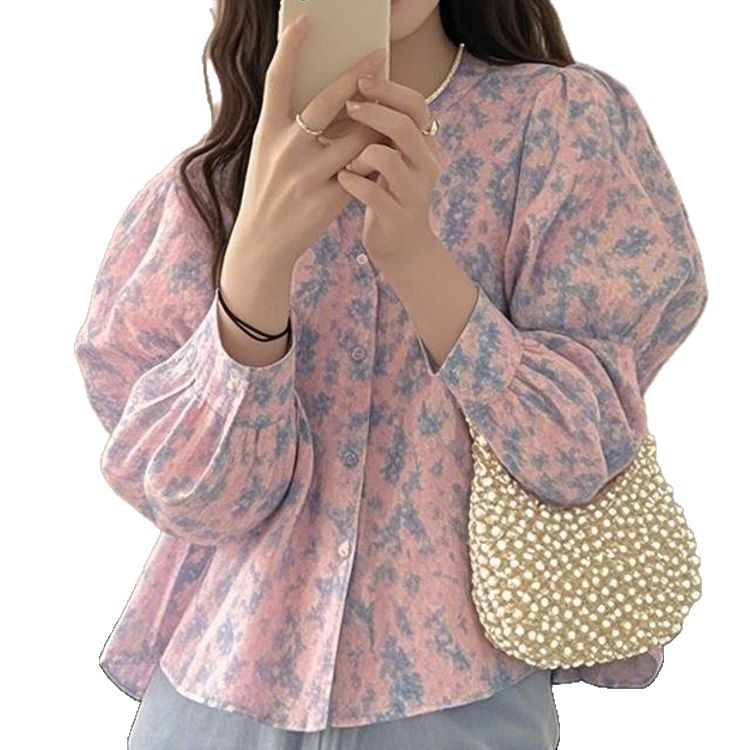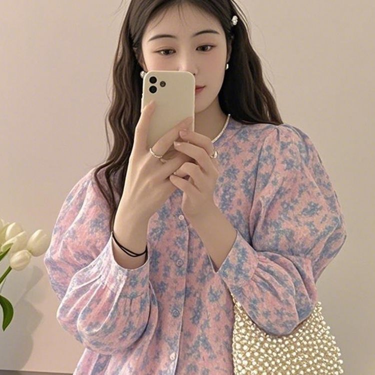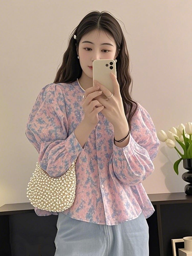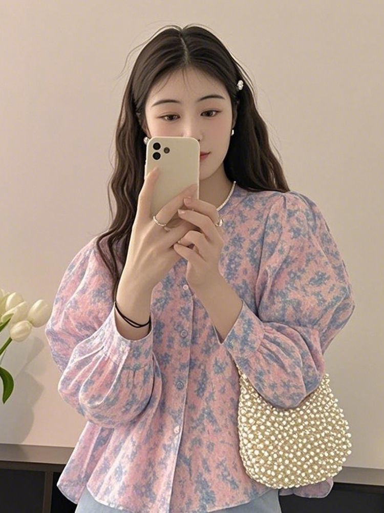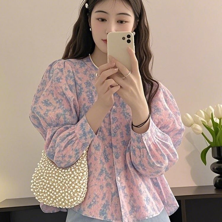 2025 новая красивая рубашка для весны, нишевая одежда, высококлассная, легкая роскошь, омолаживающая, в западном стиле, розовая рубашка с принтом для женщин