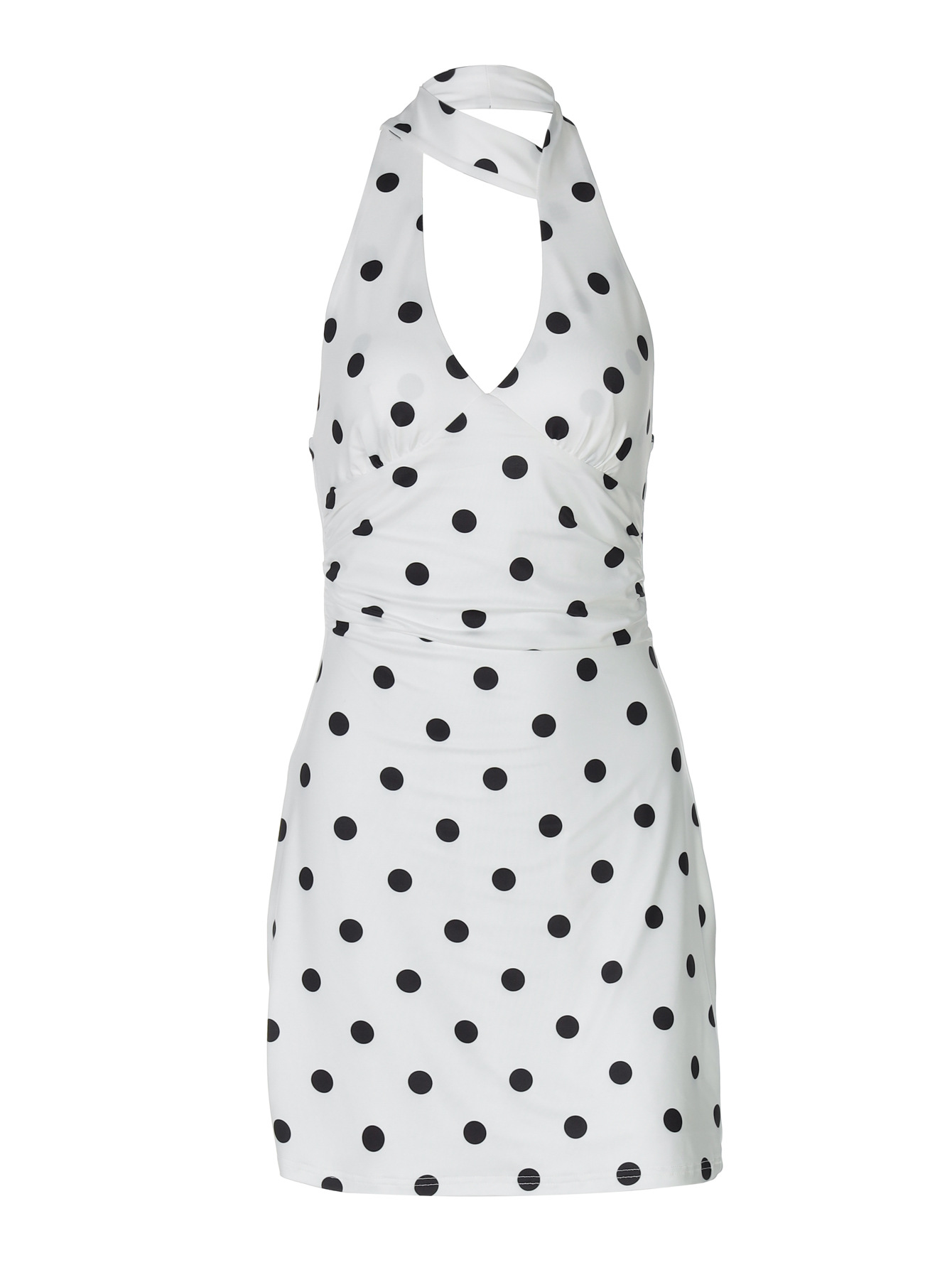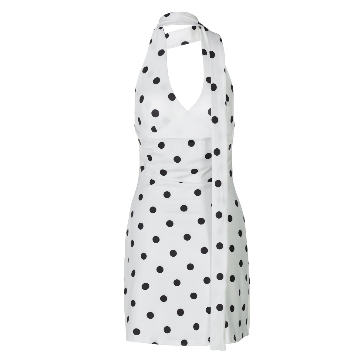 Европейская и американская женская одежда, хиты продаж лета 2025 года, новое платье с открытой спиной, на бретелях, с лентой, принтом в горошек, оптом