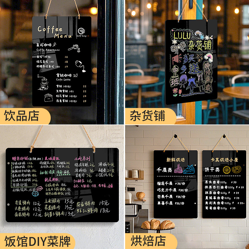 Двусторонняя подвесная маленькая доска для меню, доска для молочного чая, кафе, отеля, кафе, магазина общественного питания, настенная рекламная доска