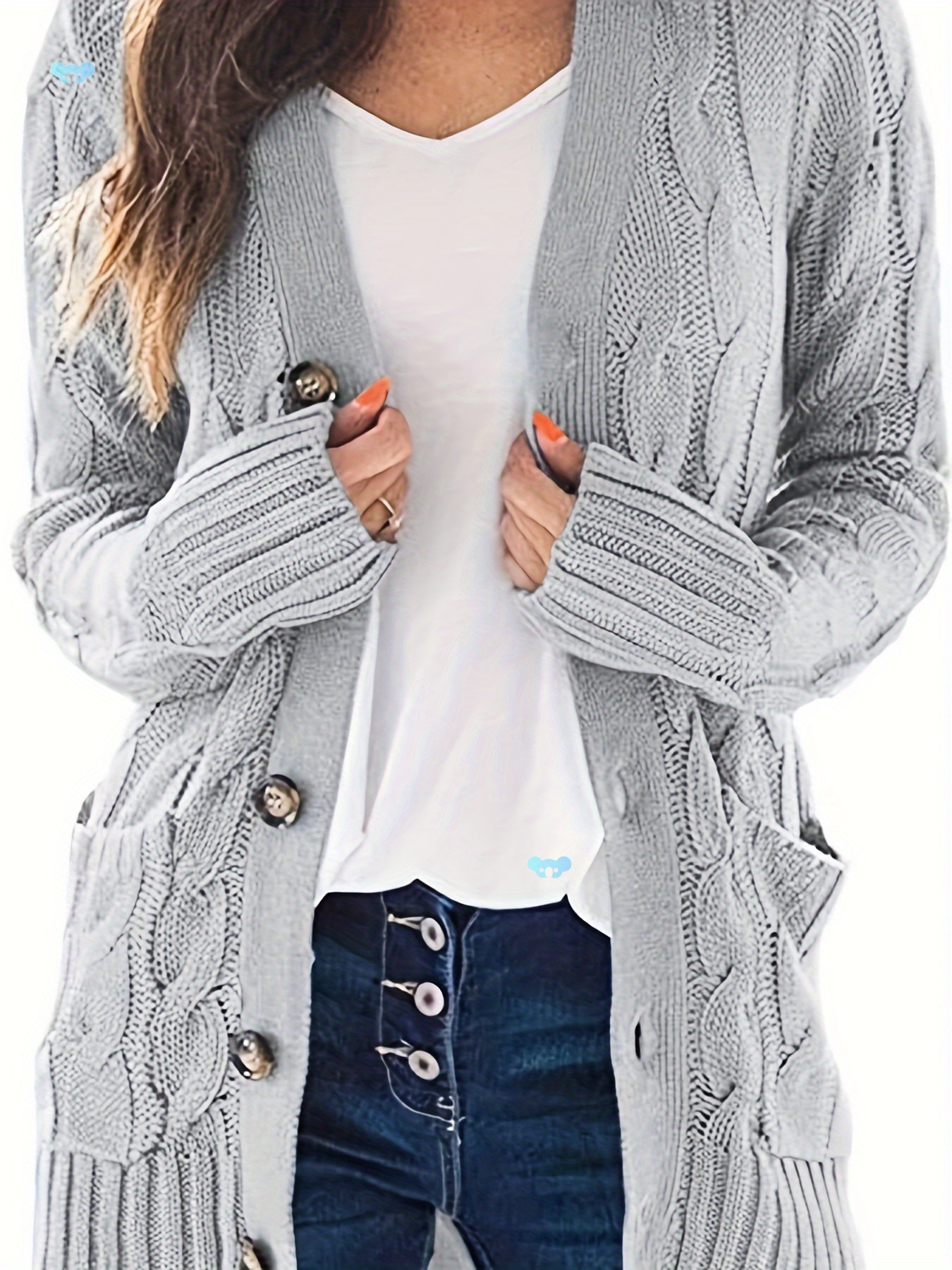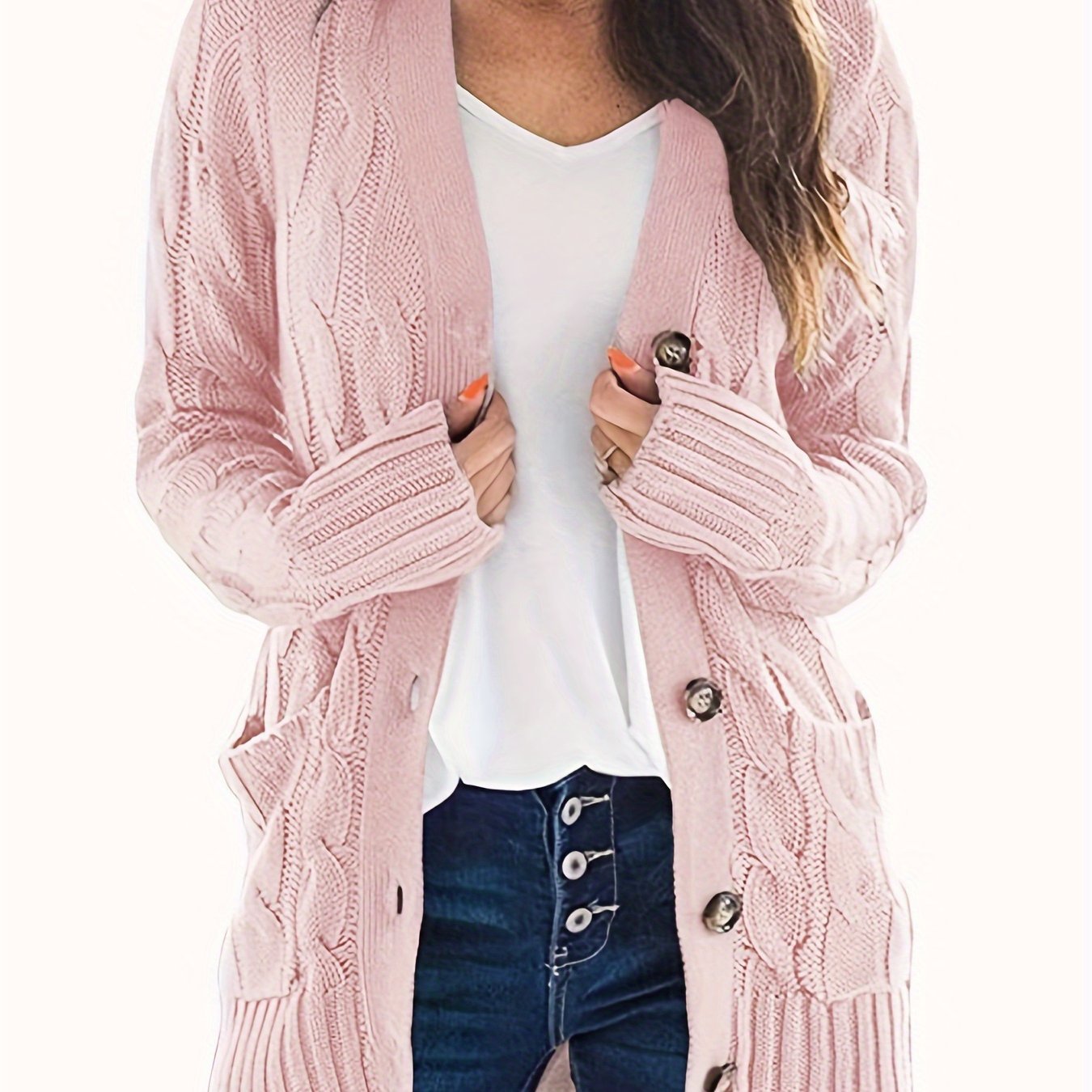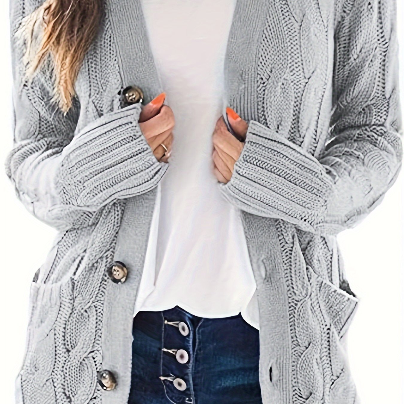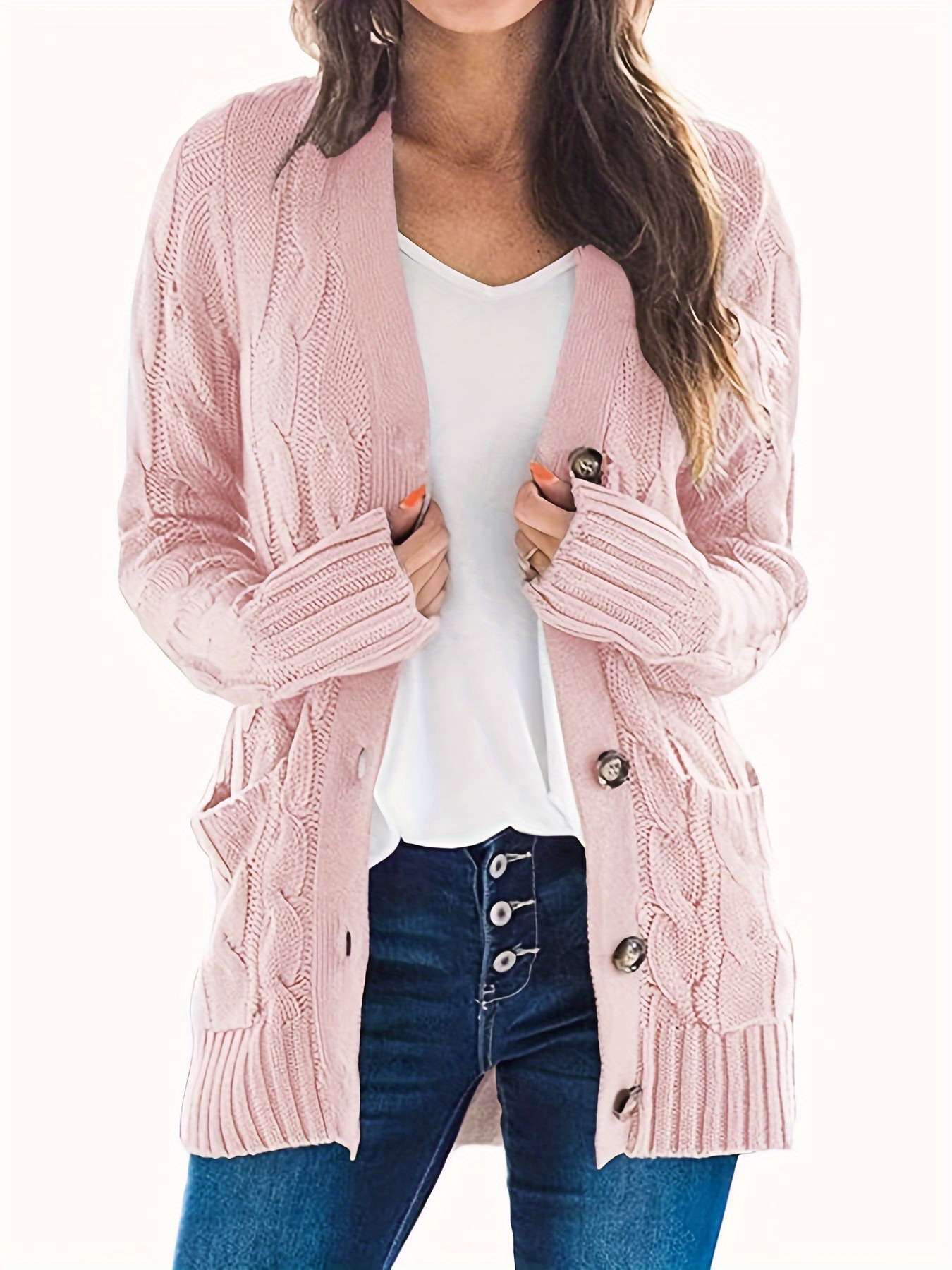 Уютный вязаный кардиган больших размеров для женщин на пуговицах с длинными рукавами