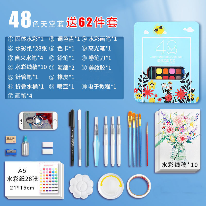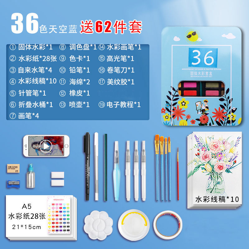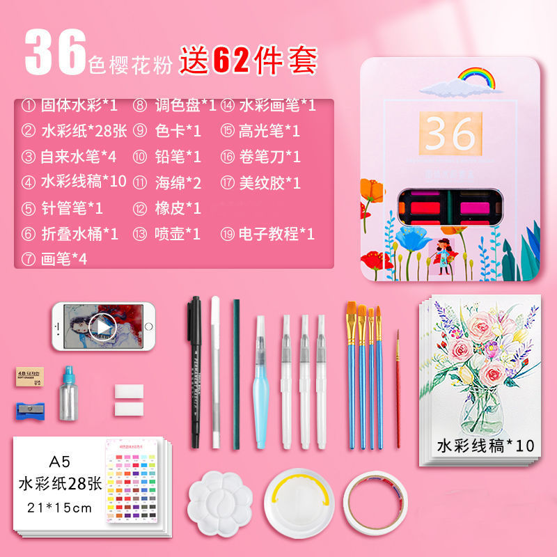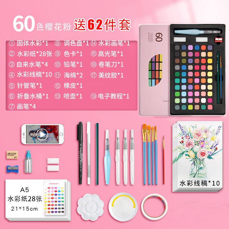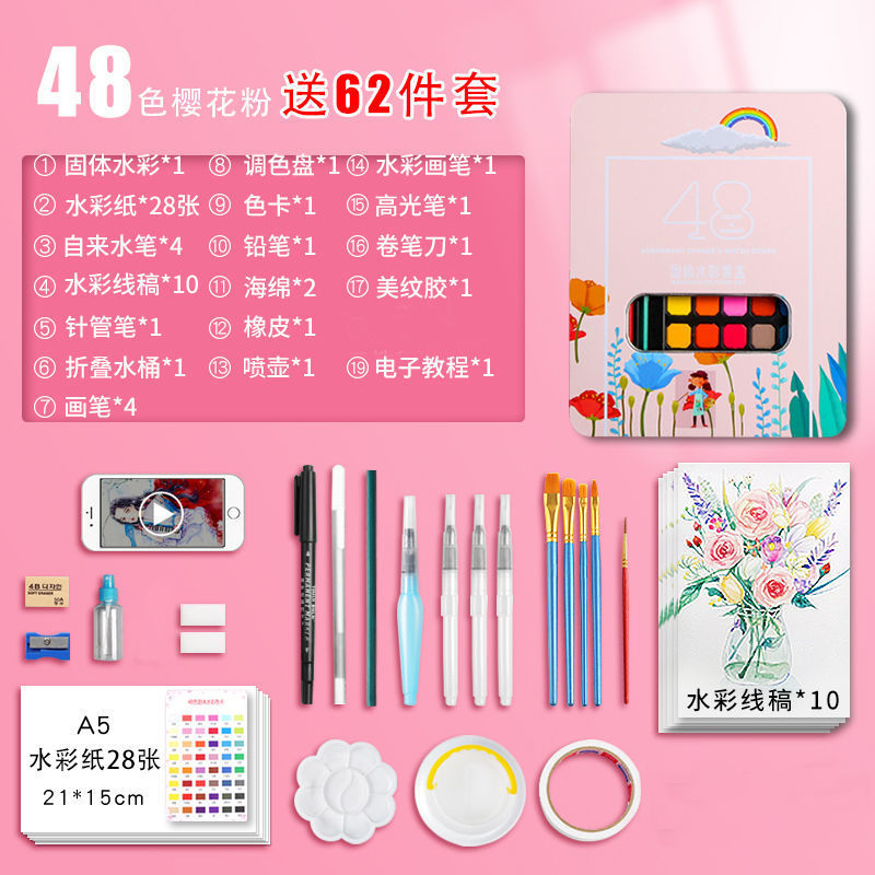 Твердая акварельная краска, полный набор художественных принадлежностей, инструменты для рисования гуашью, детская живопись, моющаяся и нетоксичная