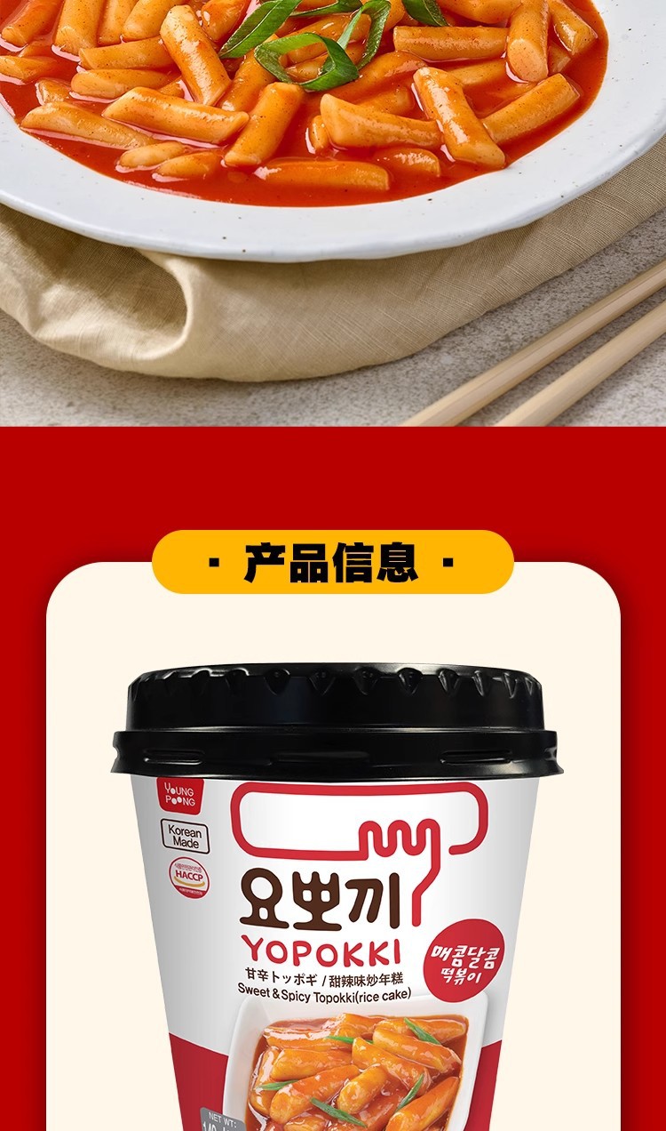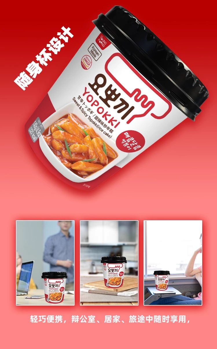 Южная Корея импортировала корейские сладкие и пряные жареные рисовые лепешки YOPOKKI, удобные и вкусные чашки, 120 г