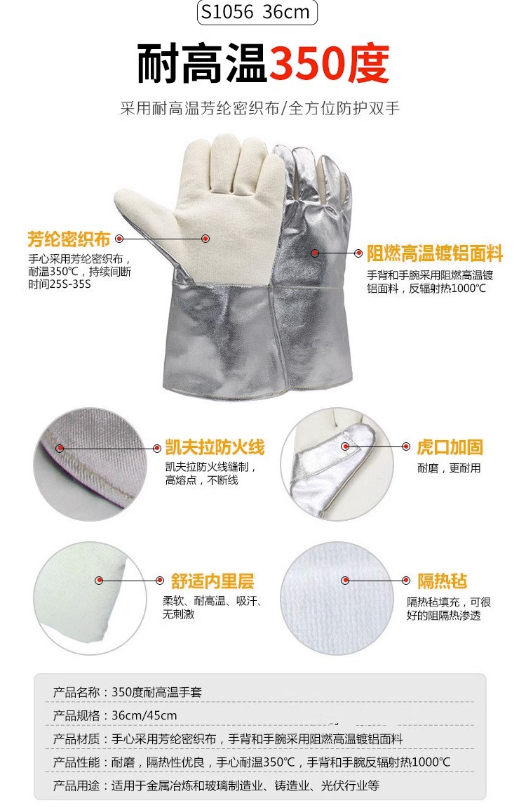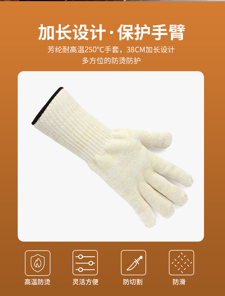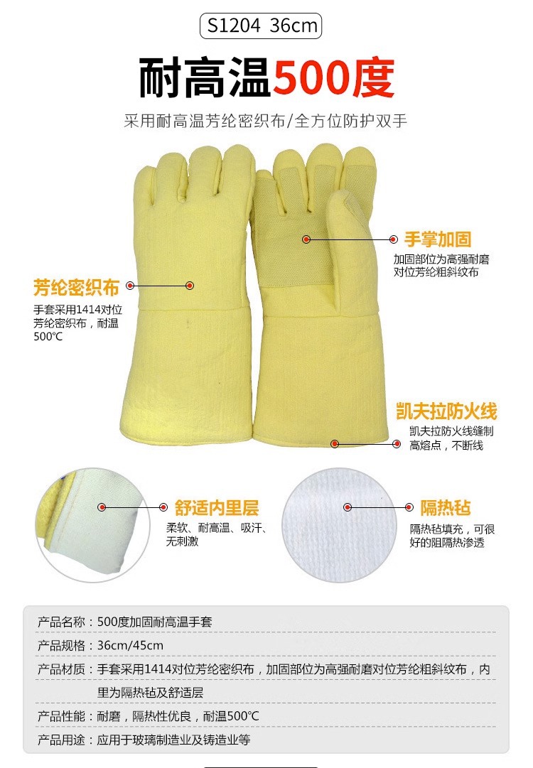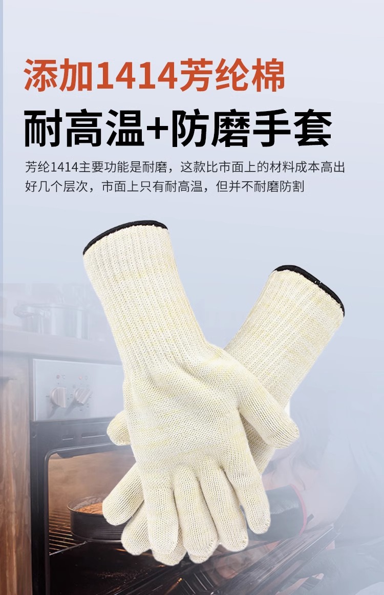 Высокотемпературные перчатки 250 градусов 500 градусов двухслойная арамидная хлопковая изоляция против ожогов пятипалая печь для выпечки промышленный котел