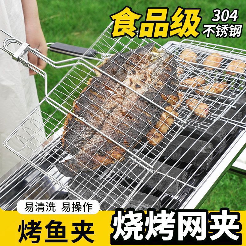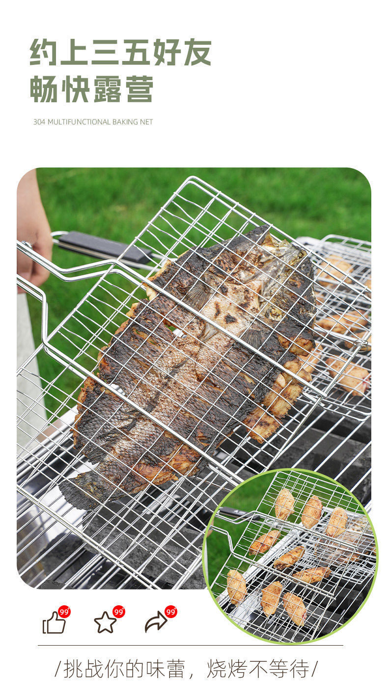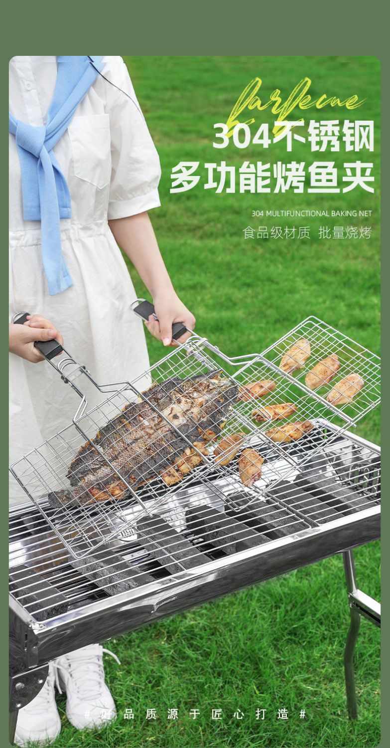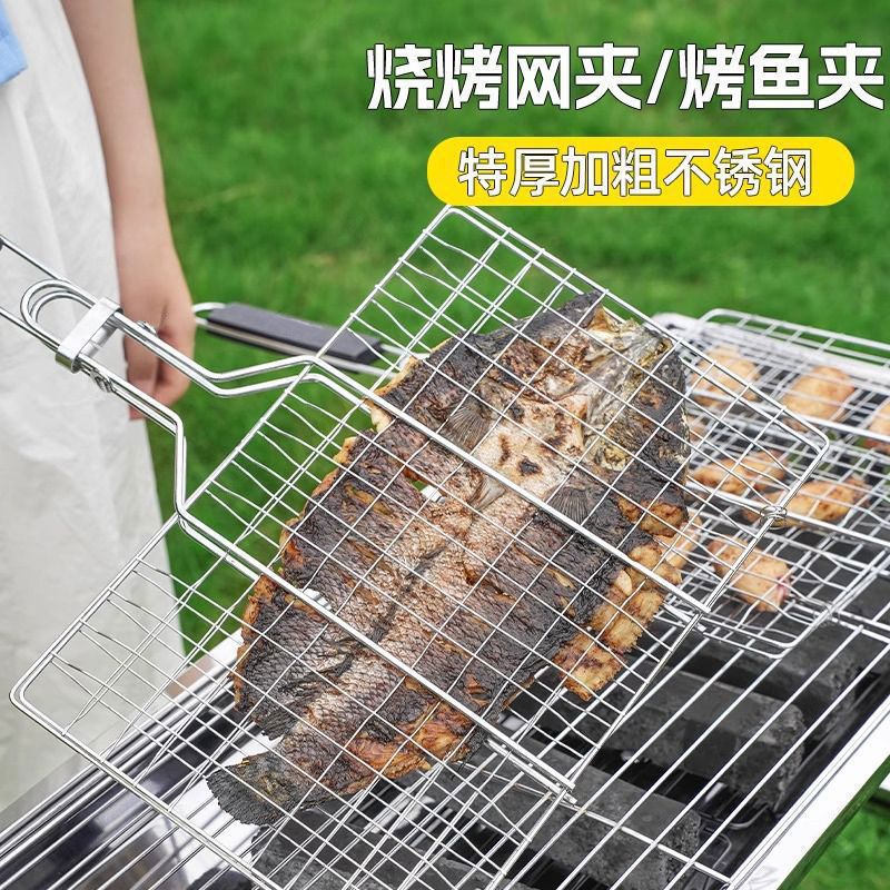 Зажим для рыбы на гриле, сетчатый зажим, большой коммерческий бытовой утолщенный квадратный сетчатый зажим для барбекю из нержавеющей стали, утолщенный сетчатый зажим для овощей на гриле на открытом воздухе