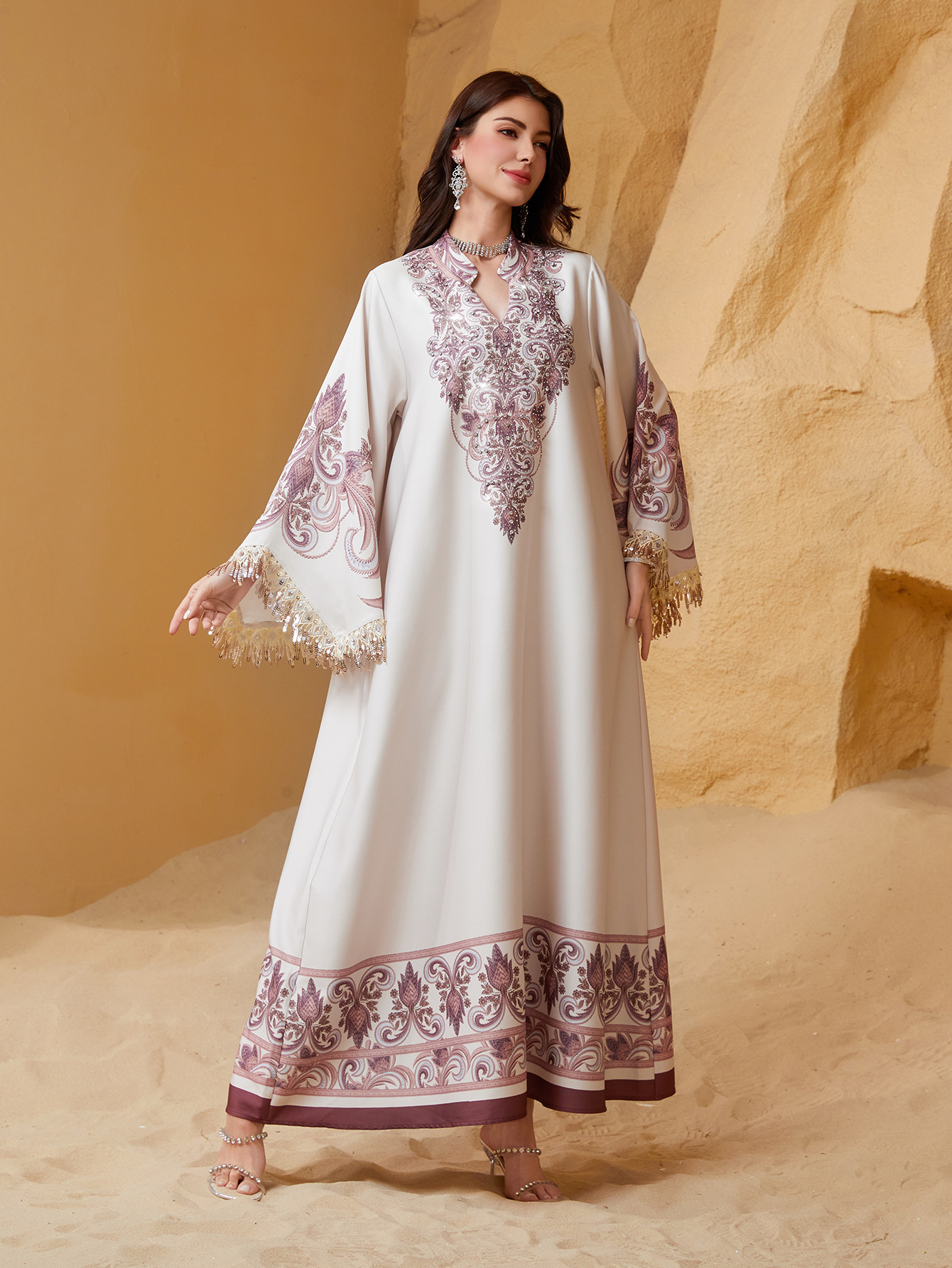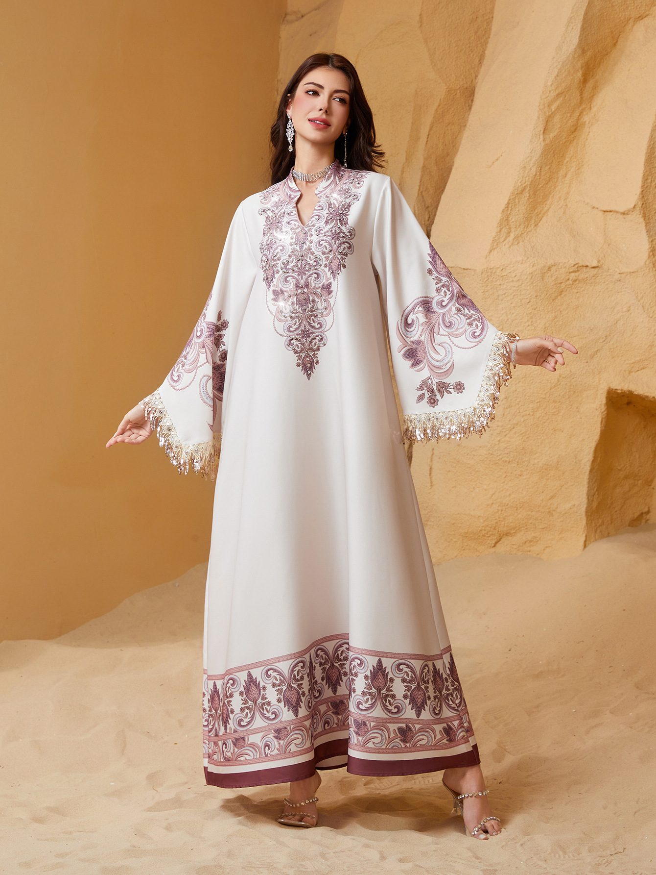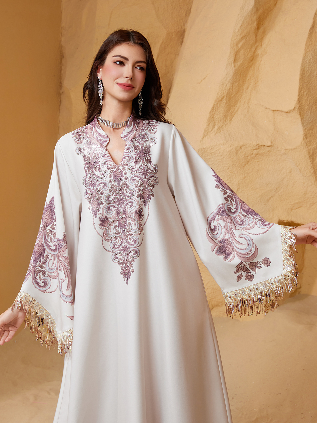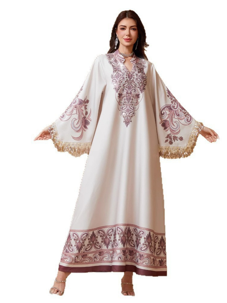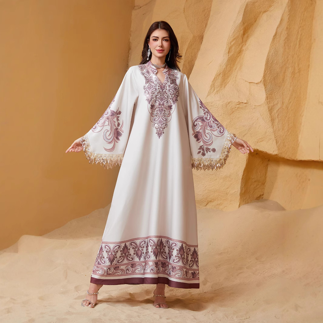 Самый продаваемый амазонский мусульманский халат Ближневосточного востока с v-образным вырезом и кисточками, арабский халат Абая