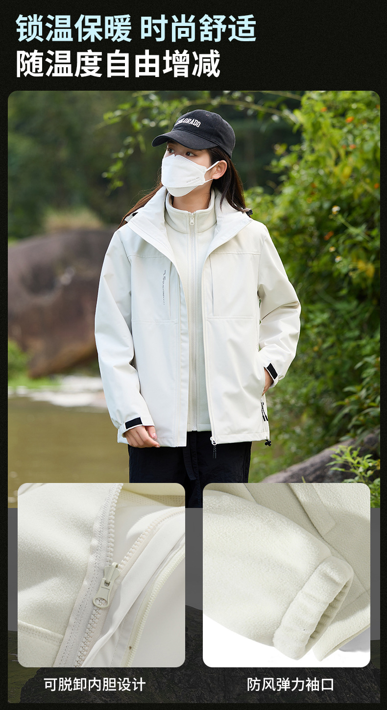 2024 новая уличная куртка «три в одном», водоотталкивающая мужская и женская съемная флисовая подкладка, уличная альпинистская куртка