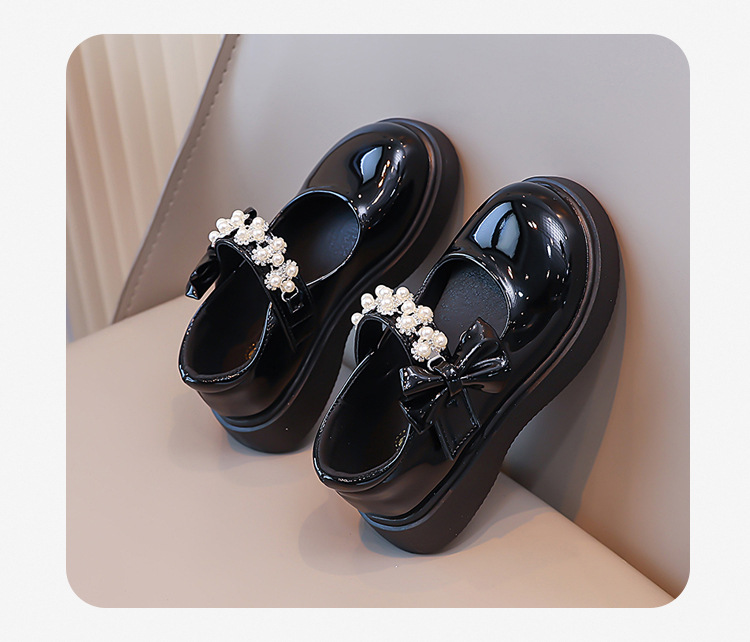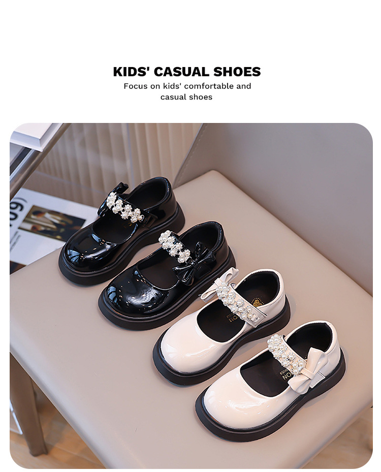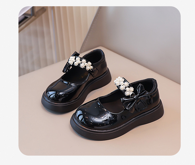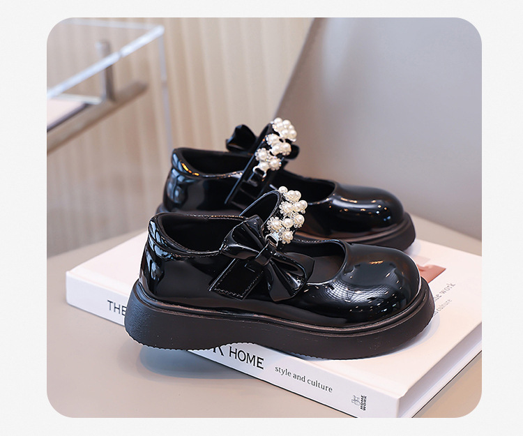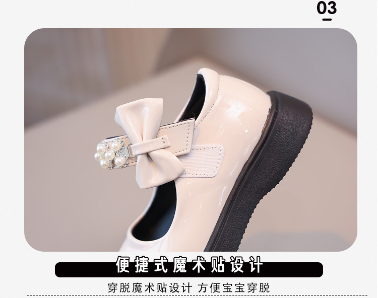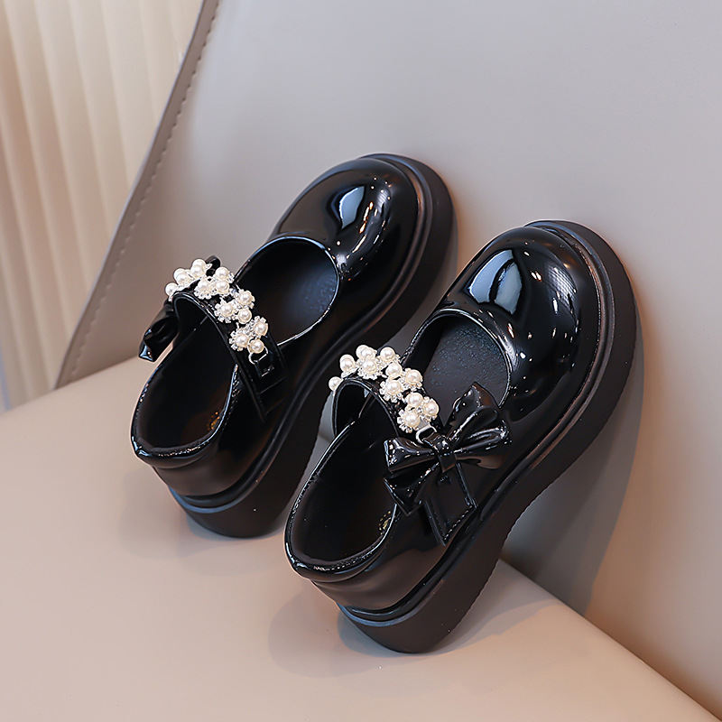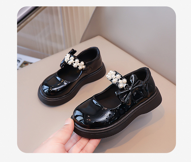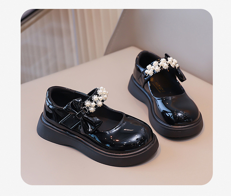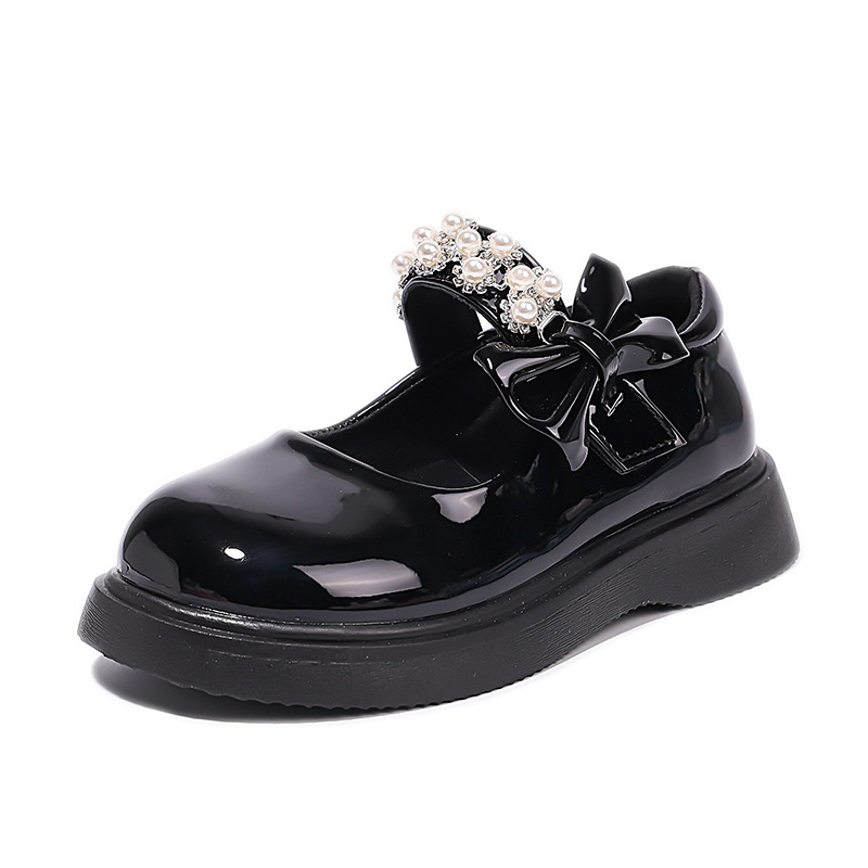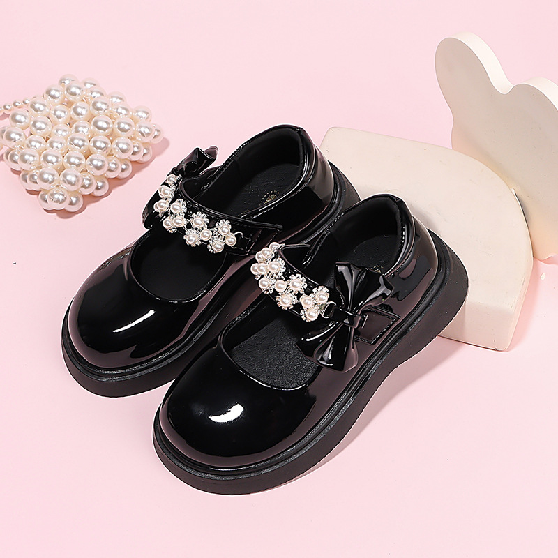 Детские чёрные кожаные туфли для девочек старшего возраста, подходят для школьных выступлений, с бантом и липучкой, на плоской подошве, в школьном стиле.