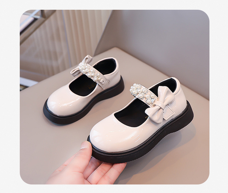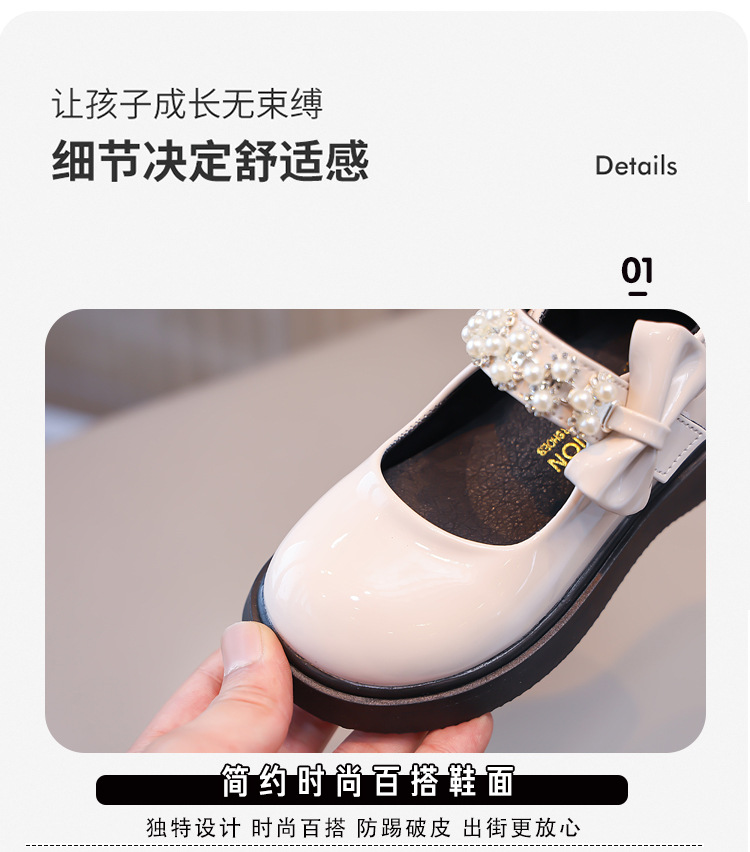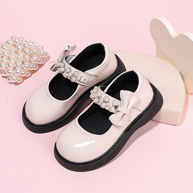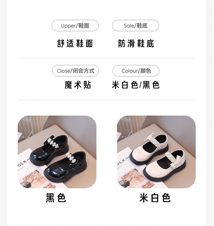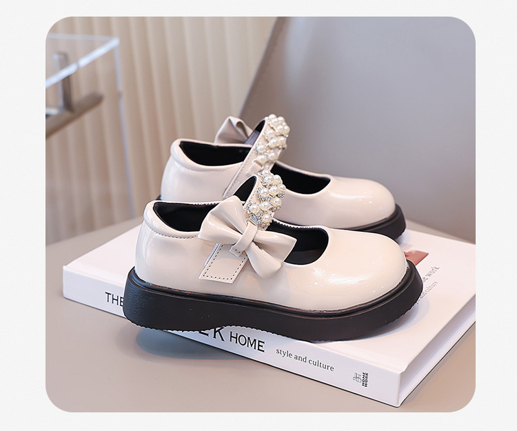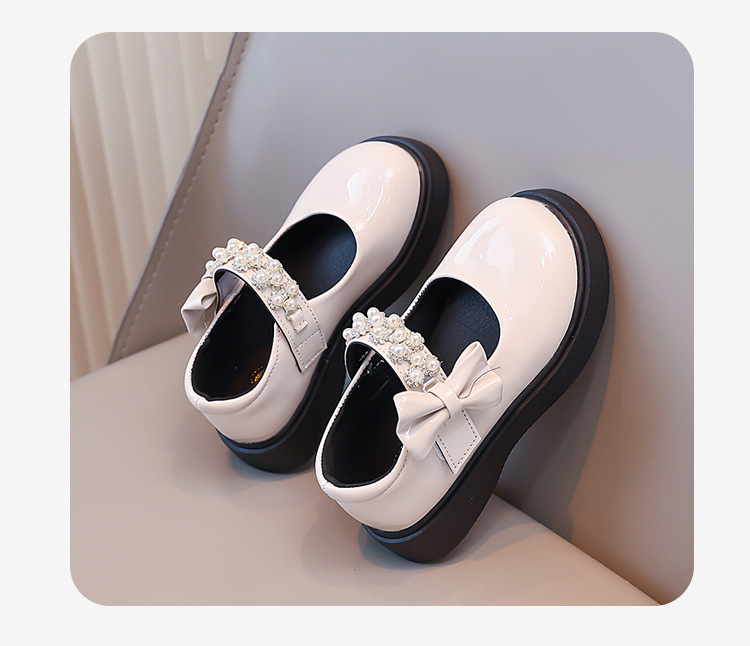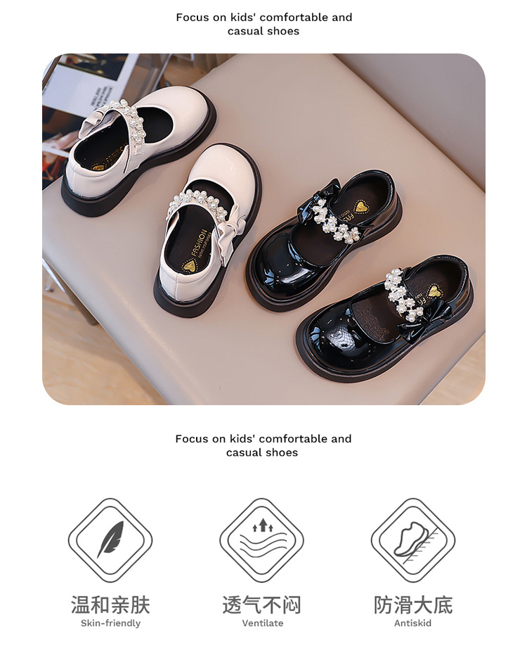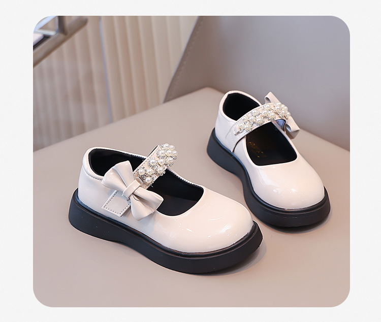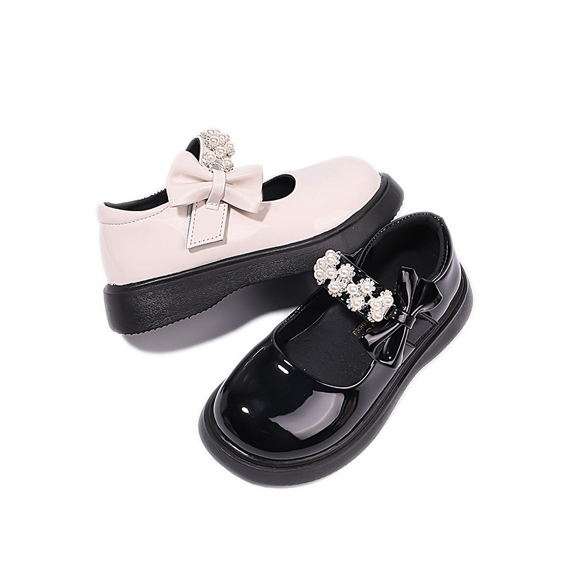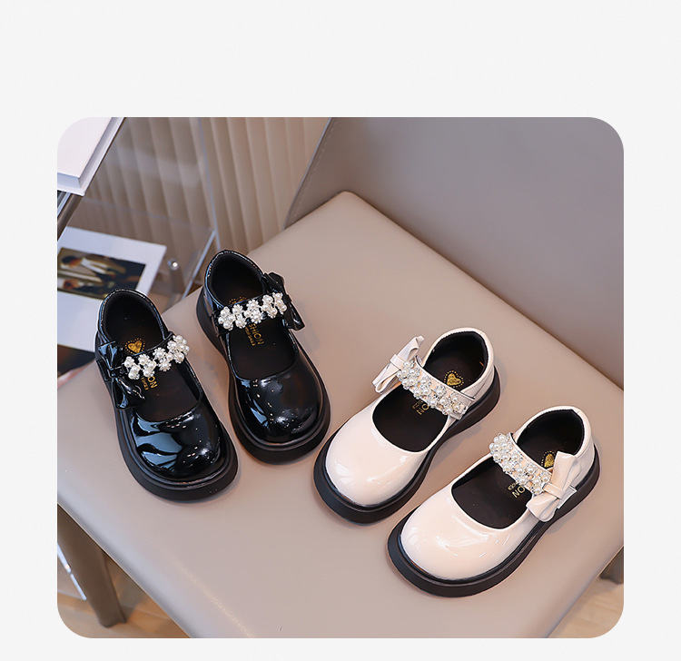 Детские чёрные кожаные туфли для девочек старшего возраста, подходят для школьных выступлений, с бантом и липучкой, на плоской подошве, в школьном стиле.