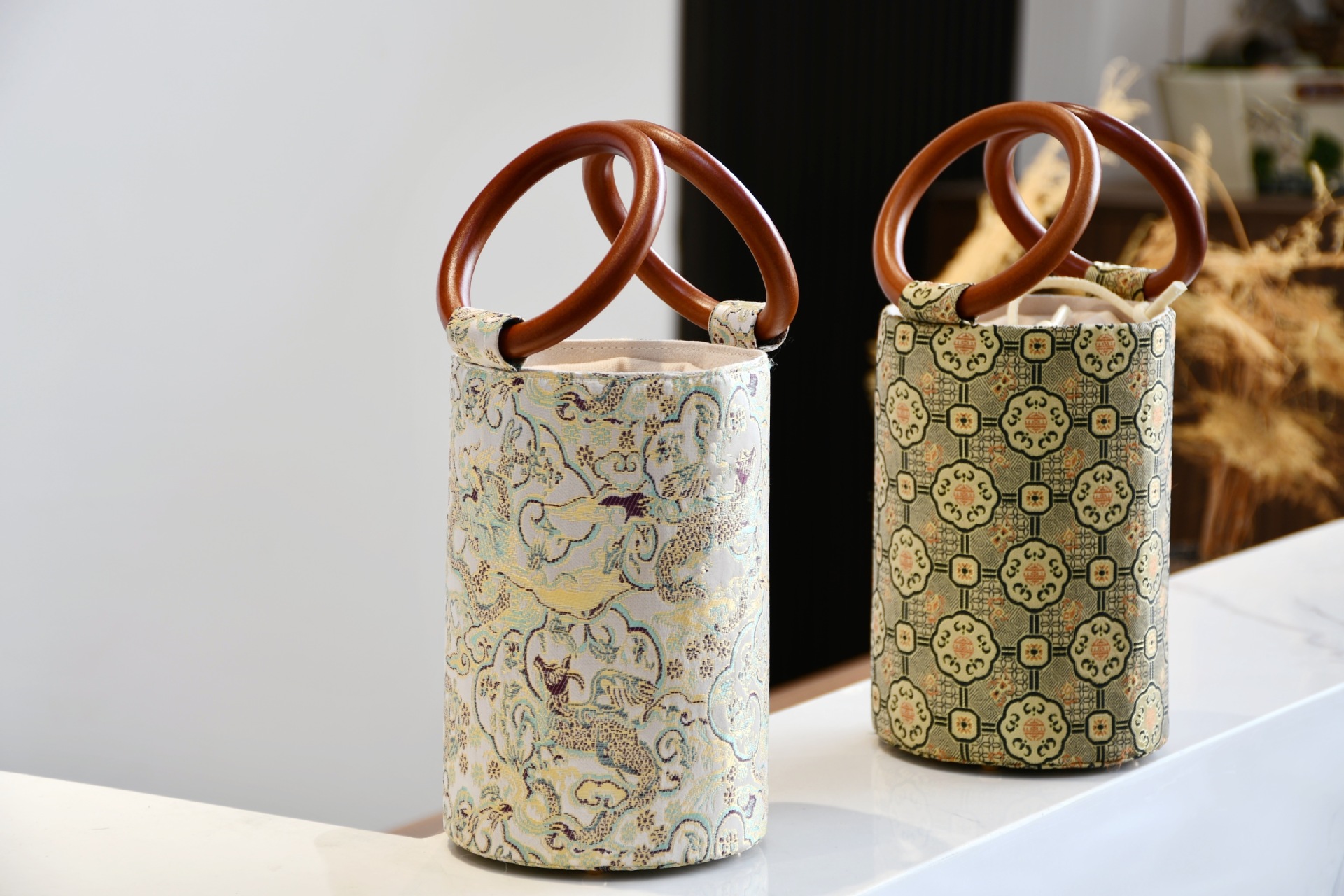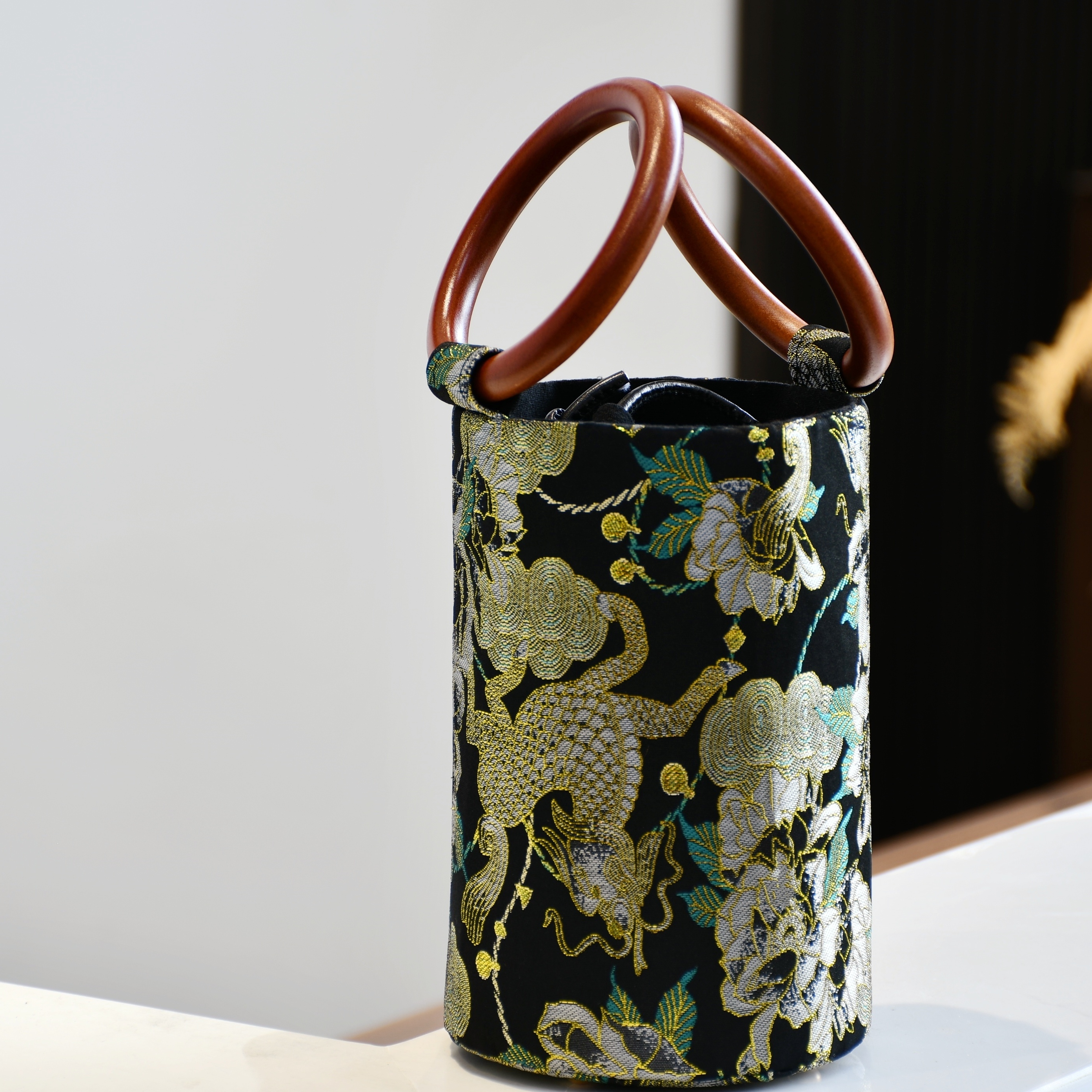Weng Kai двойное деревянное кольцо, сумка-ведро, золотая сумка, сумка из материала «сделай сам», комплект тканевых сумок из ткани «Песня», ткань «Невидимое культурное наследие династии Хань»