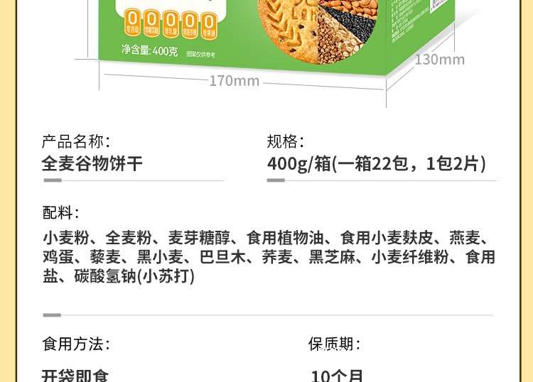 Одна коробка цельнозернового печенья [с добавлением сахарозы] 400 г*1 коробка; Три коробки [Купите 2, получите 1 бесплатно, отправлено 3 коробки] Печенье из цельнозерновых хлопьев 400 г*3 коробки; [Пробный пакет] Бисквит из цельнозерновых хлопьев 200 г