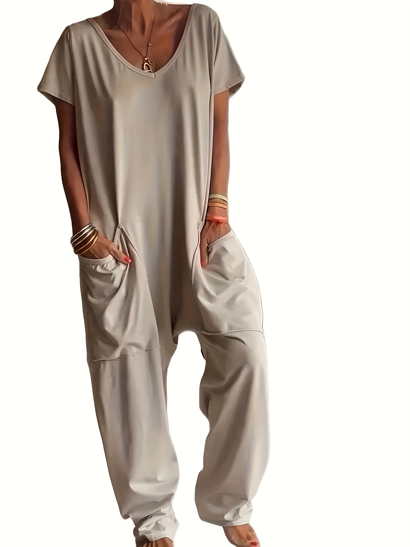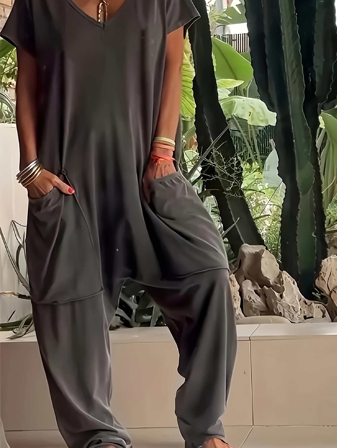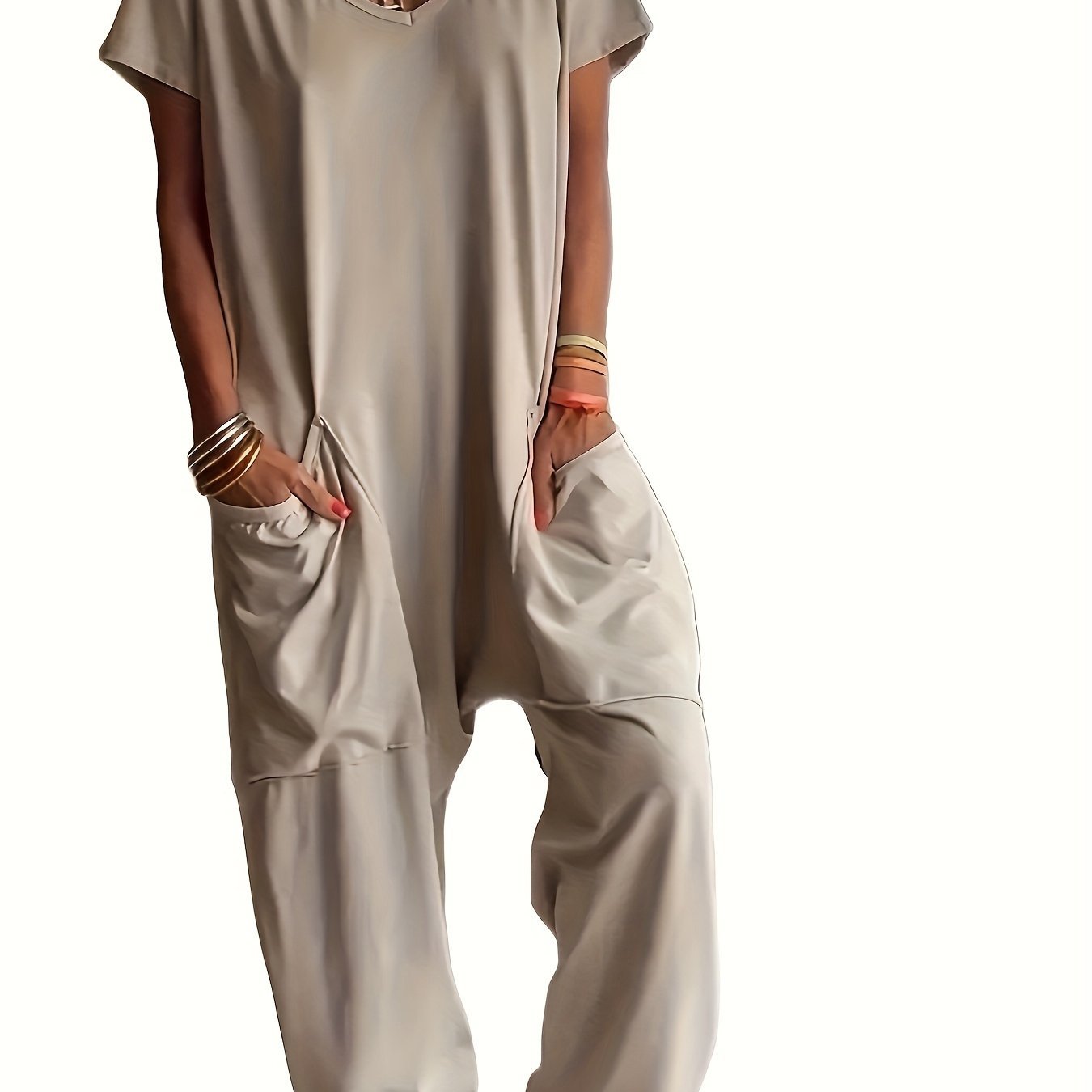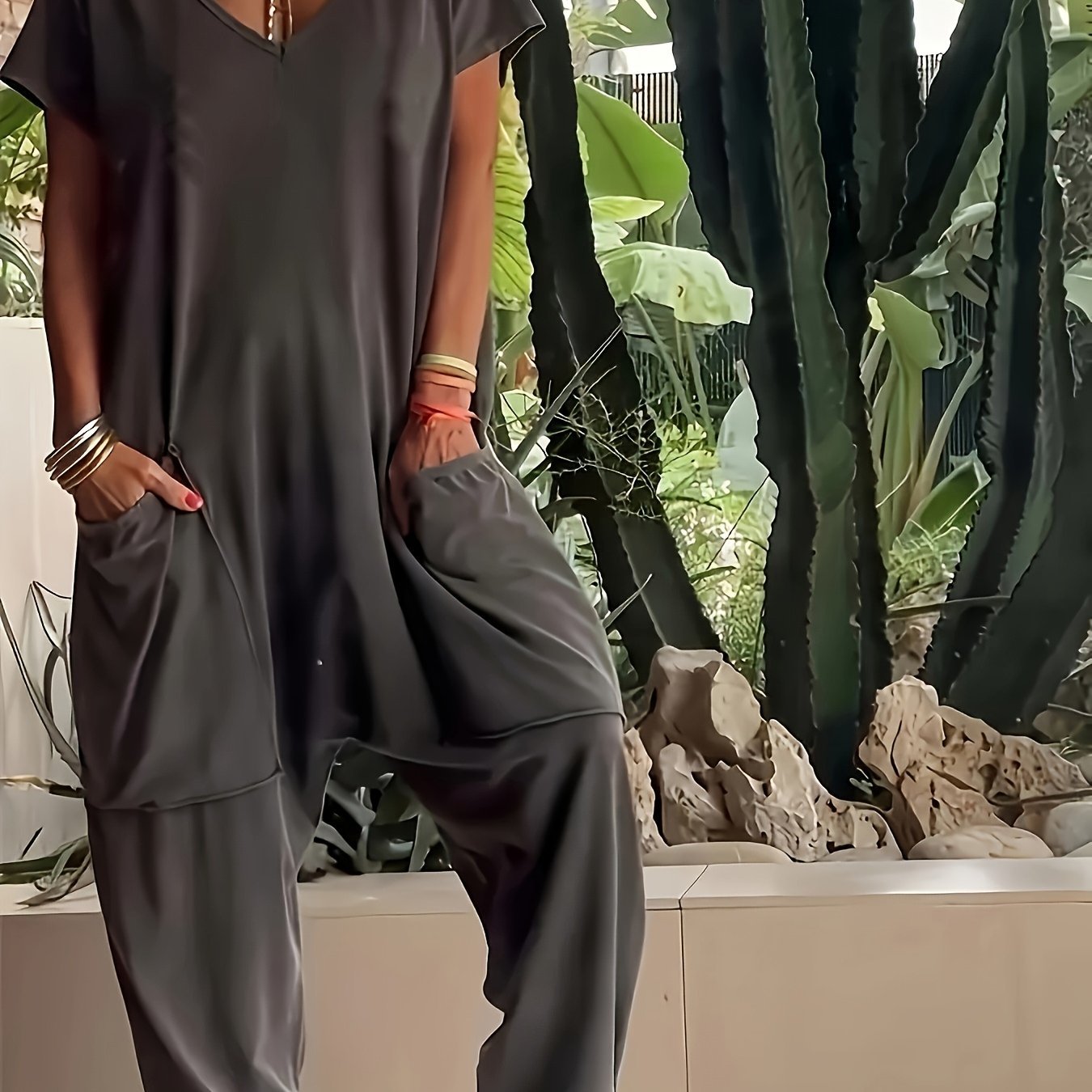 Повседневный комбинезон Элегантный повседневный женский свободный комбинезон с V-образным вырезом