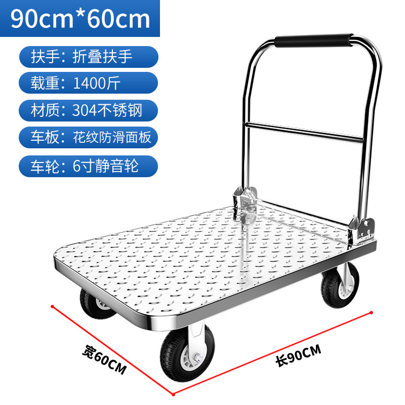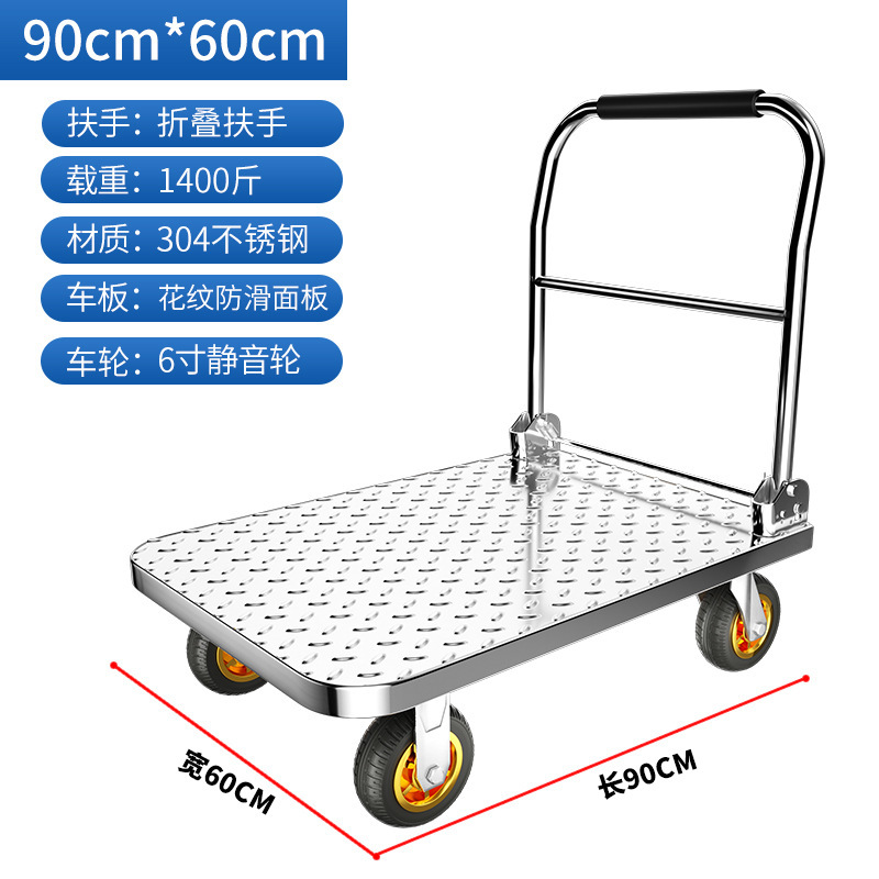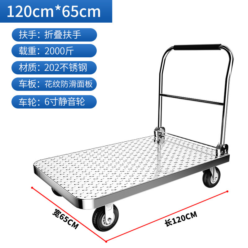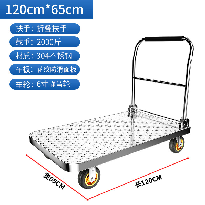 Тележка с мозаичным узором, 202 маленькая тележка для перевозки товаров, фиксированная складная тележка с плоской платформой из нержавеющей стали 304.
