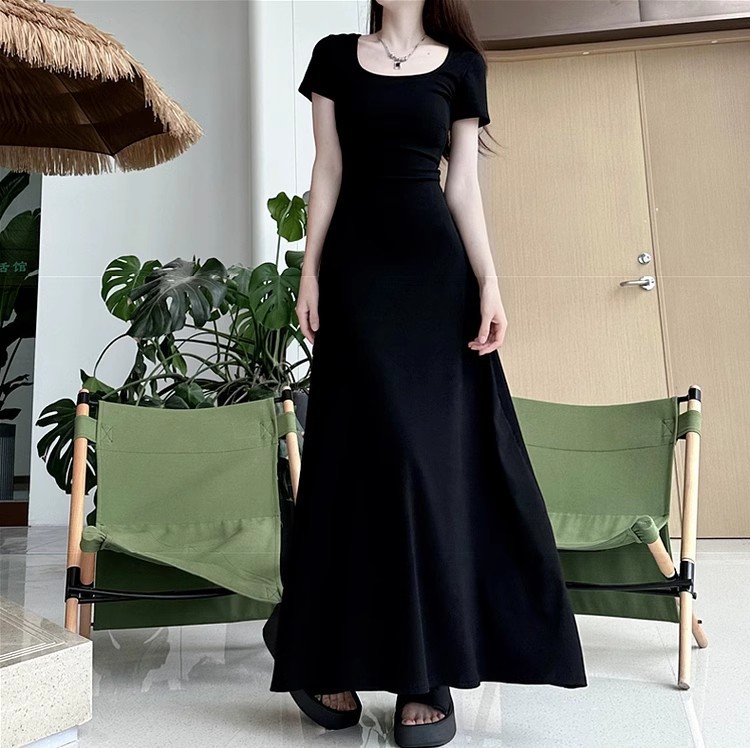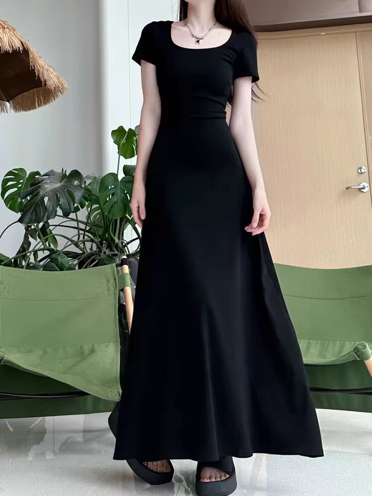 2025 новое миниатюрное французское черное облегающее платье для женщин, элегантное летнее платье с завышенной талией, длинное платье премиум-класса