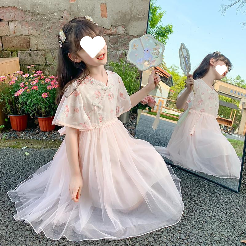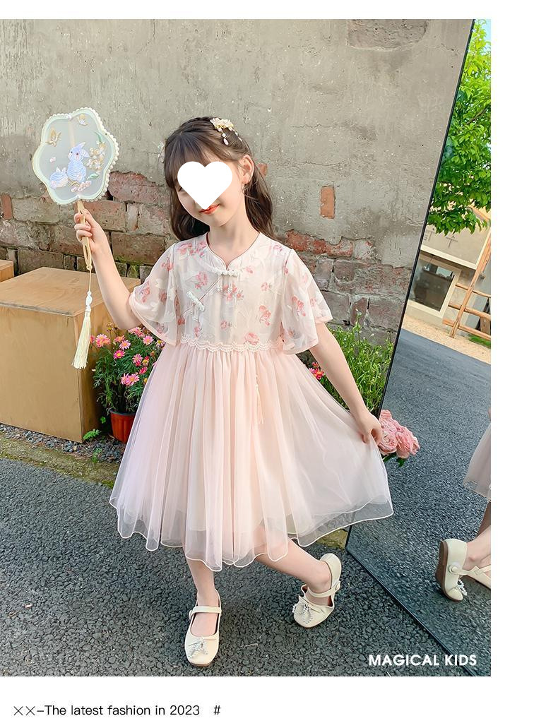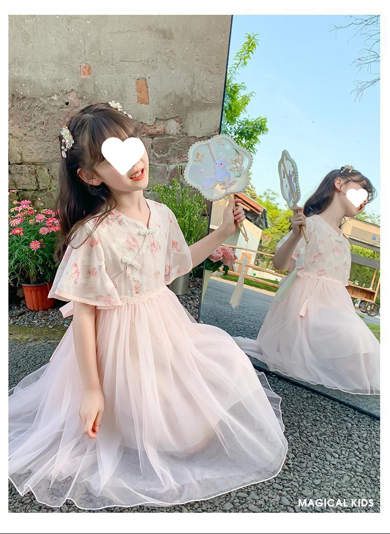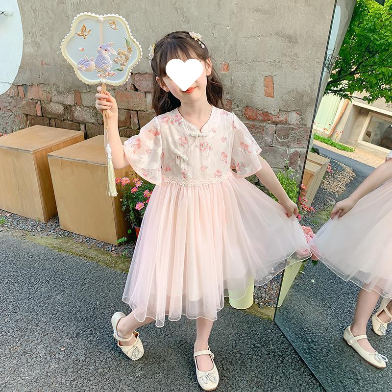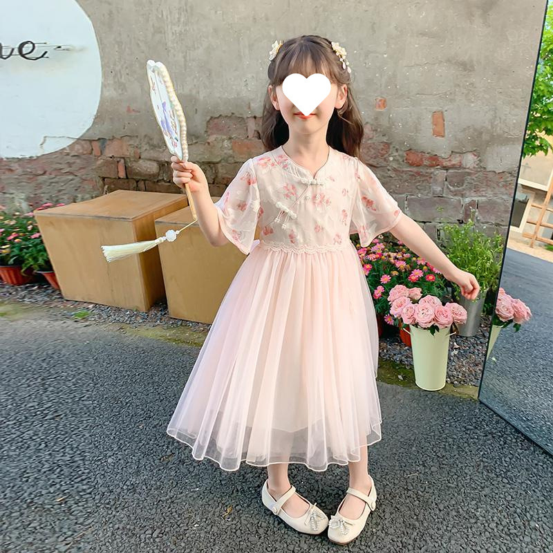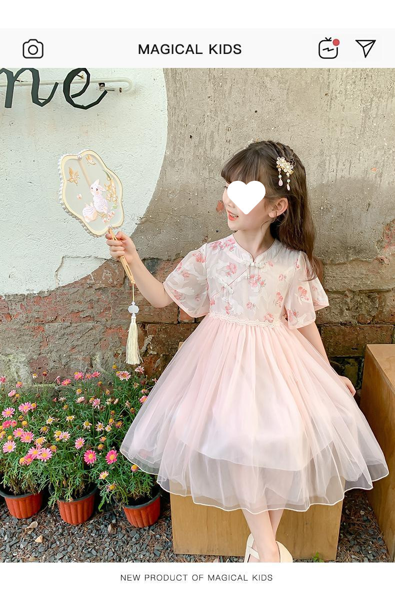 Летнее платье для девочек 2025, новое детское летнее платье в китайском этническом стиле, ханьская династия, чонсам, цветочная юбка принцессы
