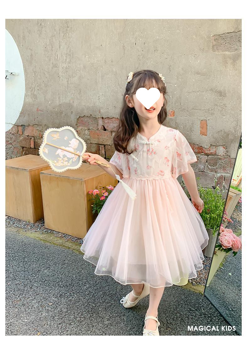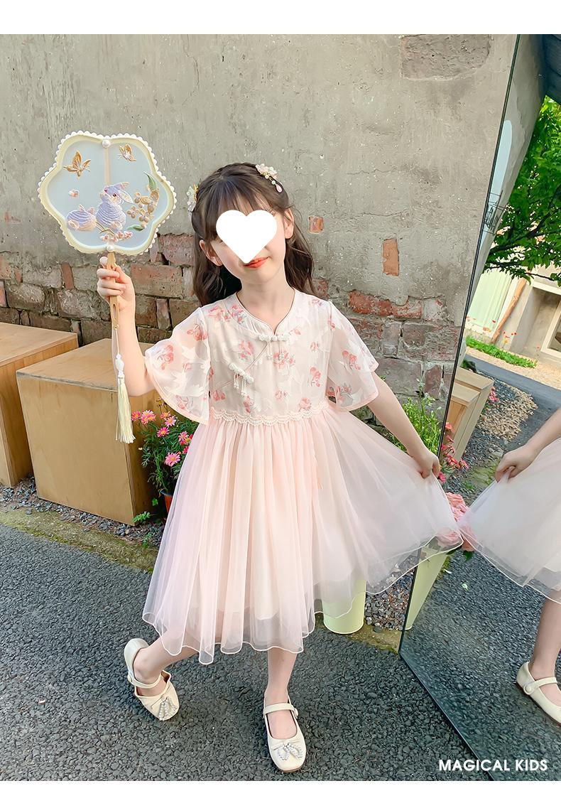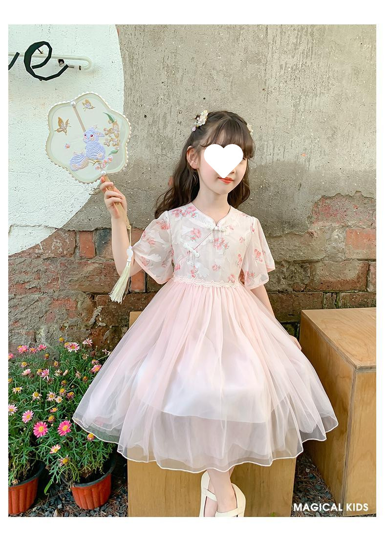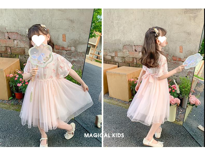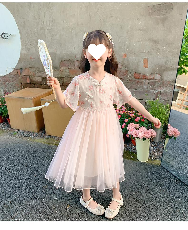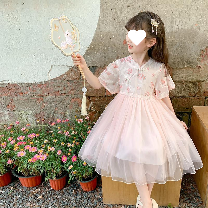Летнее платье для девочек 2025, новое детское летнее платье в китайском этническом стиле, ханьская династия, чонсам, цветочная юбка принцессы