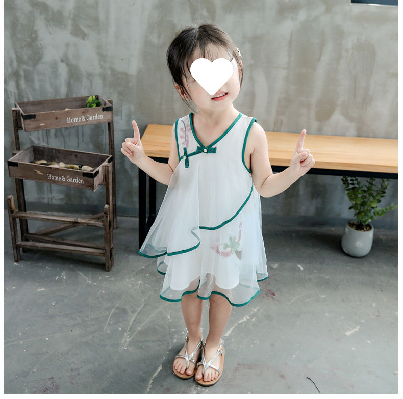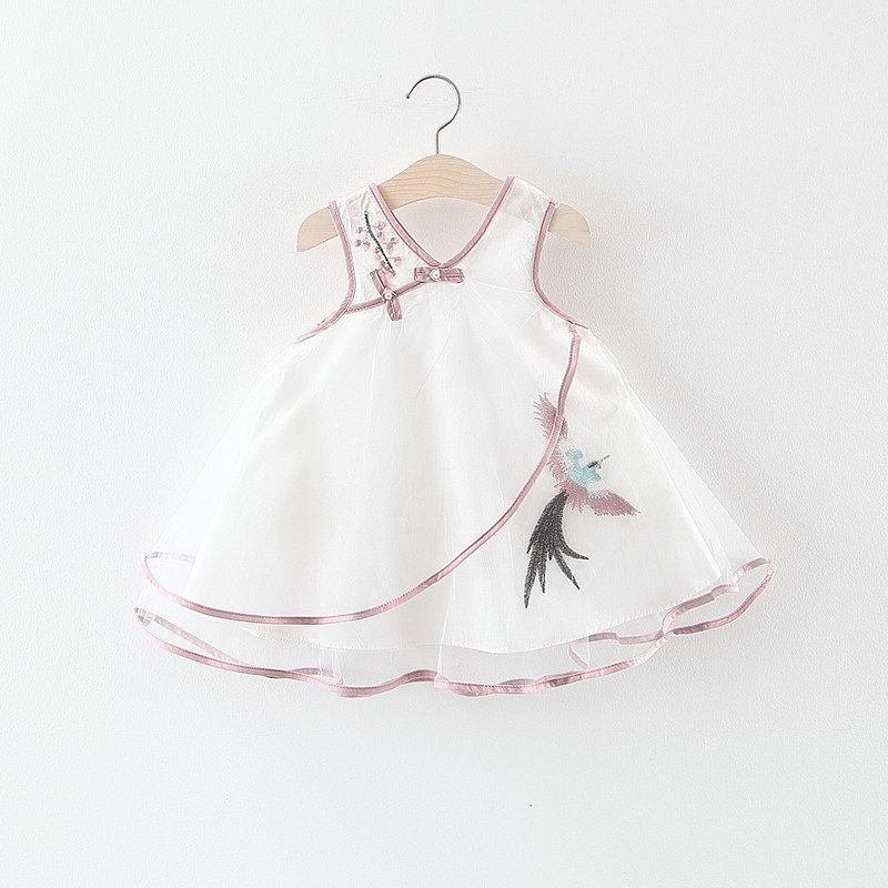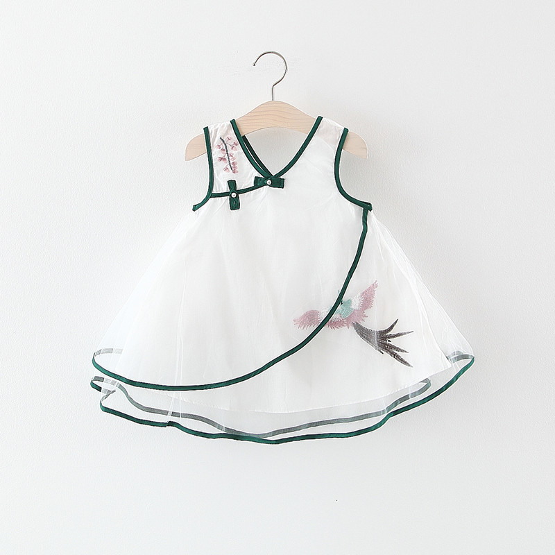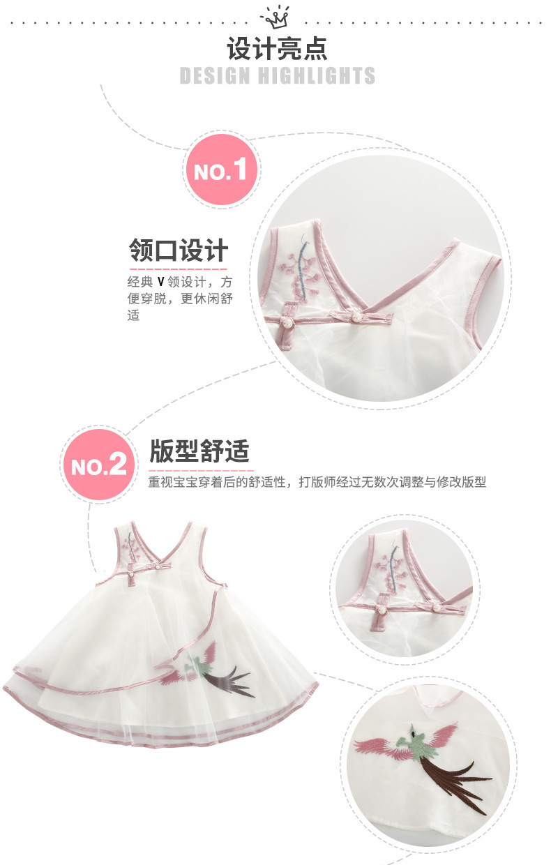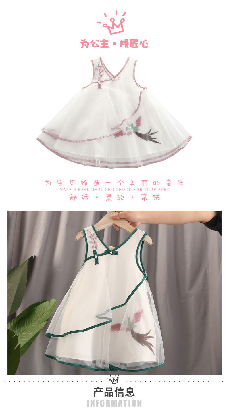 Модное платье для девочек 2025 года, новое платье-чонсам для маленькой девочки, сетчатая юбка-принцесса, китайский стиль, детский жилет-платье