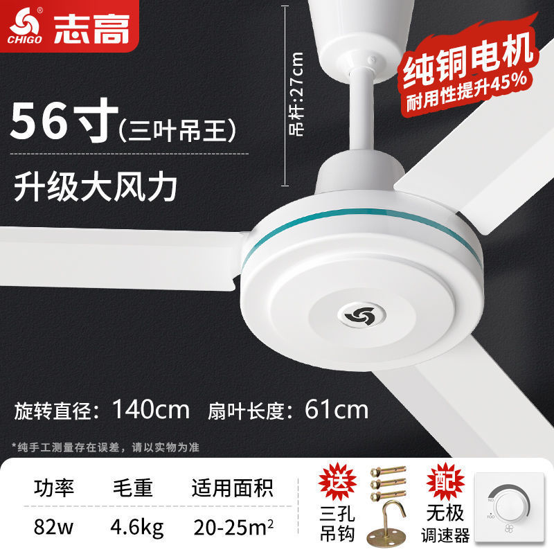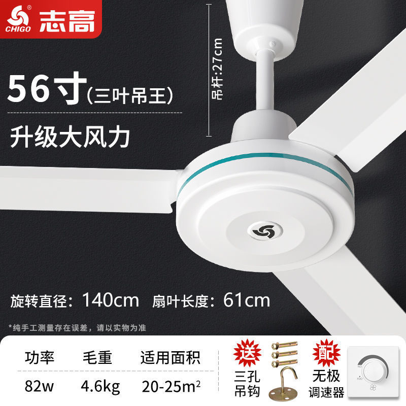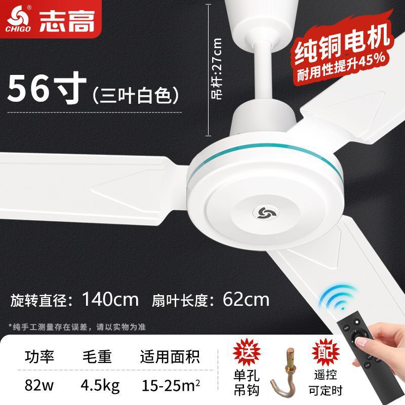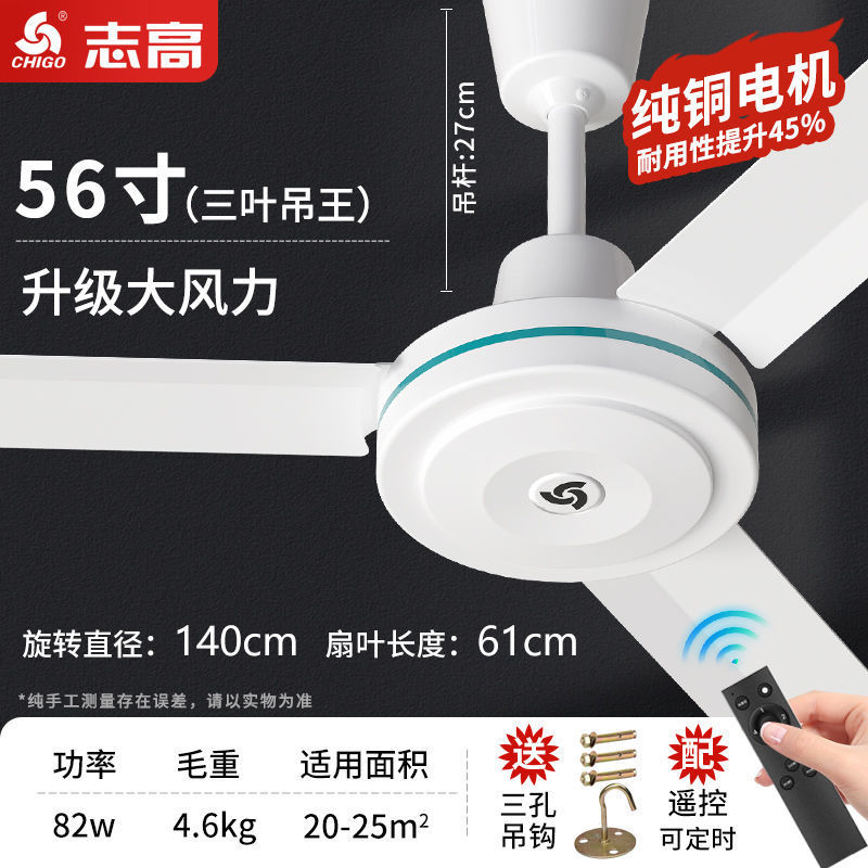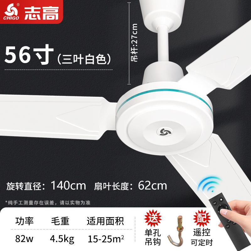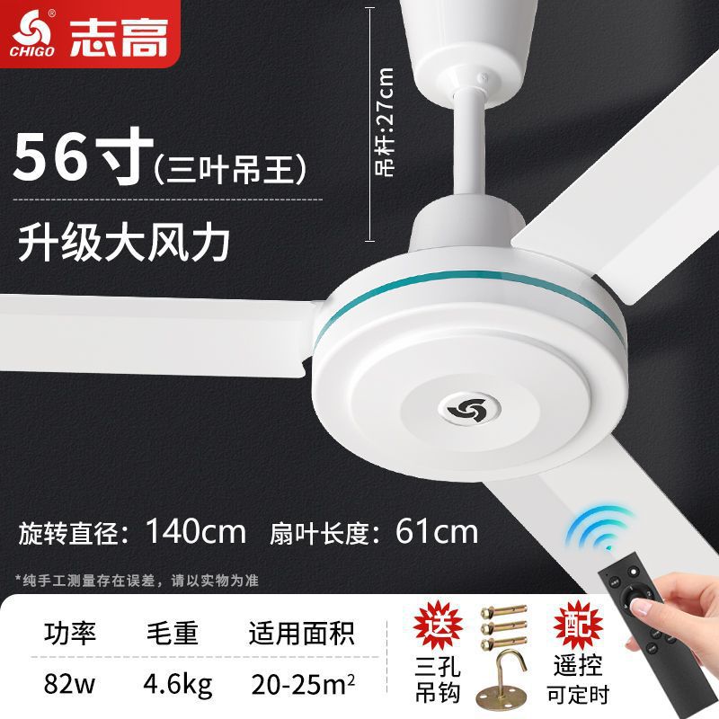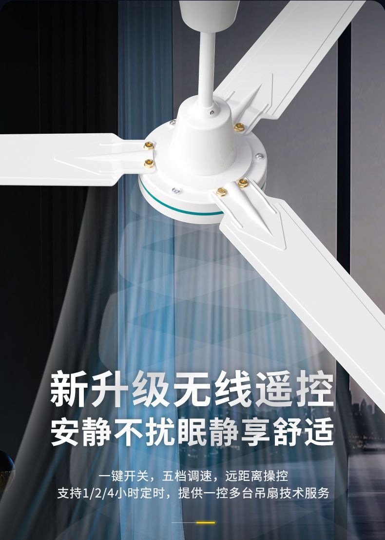 Потолочный вентилятор с мощной ветровой мощностью, 56inch железных лопасти для домашнего и коммерческого использования в гостиных и столовых, промышленный универсальный потолочный вентилятор с дистанционным управлением.