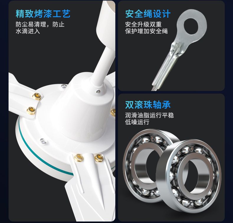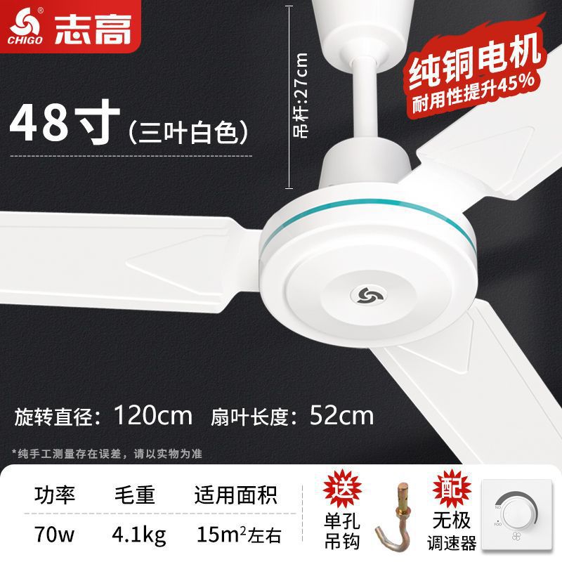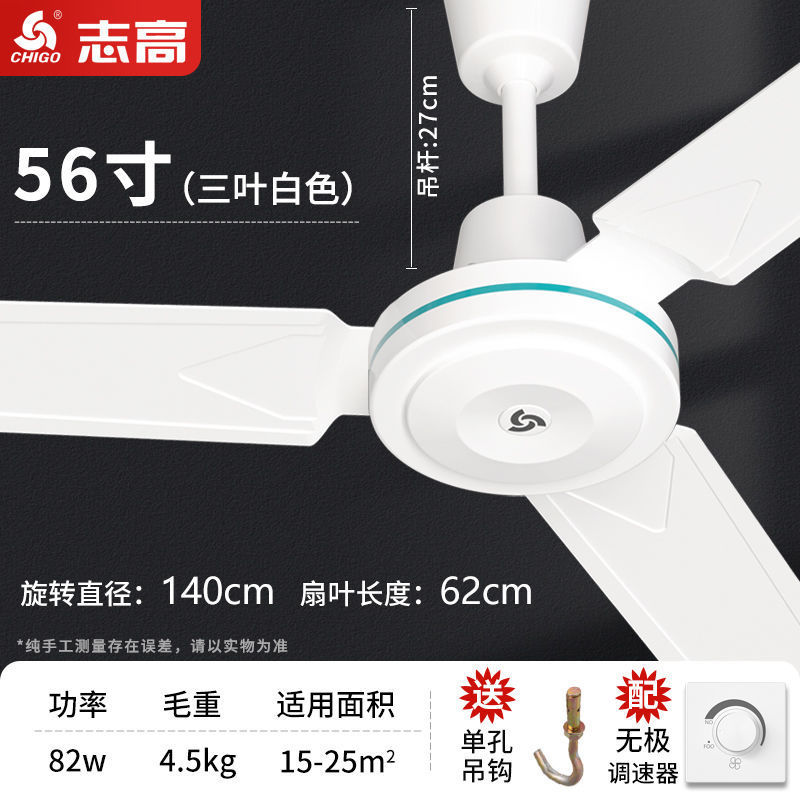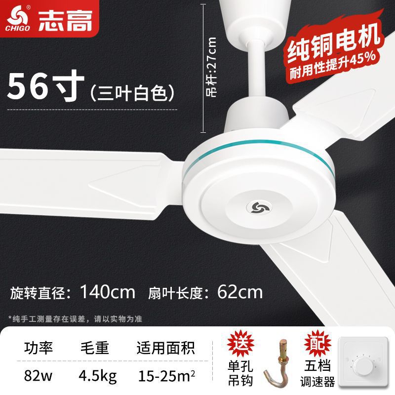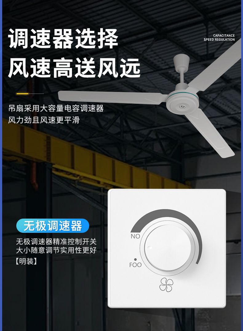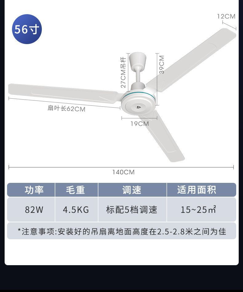 Потолочный вентилятор с мощной ветровой мощностью, 56inch железных лопасти для домашнего и коммерческого использования в гостиных и столовых, промышленный универсальный потолочный вентилятор с дистанционным управлением.