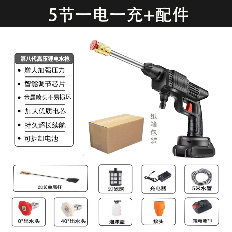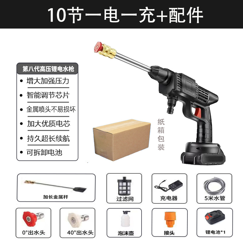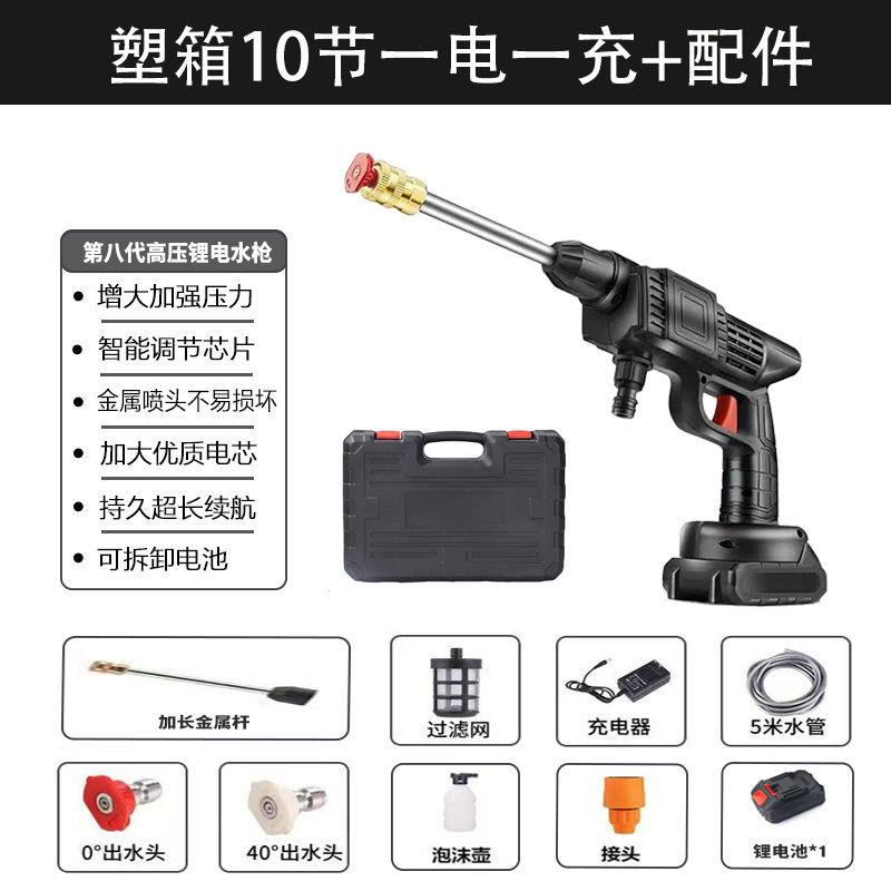 Трансграничная литиевая батарея, автомойка, мощный водяной пистолет высокого давления, беспроводная зарядка, пистолет для мойки автомобиля, портативный бытовой водяной пистолет, оптовая продажа