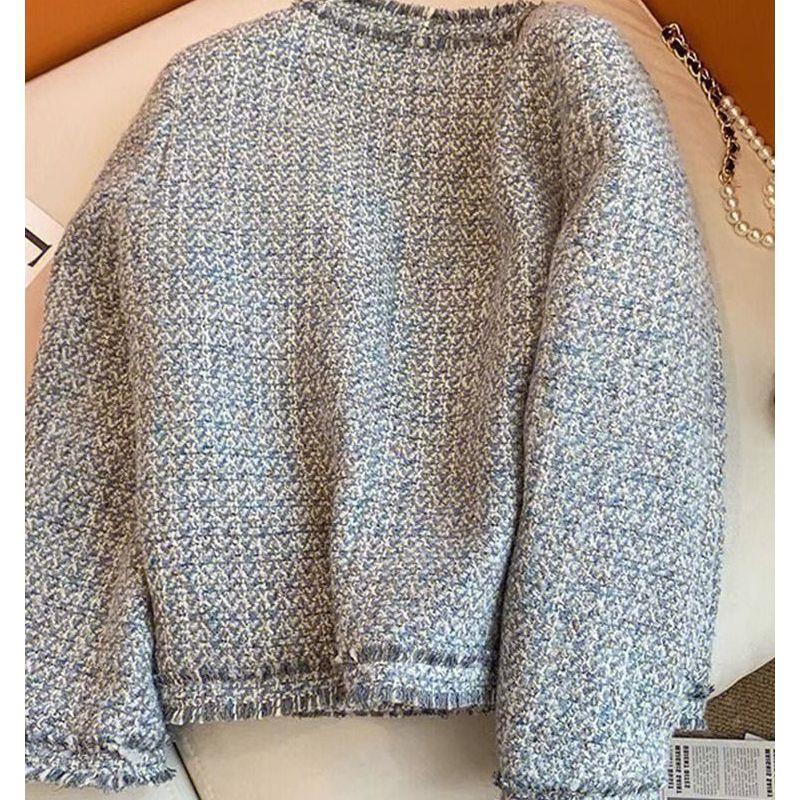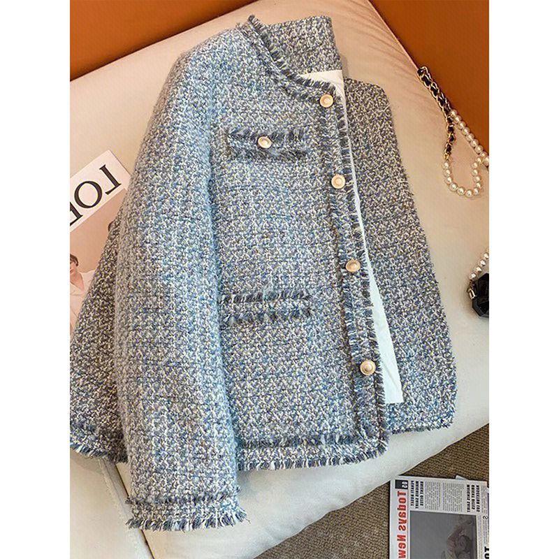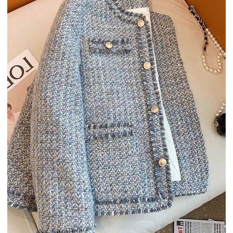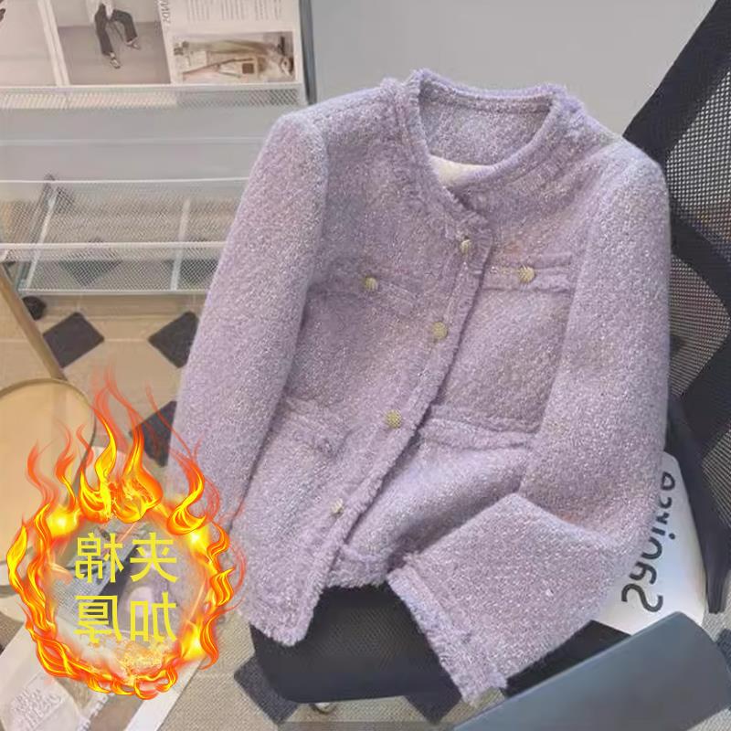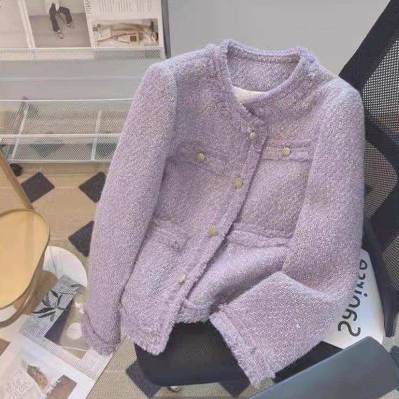 Модный в этом году красивый фиолетовый жакет в стиле Шанель, новый корейский драматический наряд на весну и осень, элегантный твидовый топ для светских львиц.