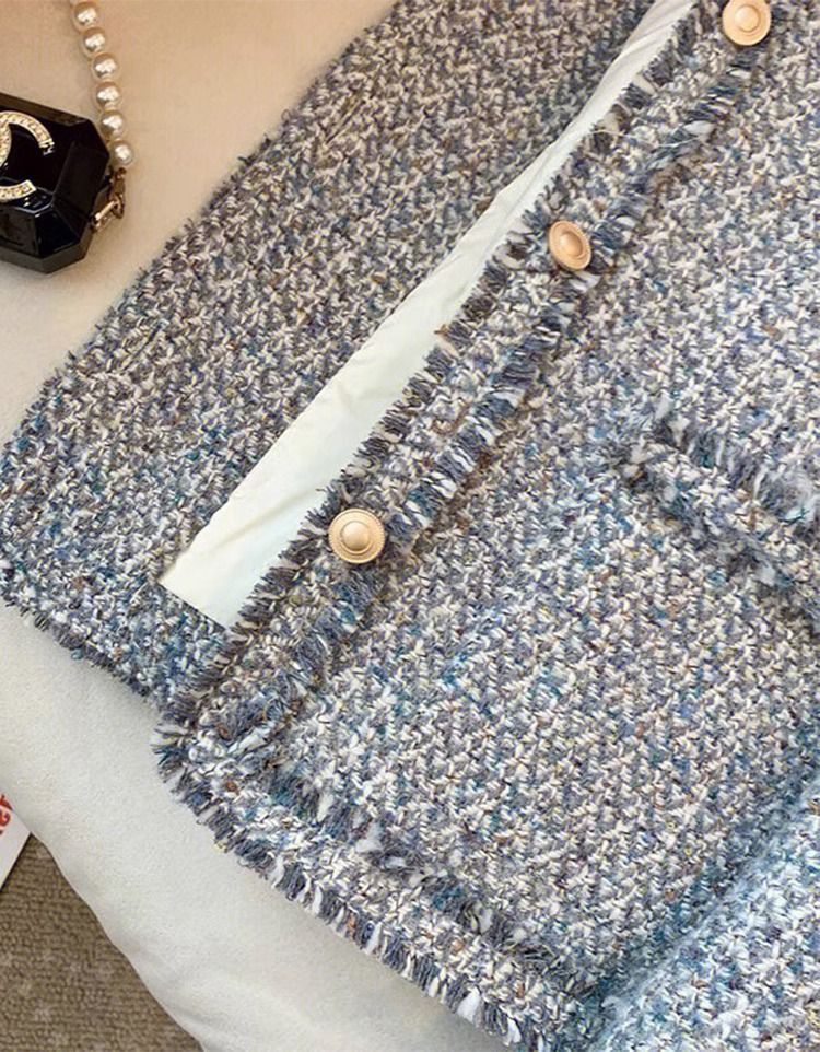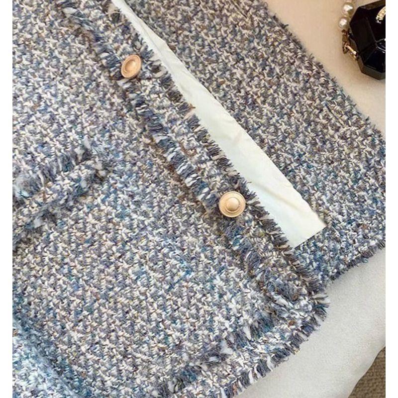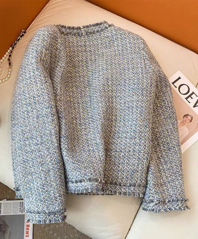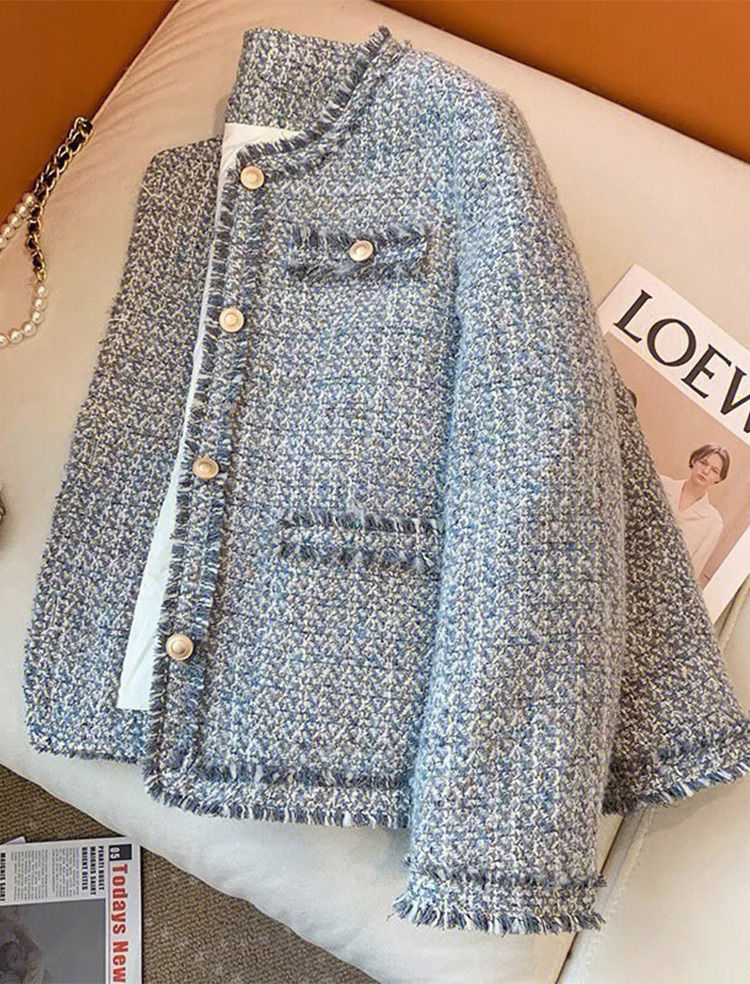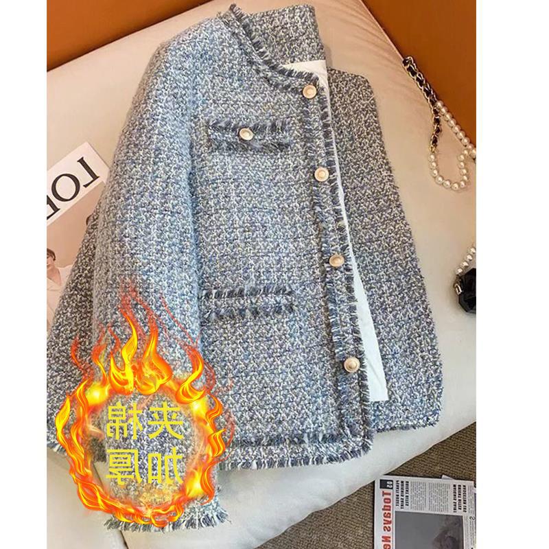 Модный в этом году красивый фиолетовый жакет в стиле Шанель, новый корейский драматический наряд на весну и осень, элегантный твидовый топ для светских львиц.