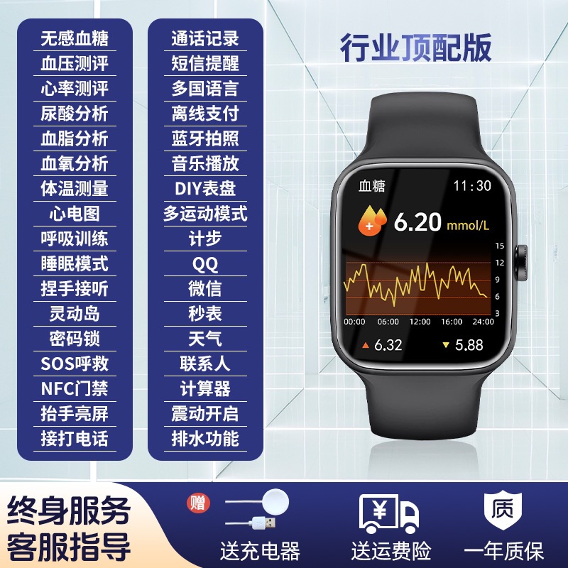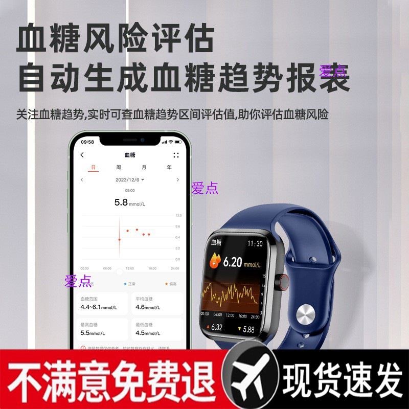 Высокоточные умные часы, уровень сахара в крови в реальном времени, артериальное давление, частота сердечных сокращений, мониторинг сна, браслет для вызова и упражнений.