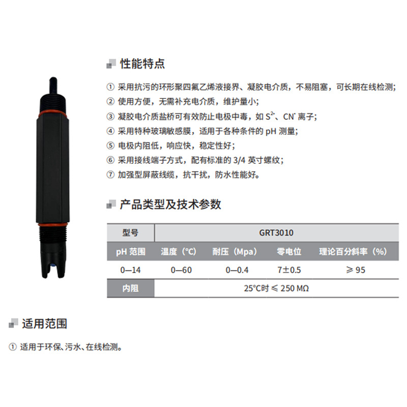 GRT3010-3M (водонепроницаемый PH-электрод в пластиковом корпусе); GRT3010W-3M (водонепроницаемый PH-электрод в пластиковом корпусе + PT1000); GRT3010P-3M (водонепроницаемый ОВП-электрод в пластиковом корпусе)