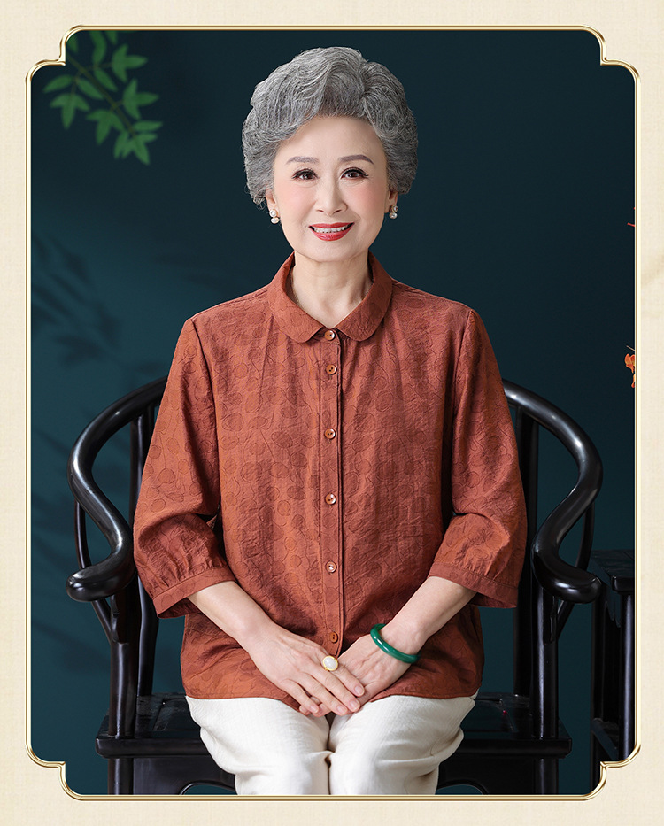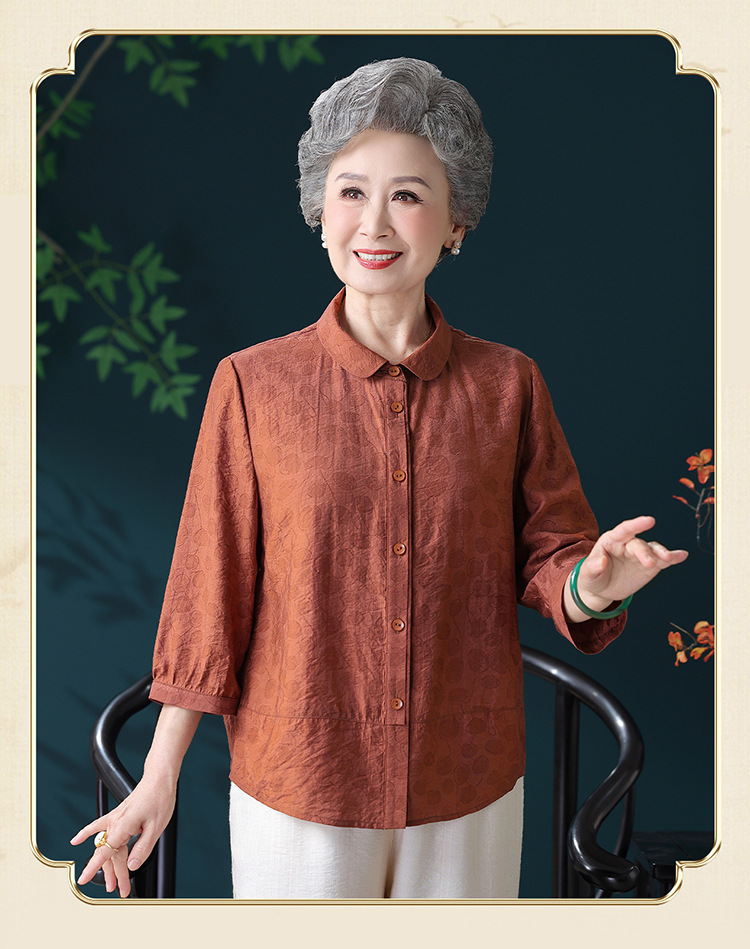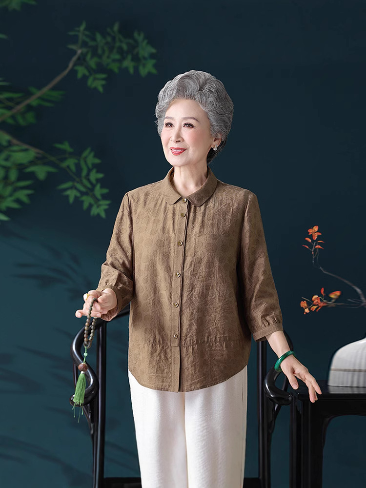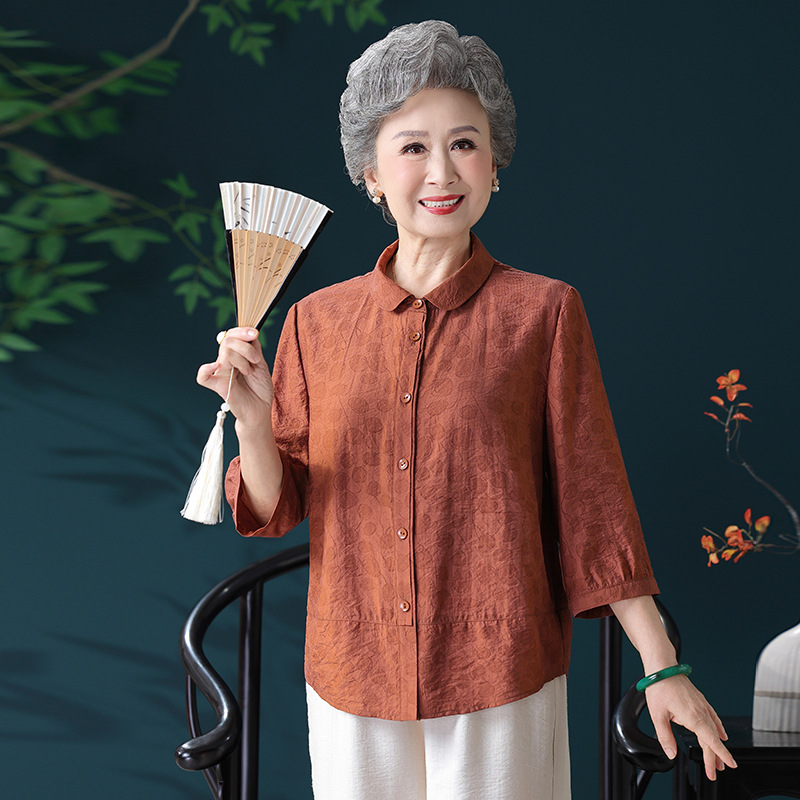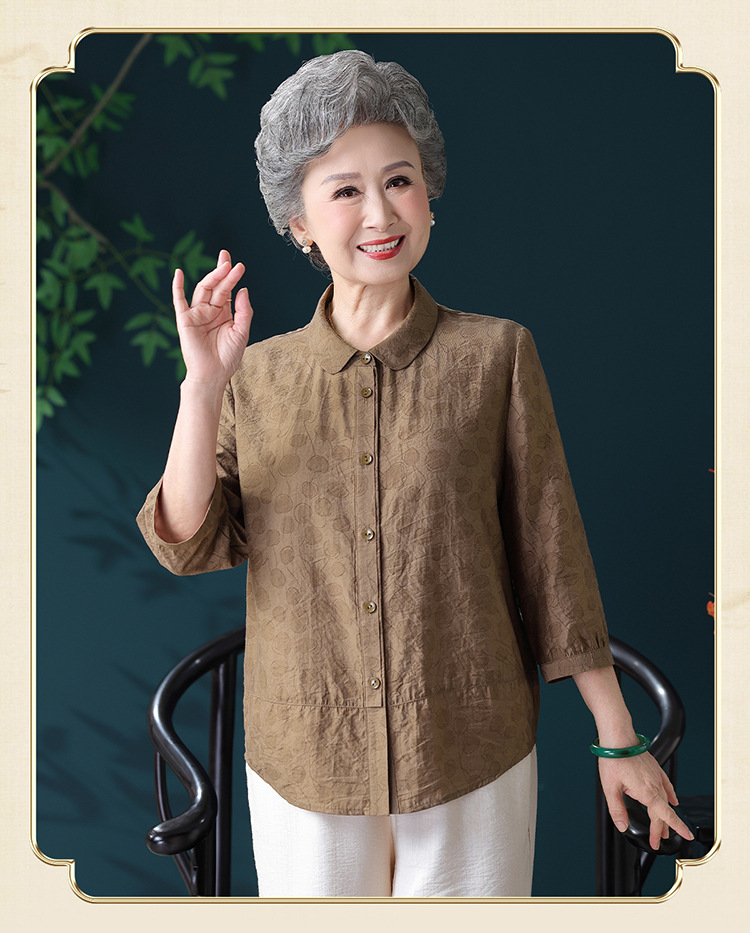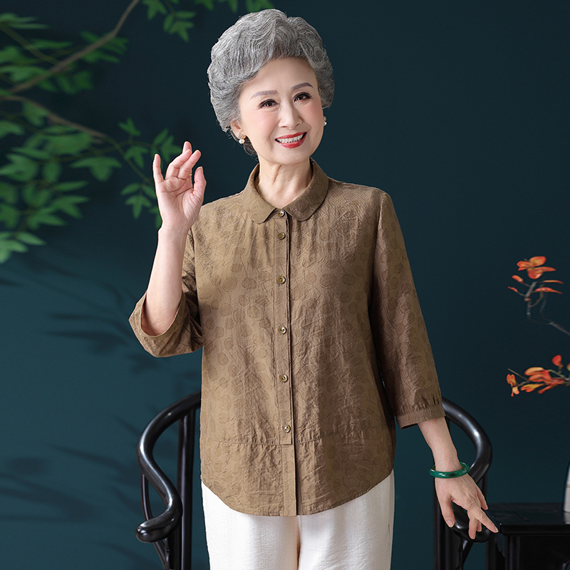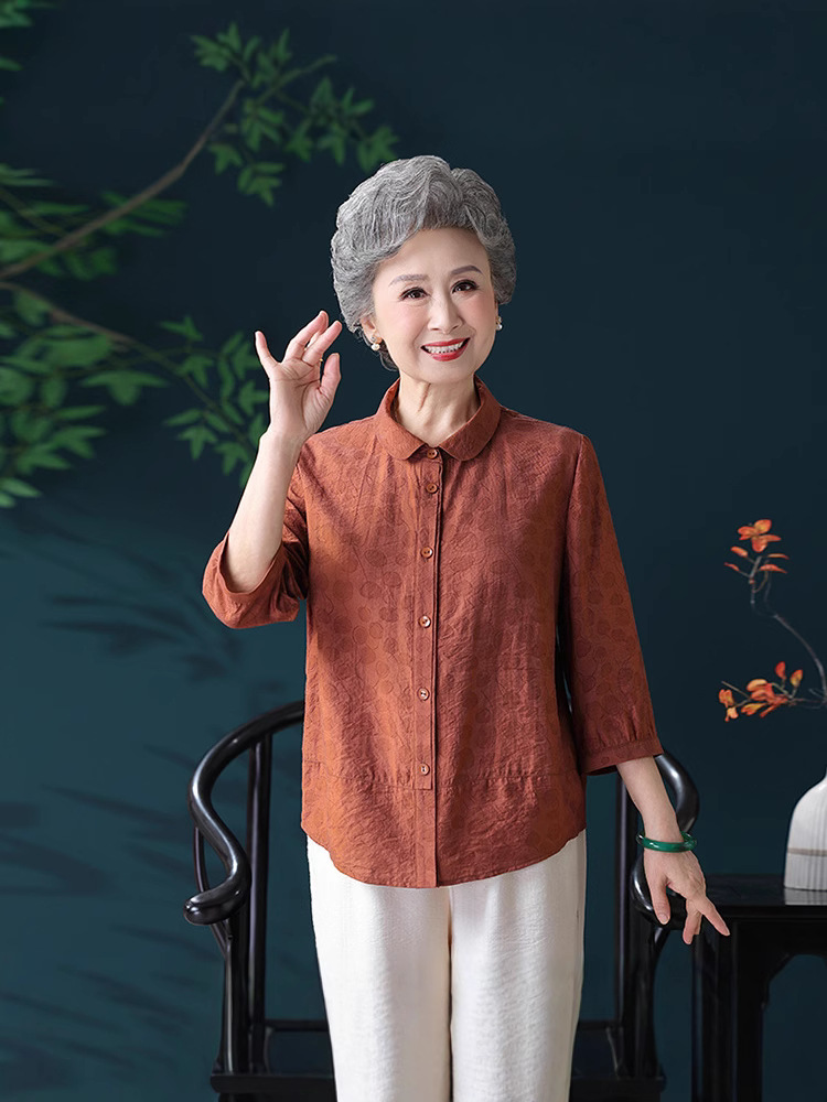 Летние рубашки для женщин среднего и пожилого возраста 2025, новая одежда для бабушек, тонкие хлопковые рубашки с отворотами для пожилых дам и женщин старшего возраста