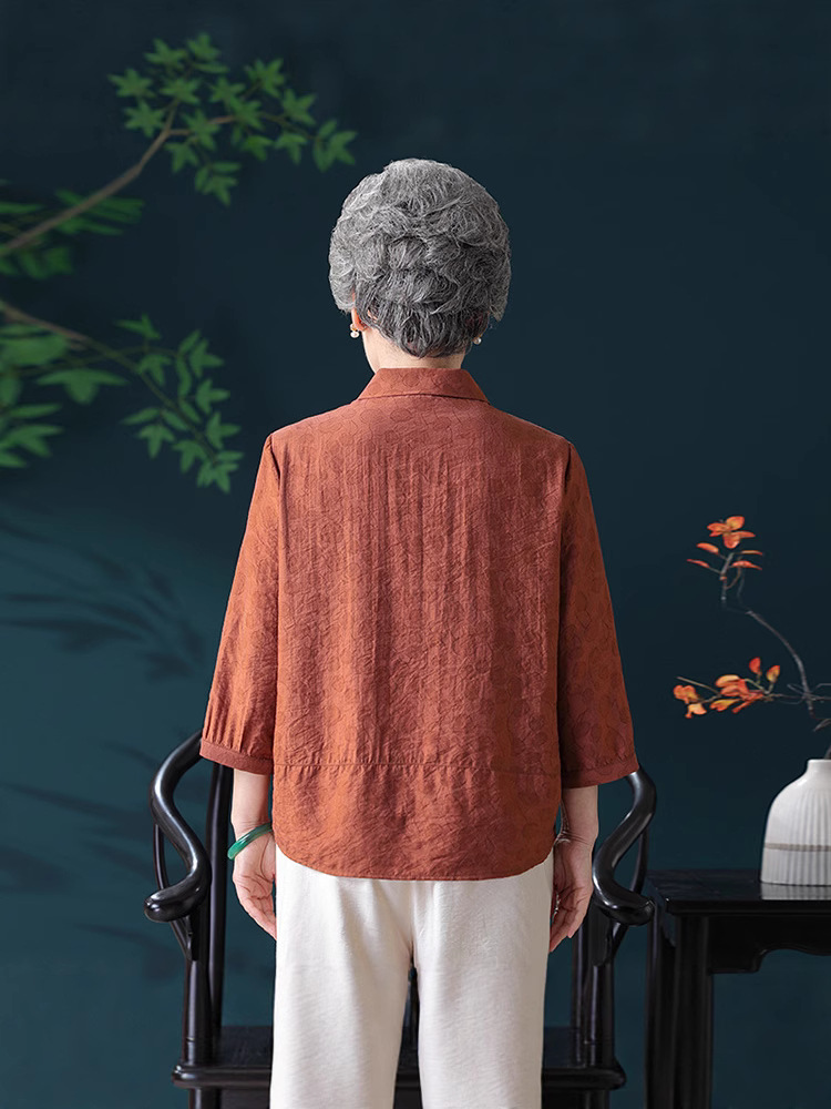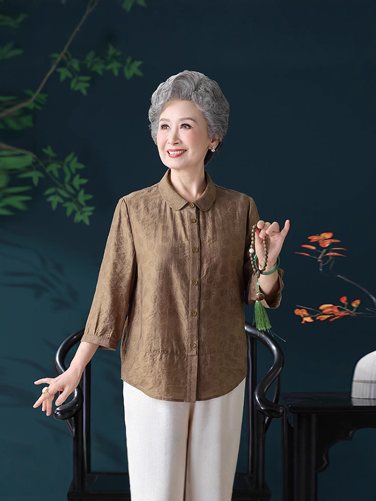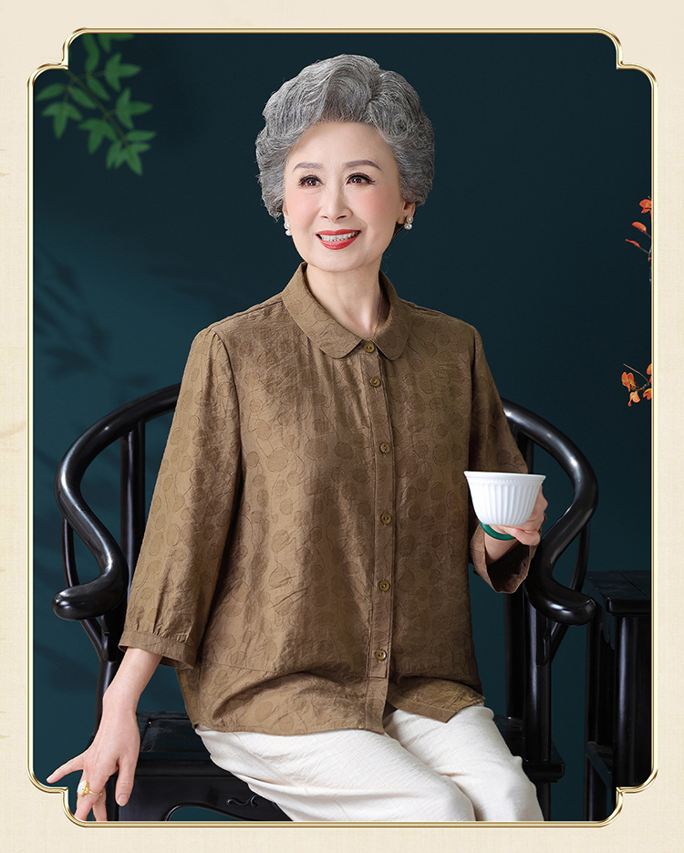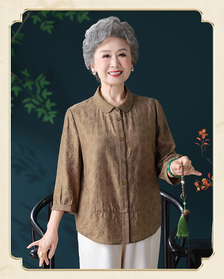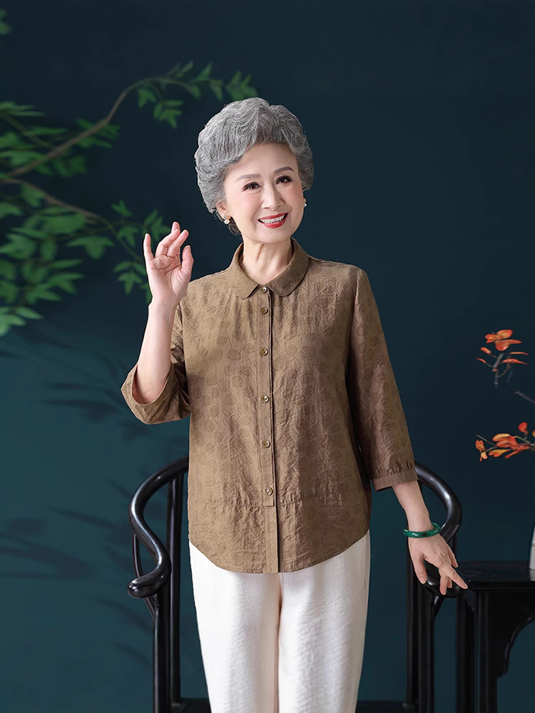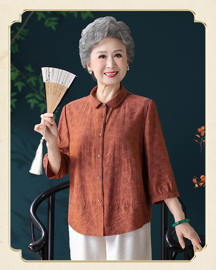 Летние рубашки для женщин среднего и пожилого возраста 2025, новая одежда для бабушек, тонкие хлопковые рубашки с отворотами для пожилых дам и женщин старшего возраста