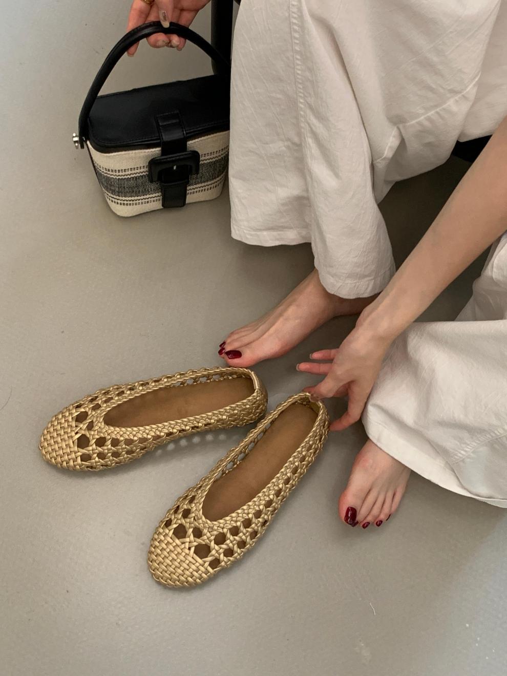 Летние дышащие мягкие туфли с открытым носком, ручной работы, с ажурной сеткой высокой четкости, в стиле «старых денег», 2025 года.