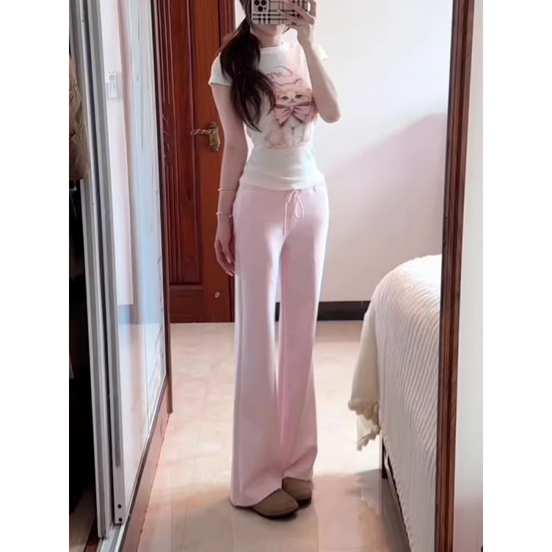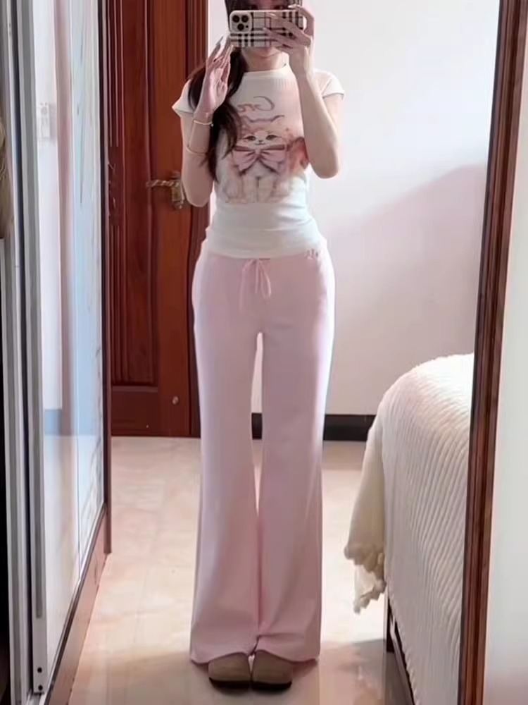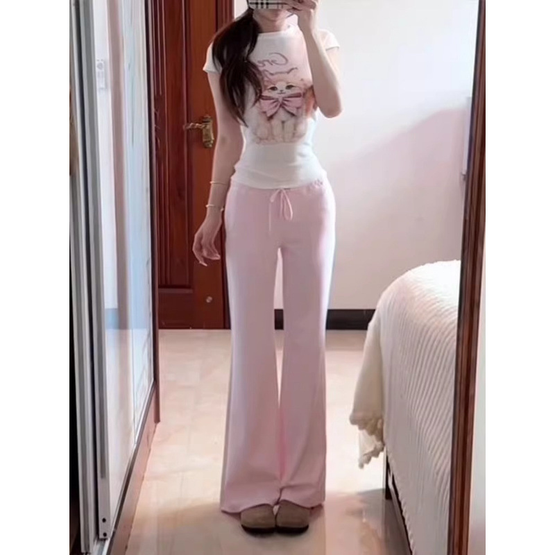 [4*4 цветная хлопковая полоска] футболка с короткими рукавами и принтом кота с бантом, новинка лета 2025, популярный стиль для девочек, облегающий крой