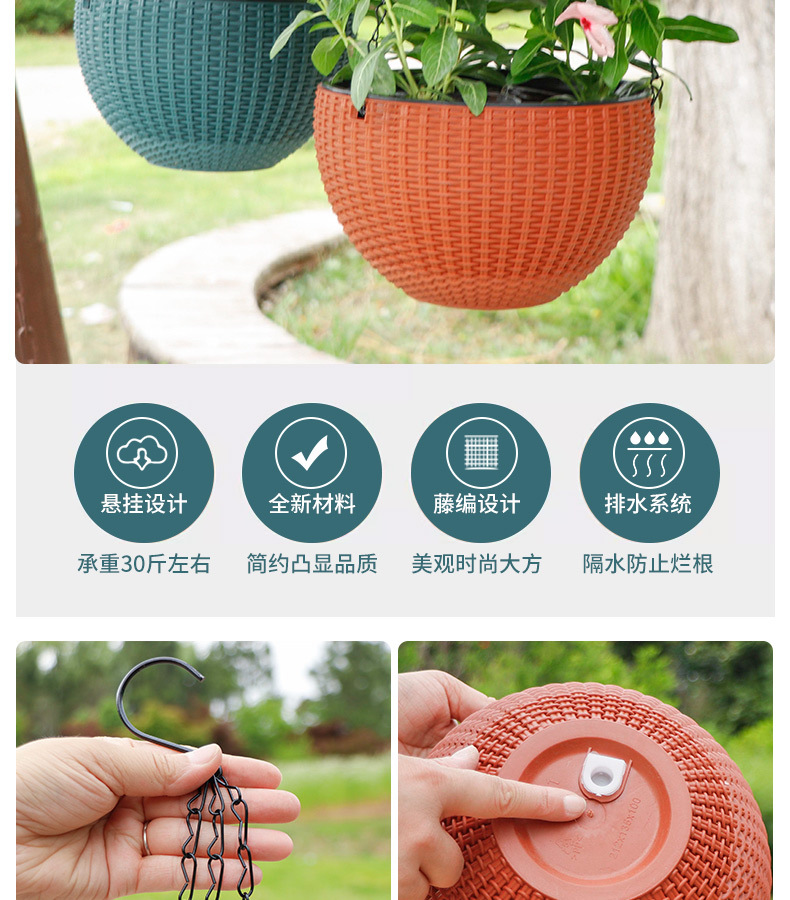 Подвесной цветочный горшок для орхидеи, подвесная пластиковая корзина из ротанга, ленивый водопоглощающий настенный подвесной шар для плюща, утолщенный.