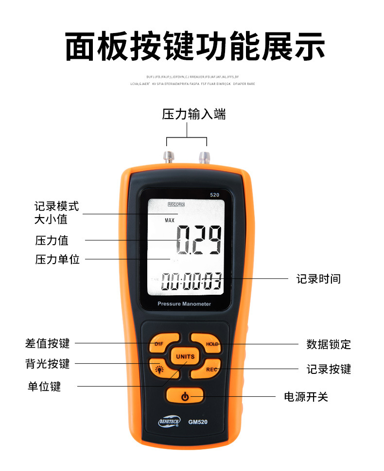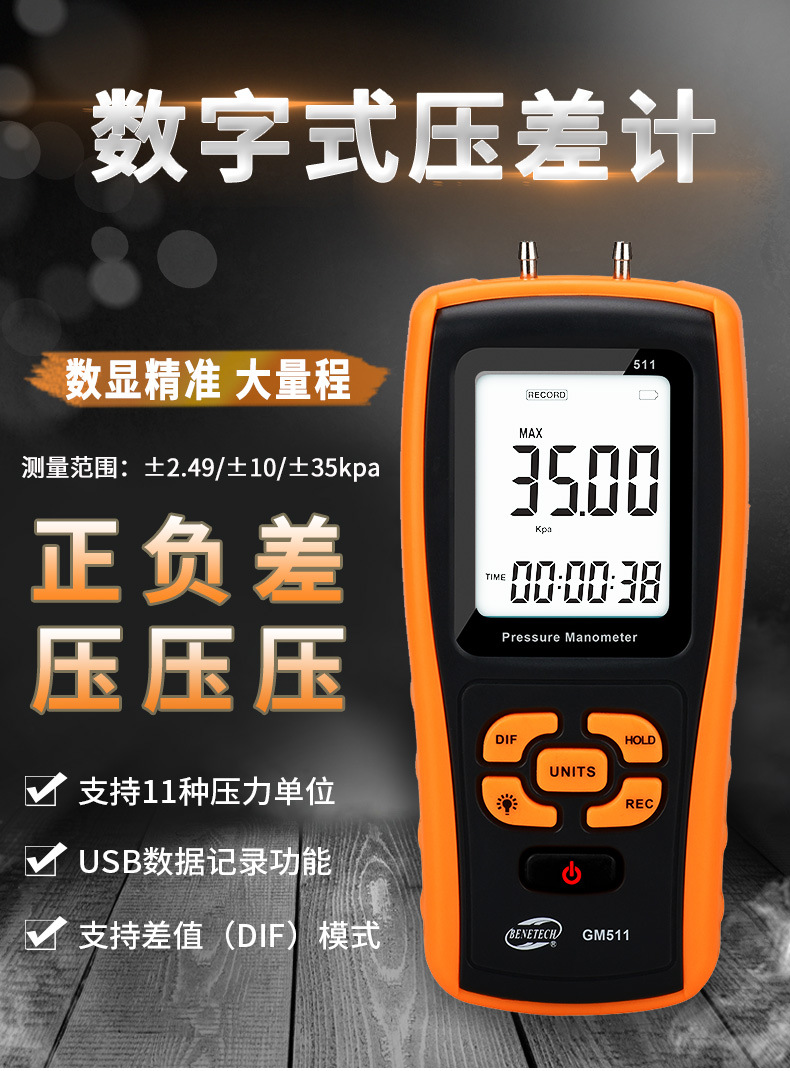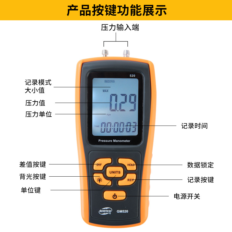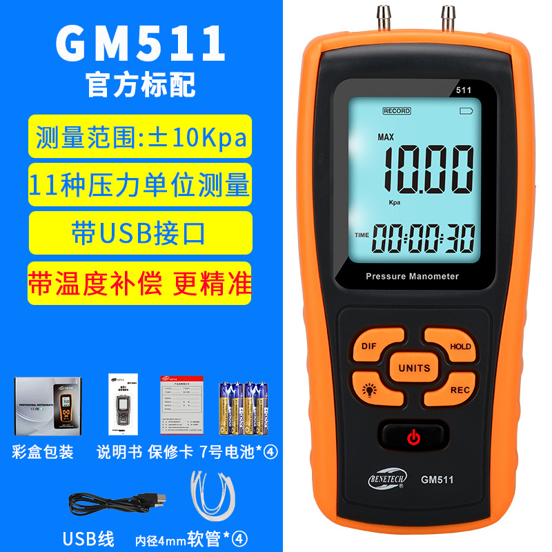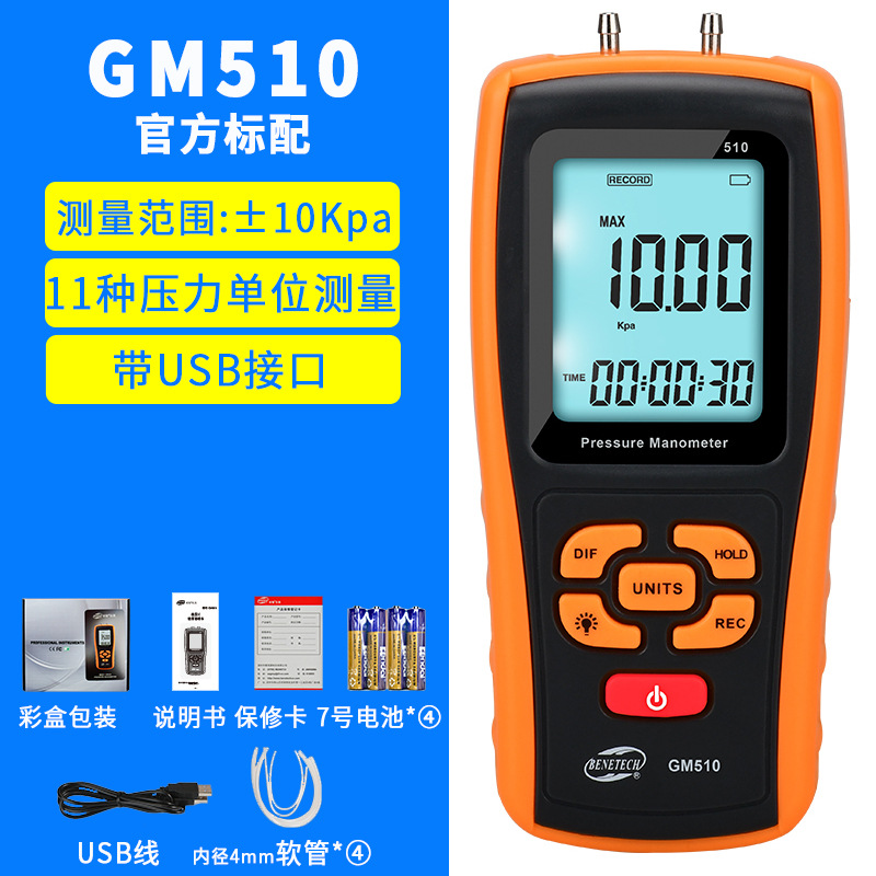 Biaozhi GM510 измеритель дифференциального микротягового давления, измеритель давления воздуха, отрицательное давление, измеритель давления газа, тестер давления ветра, дифференциальное давление природного газа