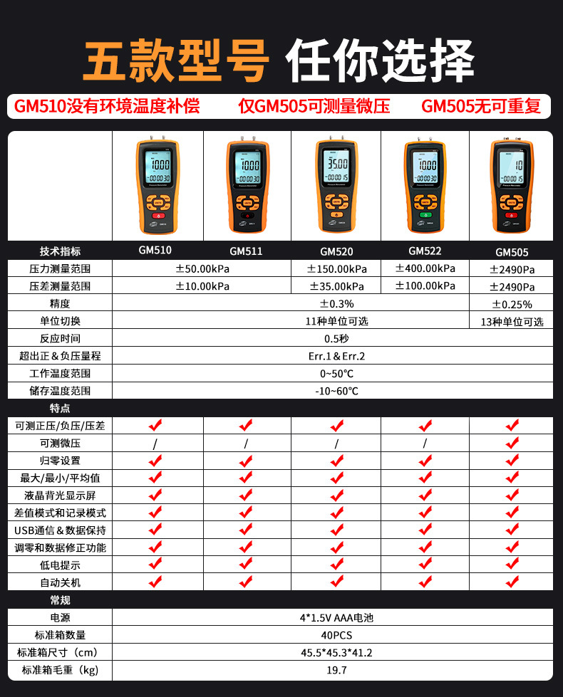 GM510(±10KPA); GM511 (±10КПа, с компенсацией); GM520(±35KPA); GM522 (±100 кПа); GM505(±2.49KPA); GM521 (0-35 кПа); GM523(0-10Kpa)