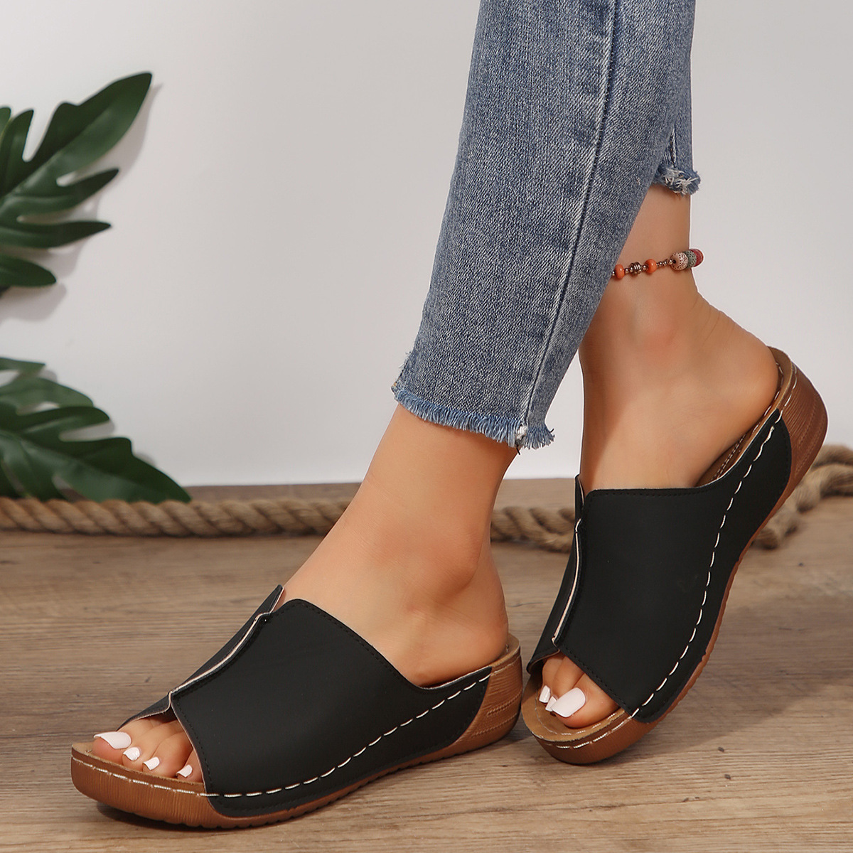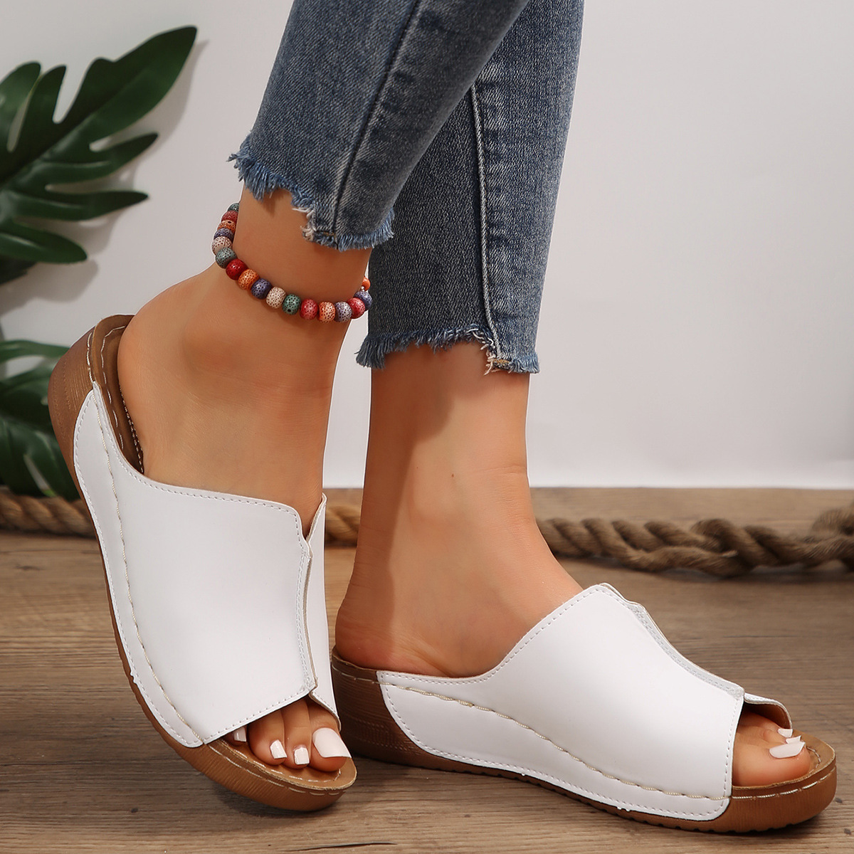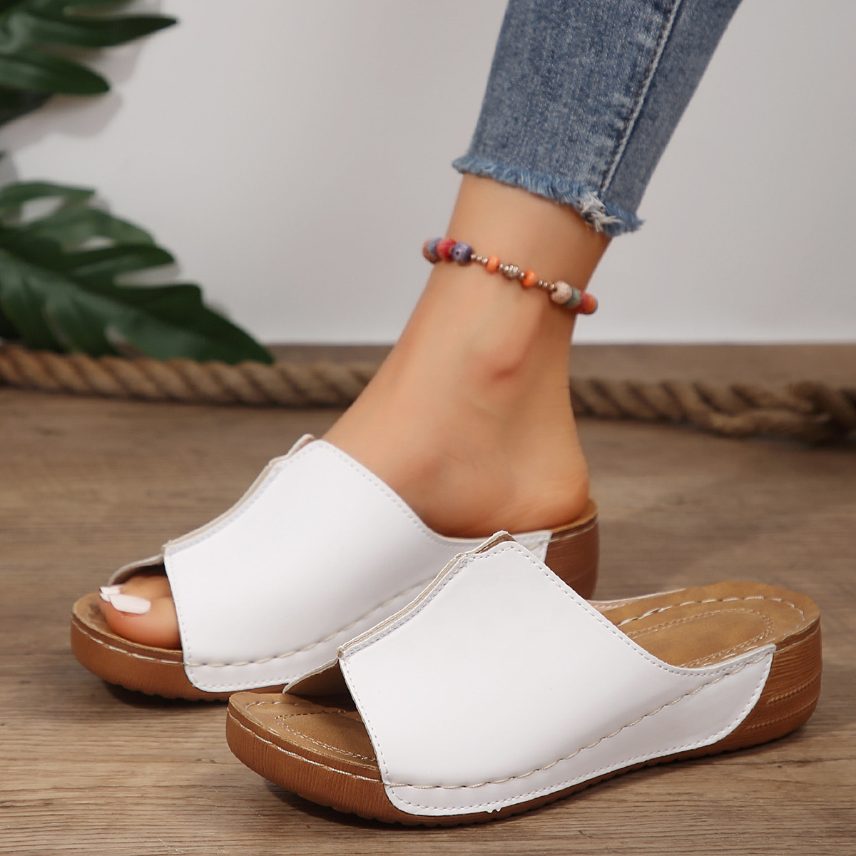 Новые летние тапочки на танкетке на толстой подошве. Европейская и американская мода, внешняя торговля, готовые пляжные сандалии большого размера, сандалии с рыбьим ртом.