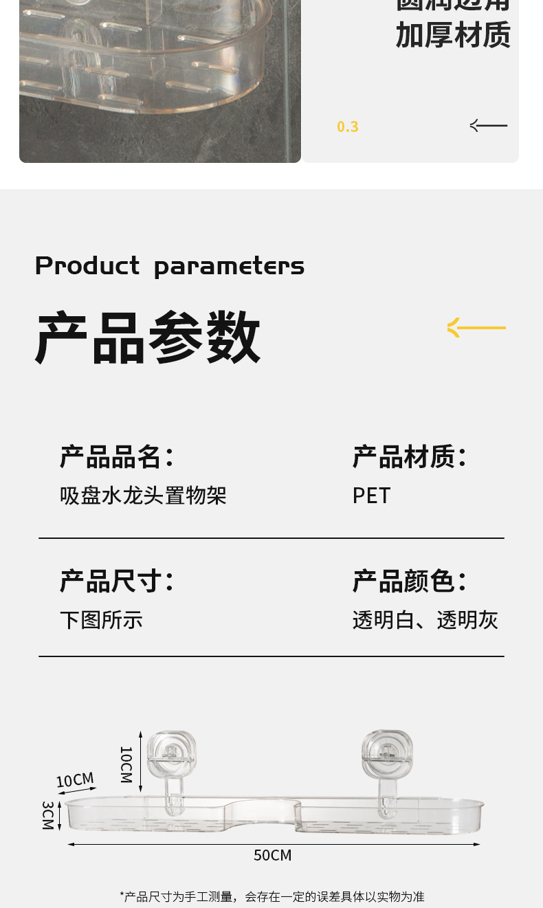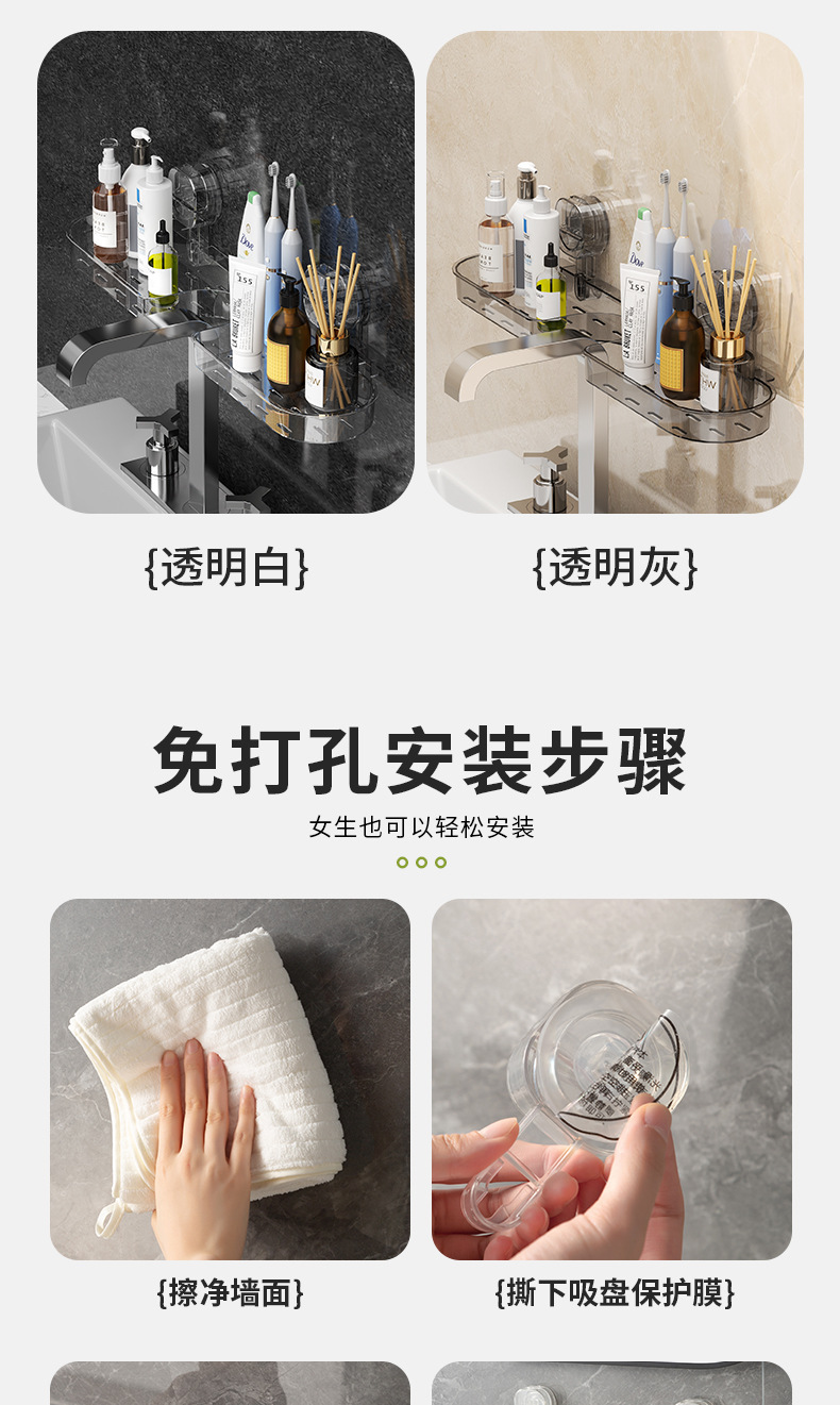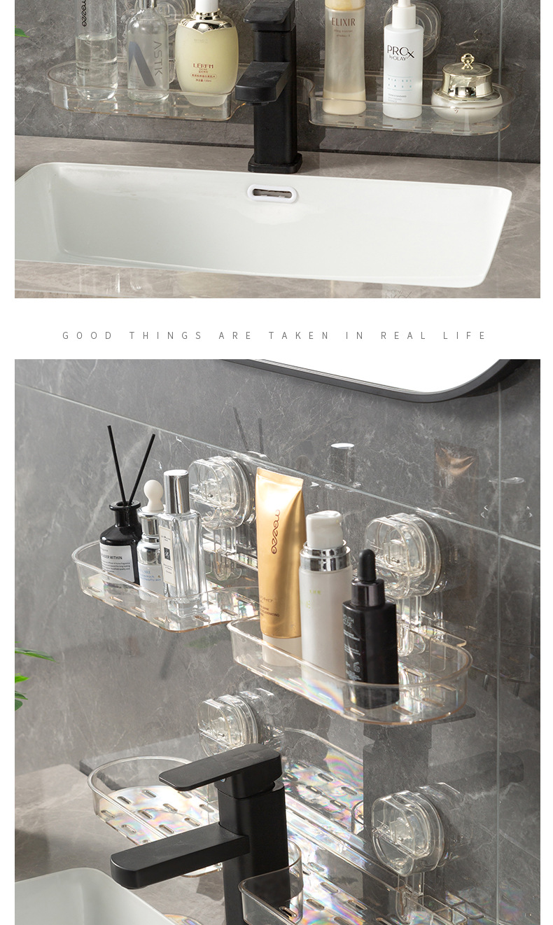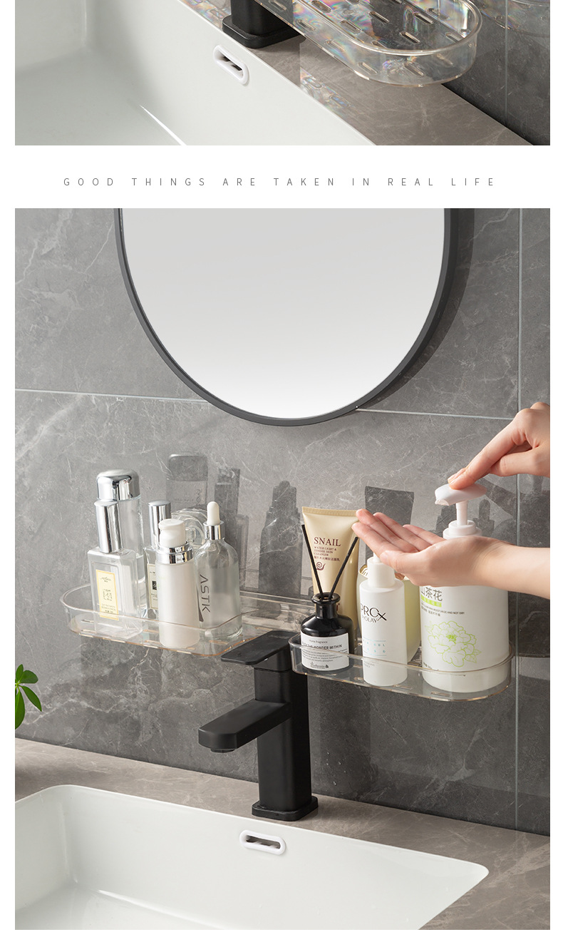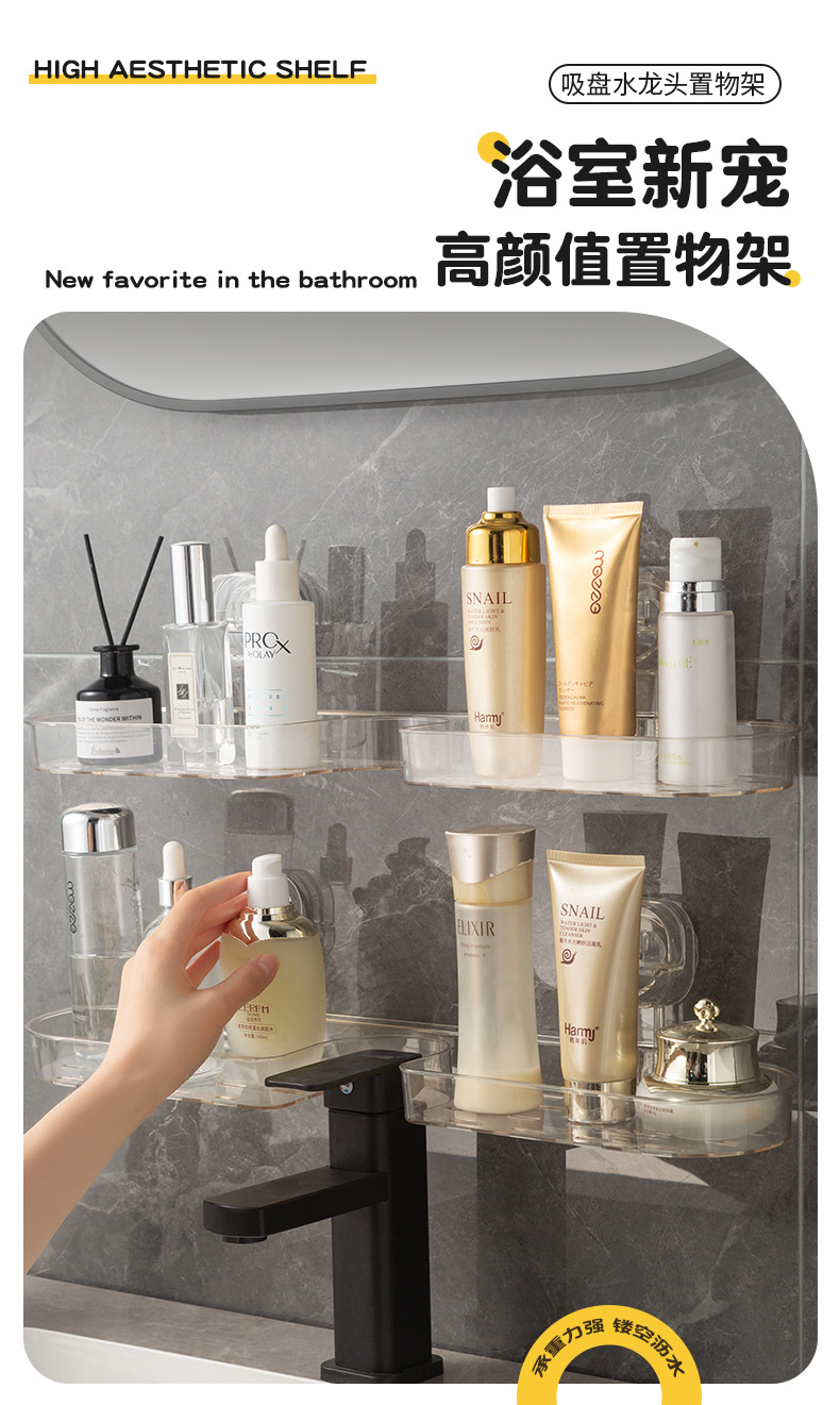 Прозрачная полка для хранения смесителей на присоске; Прозрачная серая полка для хранения смесителей на присоске