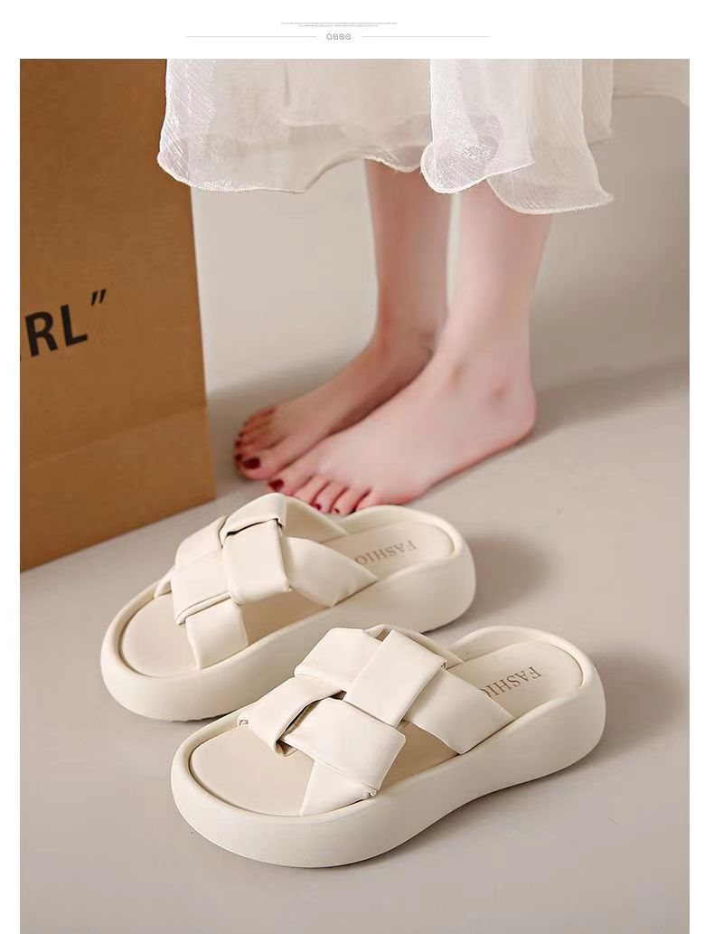Чувственные тапочки для женской летней верхней одежды, новинка 2024 года, повседневные нескользящие французские пляжные сандалии для беременных на толстой подошве, тапочки