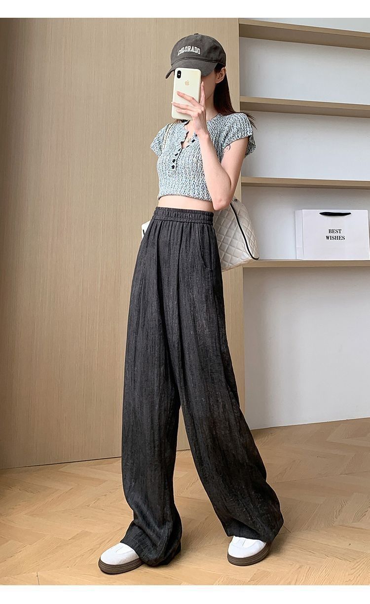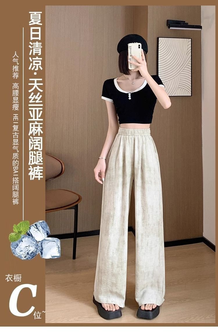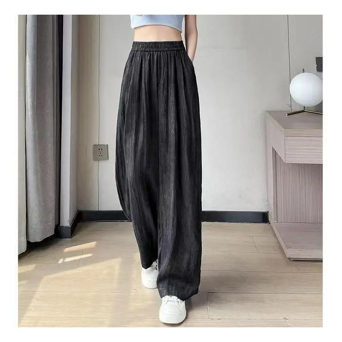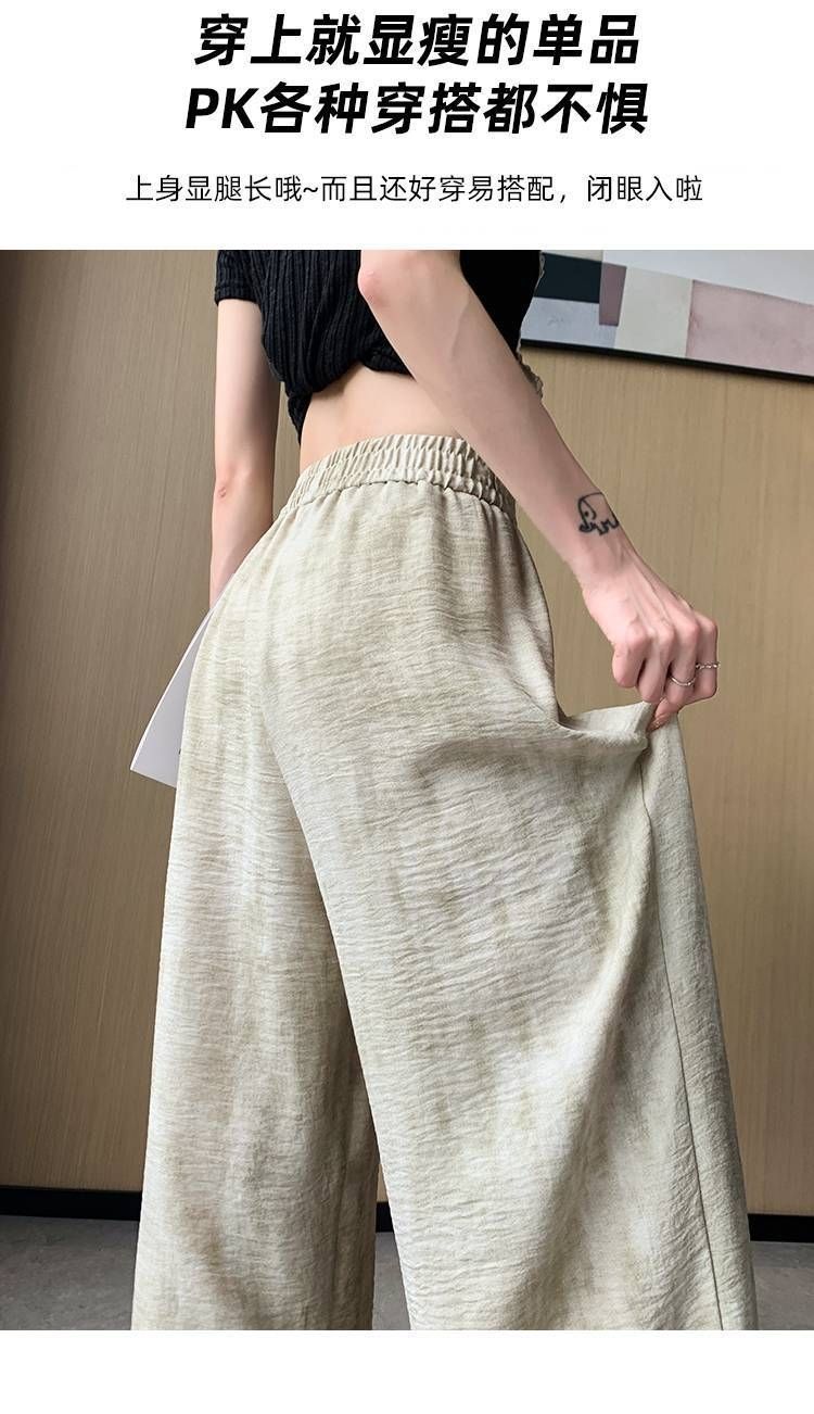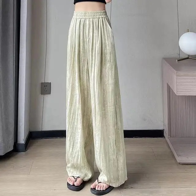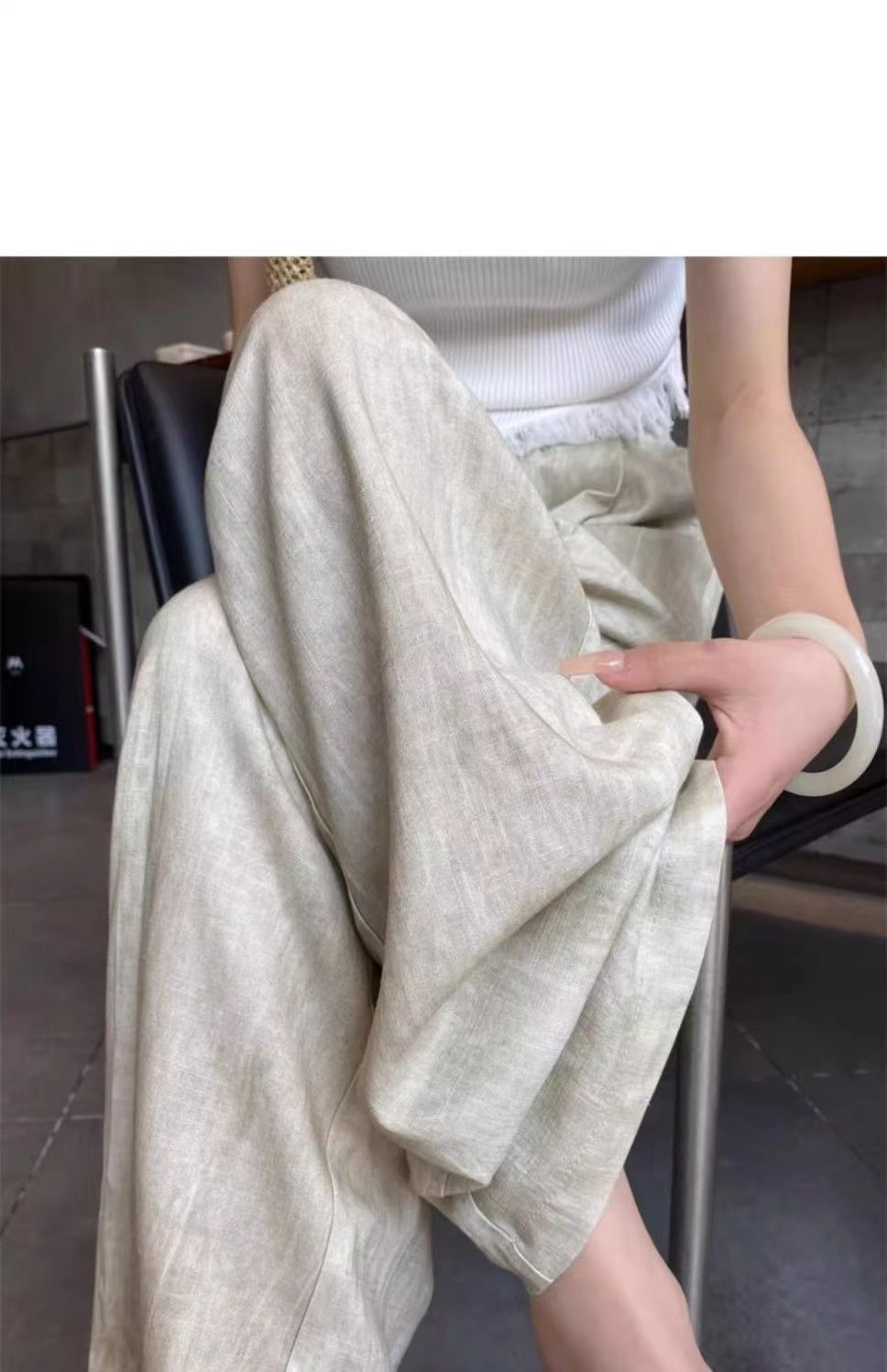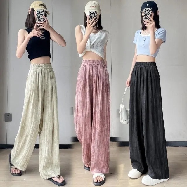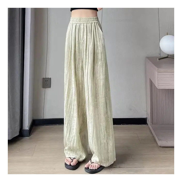 Классные широкие брюки для женщин летом с принтом тай-дай Yamamoto Tencel, льняные драпированные повседневные универсальные драпированные брюки с высокой талией длиной до пола