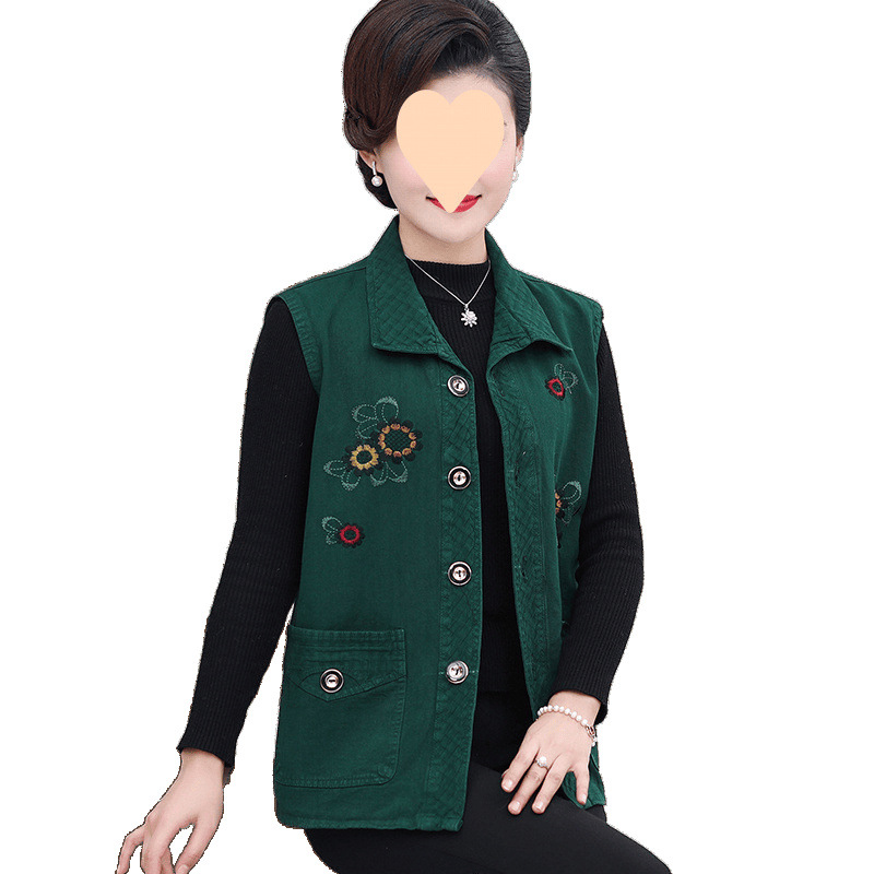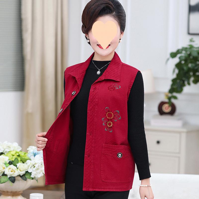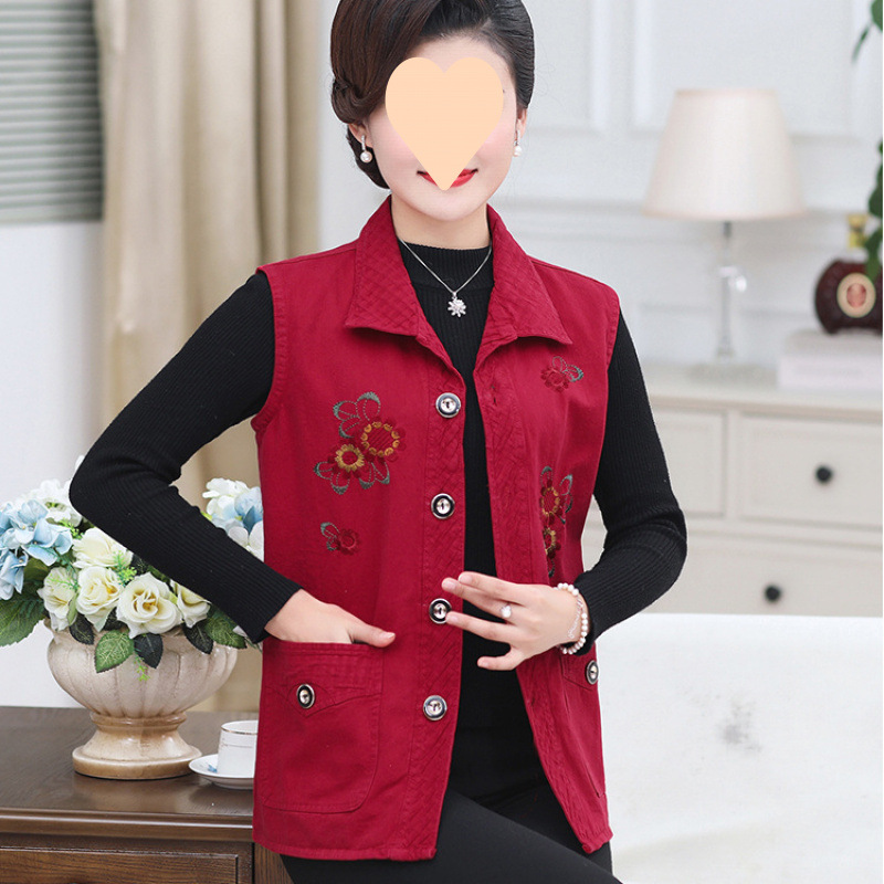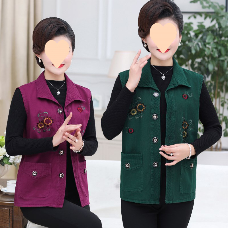 Новый стильный жилет для мамы на весну и осень, дизайн с лацканами, размеры 40-50-60, верхняя одежда для женщин среднего и пожилого возраста, хлопковый жилет, универсальный.