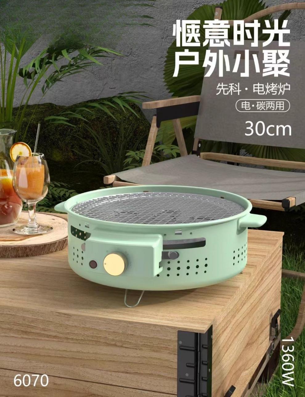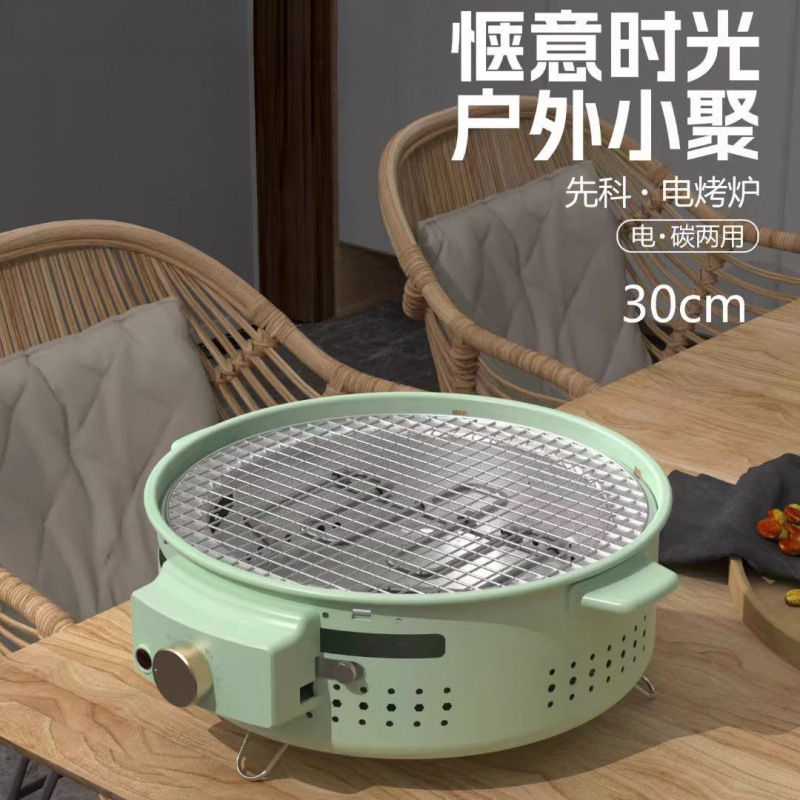 Новый электрический и угольный гриль двойного назначения для барбекю, угольная печь, гриль для барбекю, чайник, электрический гриль, круглый уличный киоск.
