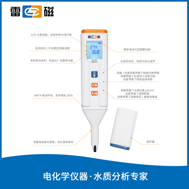 Шанхайская ручка для измерения pH Leici, высокоточная портативная ручка для измерения pH PH-30Z